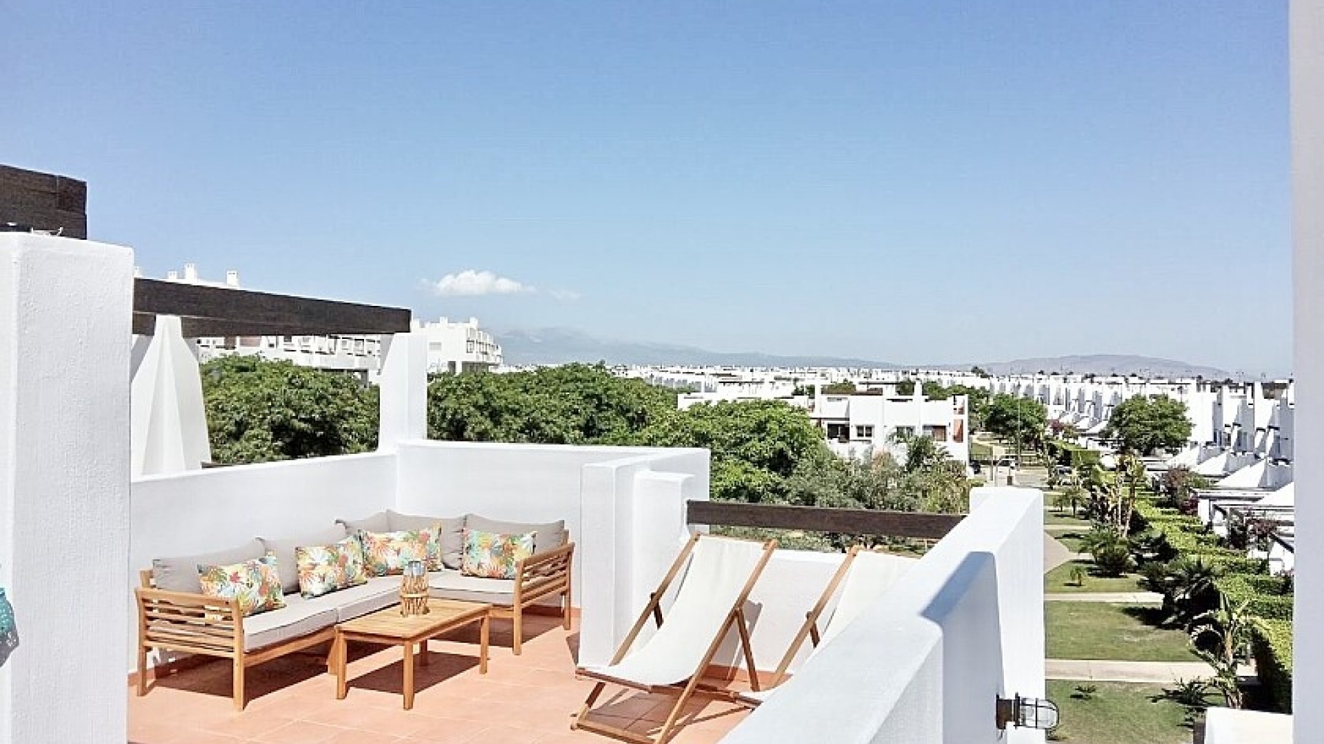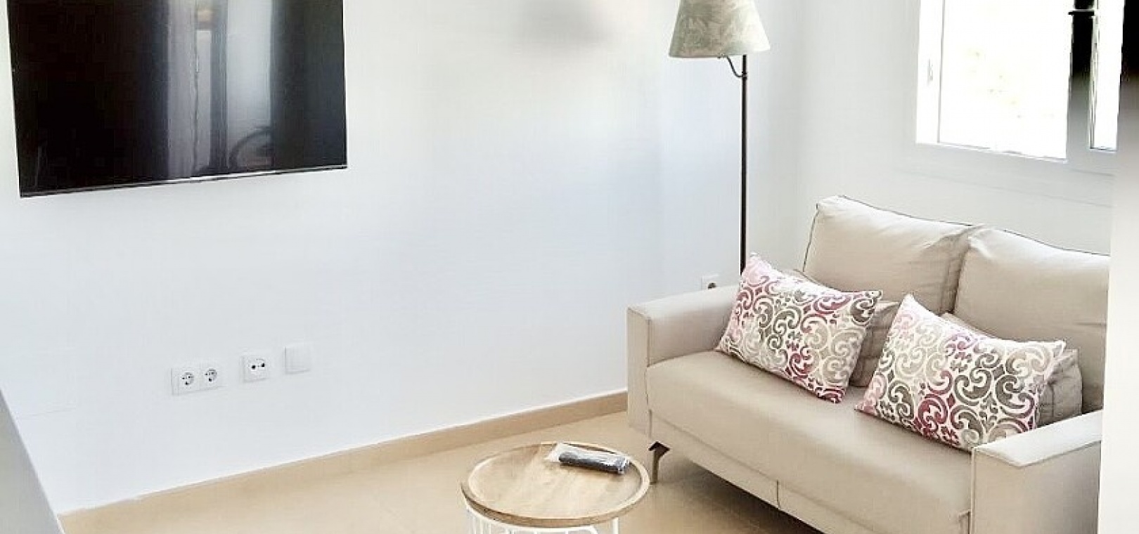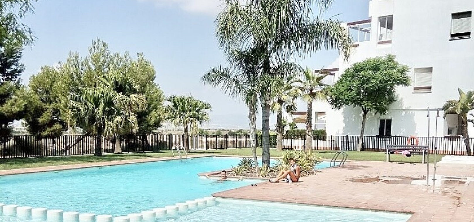 De plus, cet appartement dispose d'une grande piscine communautaire et dans le complexe de golf il y a des bars, des restaurants, un supermarché, des courts de paddle-tennis, du tennis, du football et une salle de sport.