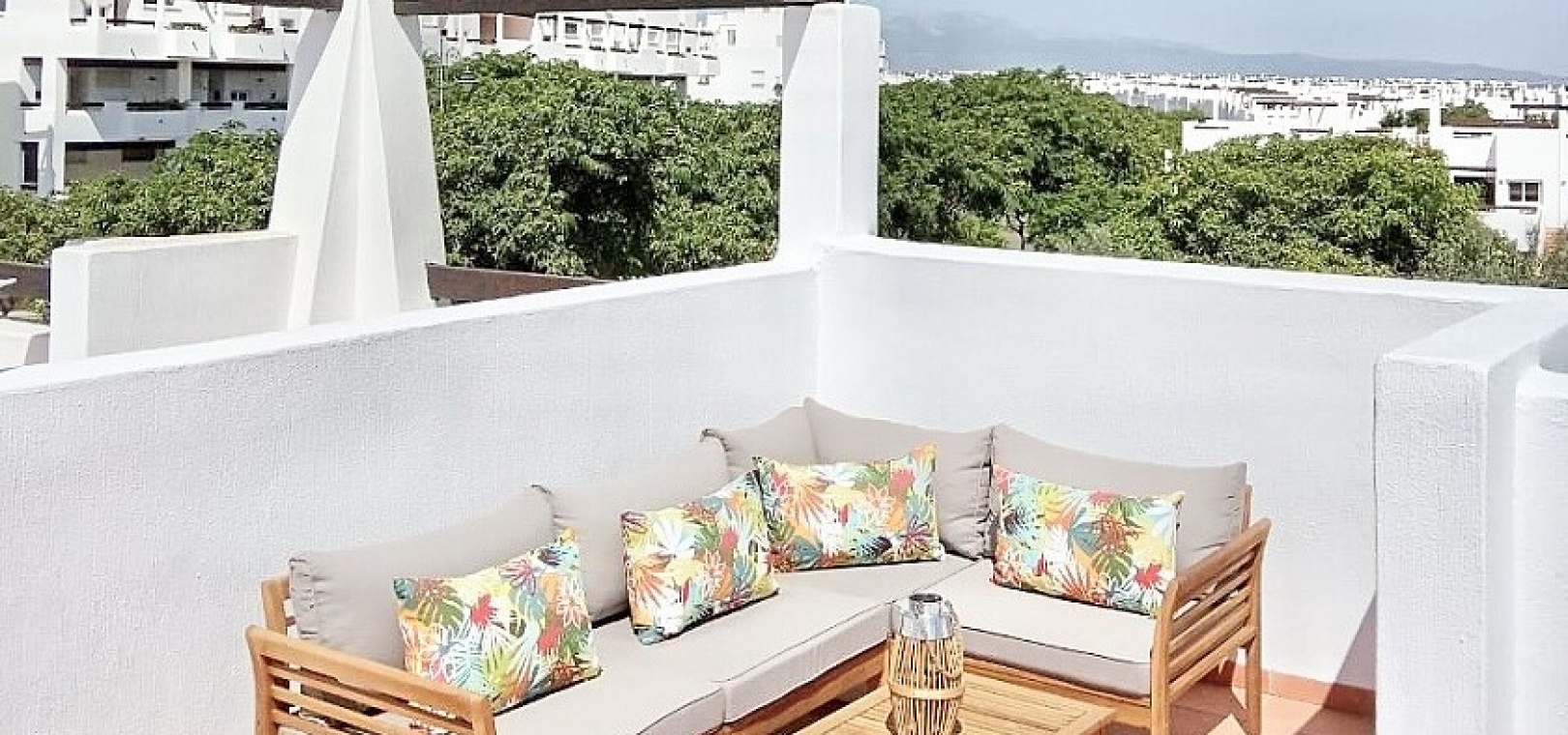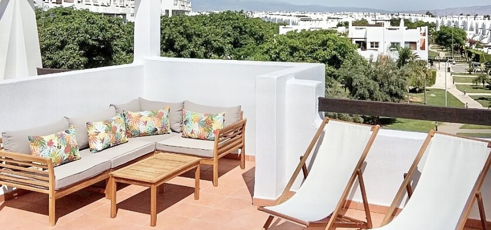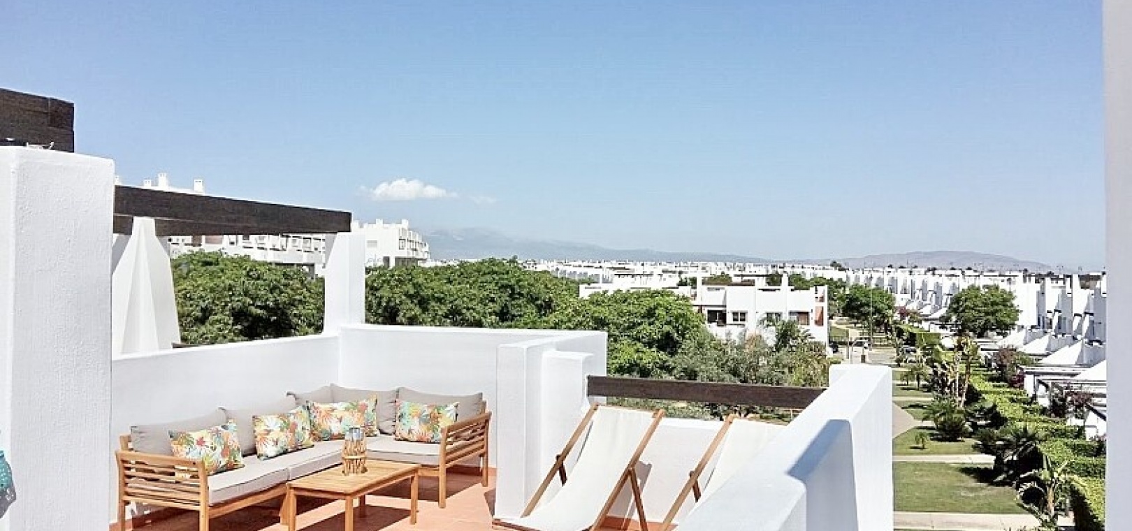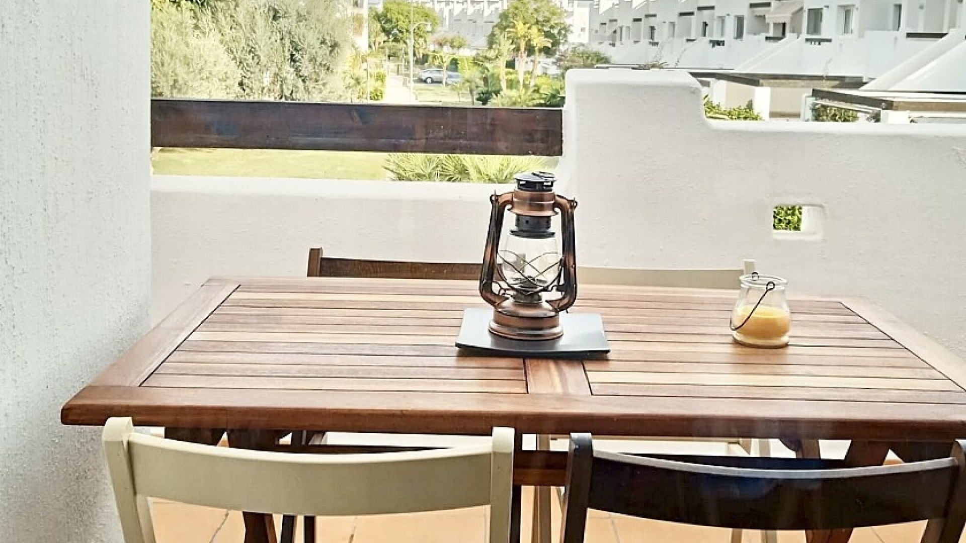 De plus, cet appartement dispose d'une grande piscine communautaire et dans le complexe de golf il y a des bars, des restaurants, un supermarché, des courts de paddle-tennis, du tennis, du football et une salle de sport.