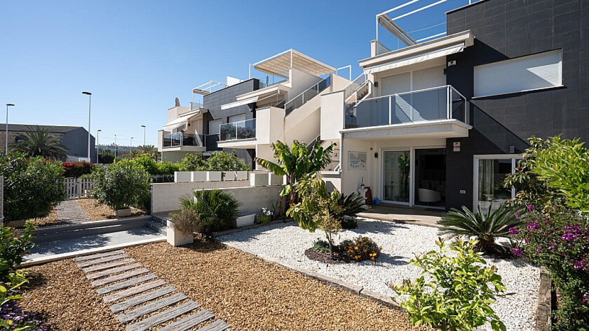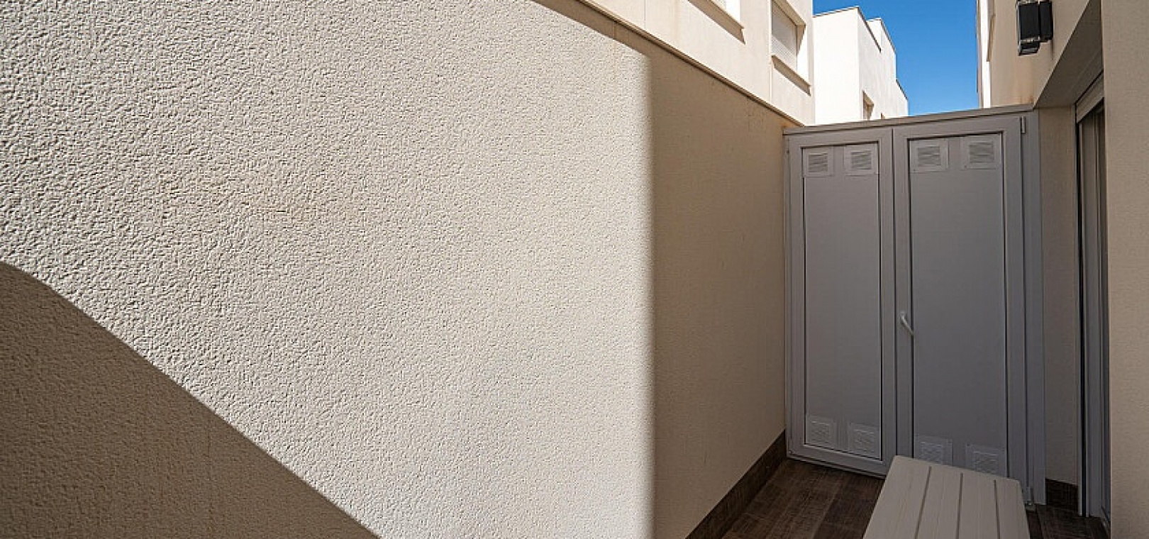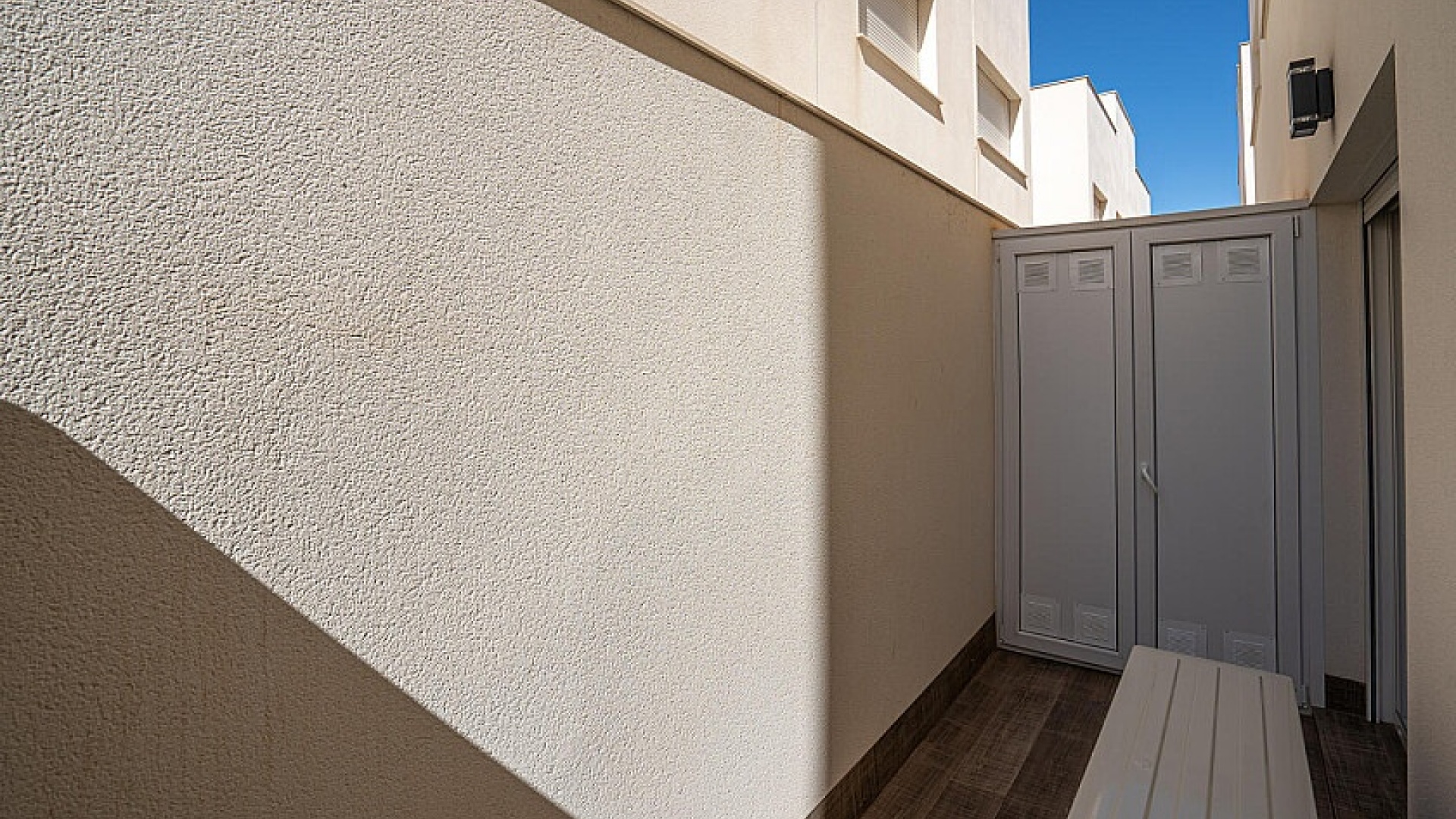 L'appartement a été achevé en 2018 et est donc presque neuf dans un design moderne avec un choix de matériaux de bon goût. L'appartement dispose de son propre espace de stationnement avec débarras, la communauté dispose d'une piscine commune où vous pourrez vous rafraîchir.