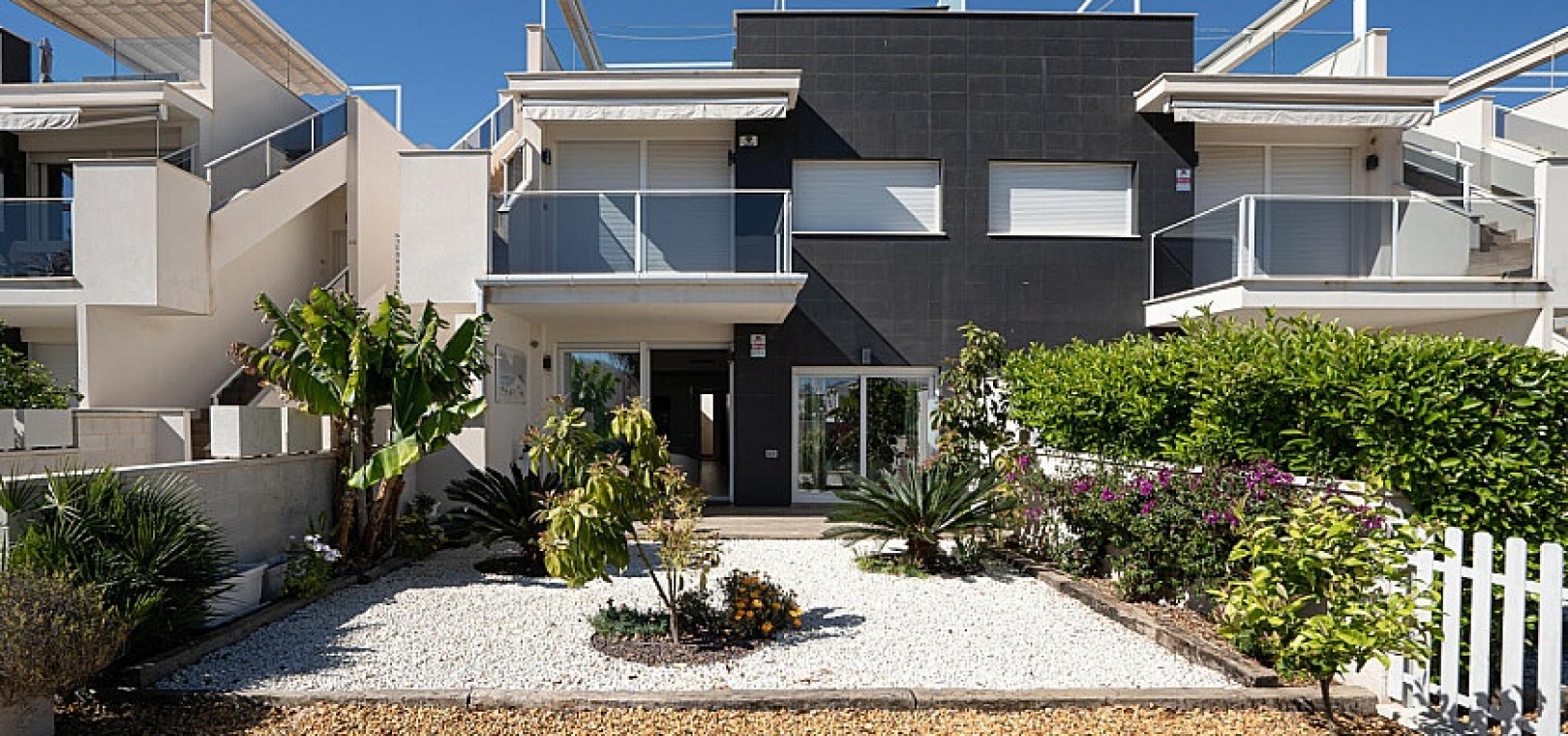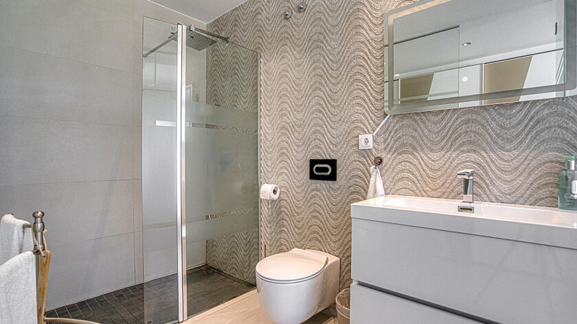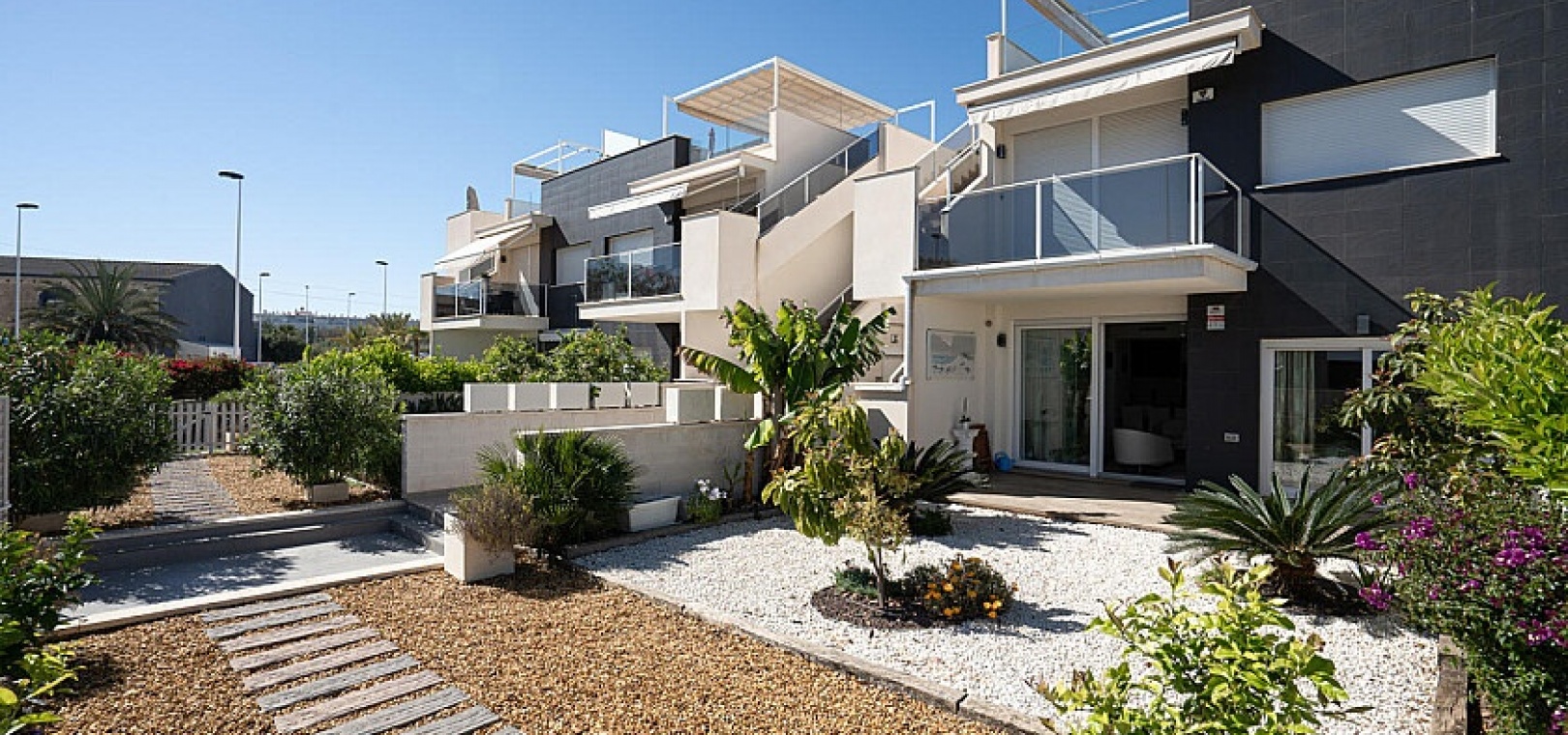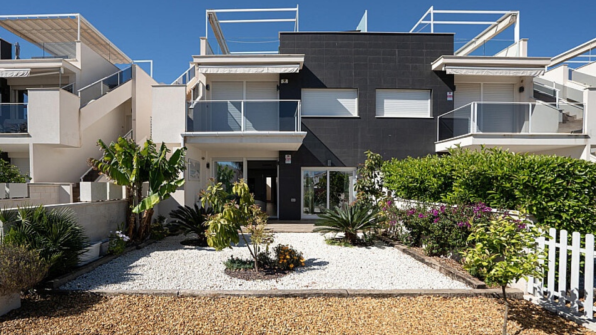 L'appartement a été achevé en 2018 et est donc presque neuf dans un design moderne avec un choix de matériaux de bon goût. L'appartement dispose de son propre espace de stationnement avec débarras, la communauté dispose d'une piscine commune où vous pourrez vous rafraîchir.