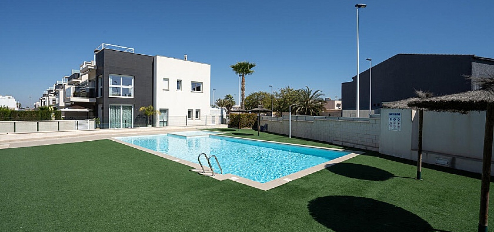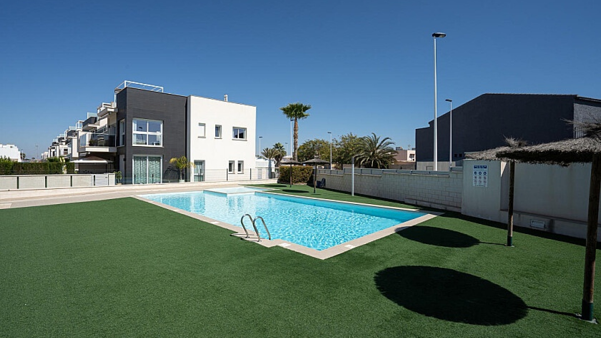 A quelques minutes à pied, vous arriverez au centre commercial Habaneras, qui est le plus grand centre commercial de Torrevieja avec environ 60 magasins et restaurants, ainsi qu'au centre commercial Ozone et à l'hypermarché Carrefour, mais juste à côté de la communauté se trouve un centre commercial. commerces avec restaurants et épicerie. Ici, vous trouverez la proximité de tous les services nécessaires à votre séjour en Espagne. Torrevieja propose un large éventail de divertissements tels que le golf, le parc aquatique, le bowling, le shopping ou pourquoi ne pas simplement vous allonger et bronzer sur l'une des plages voisines.