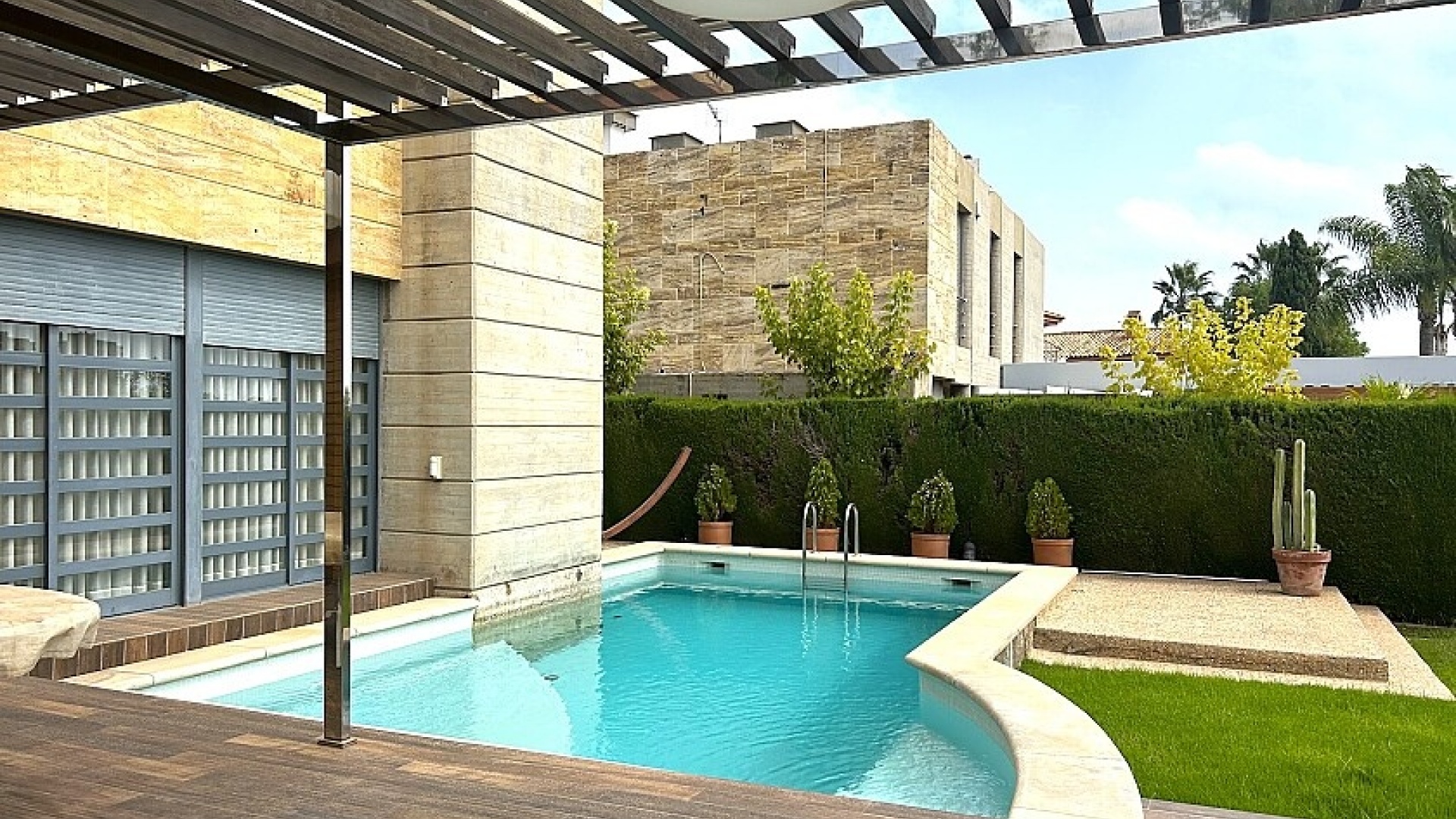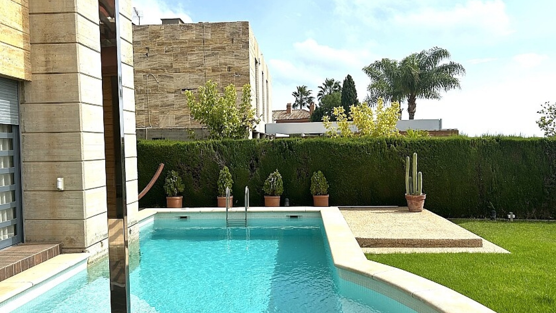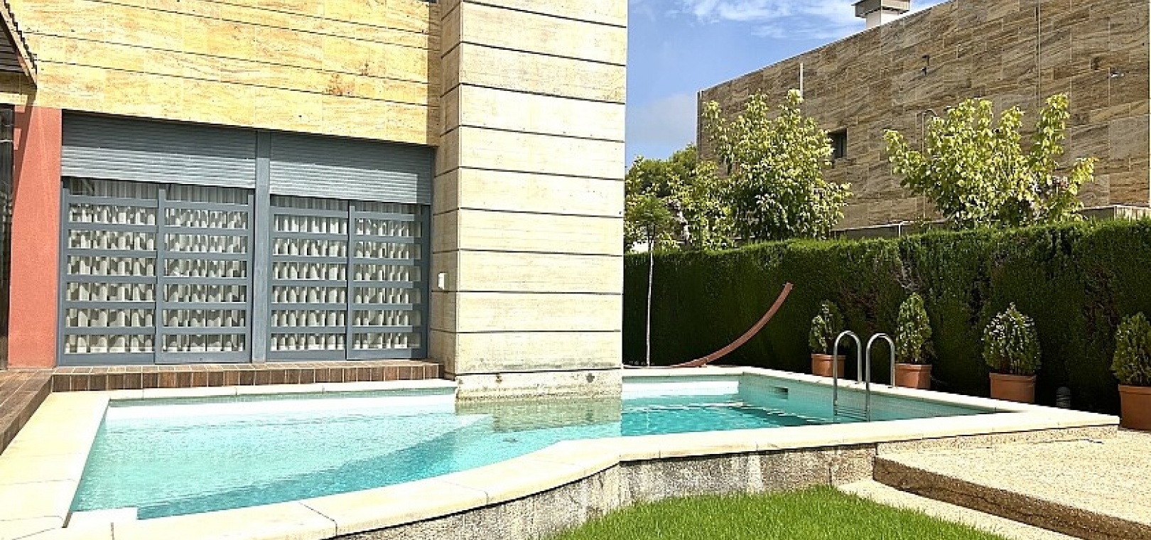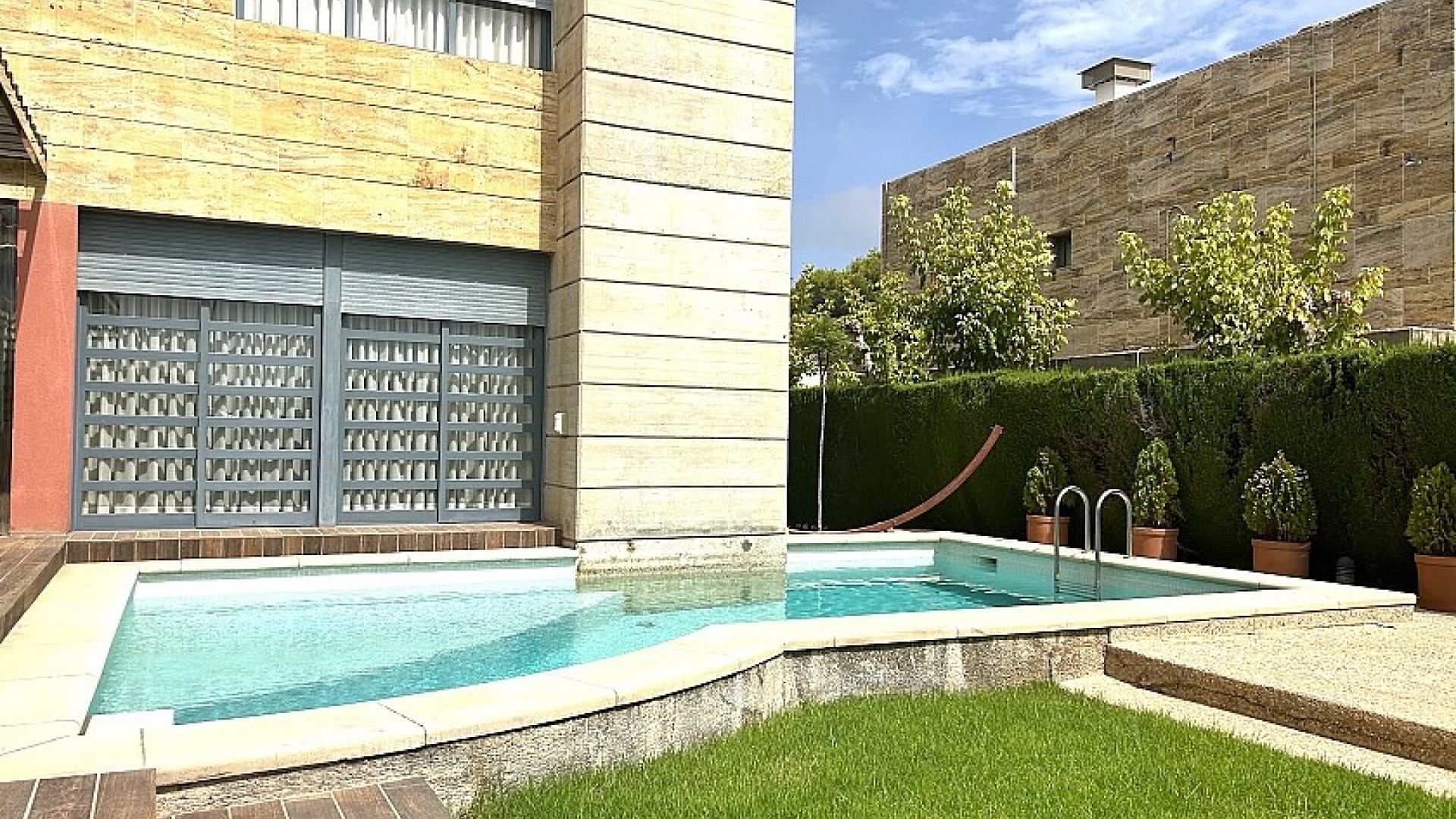 Le terrain de 900 m2 dispose d'une piscine, d'un jardin bien entretenu et d'une terrasse d'été avec coin barbecue.