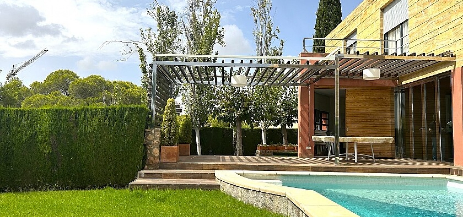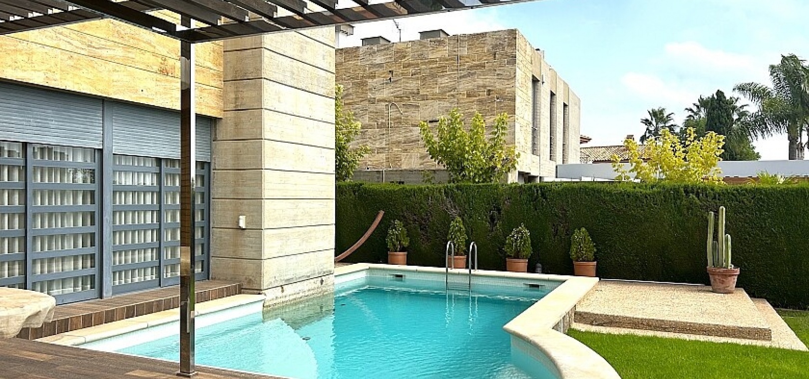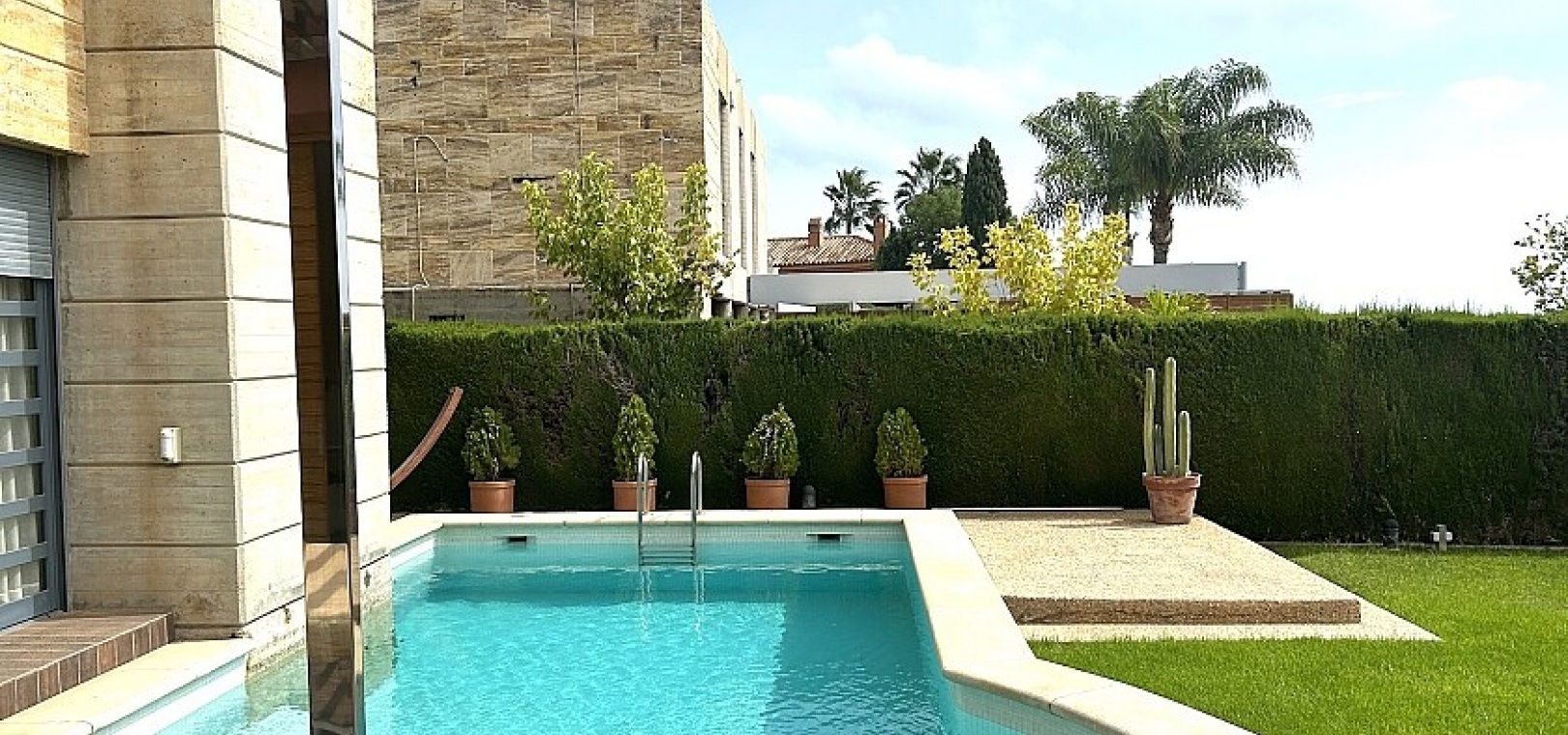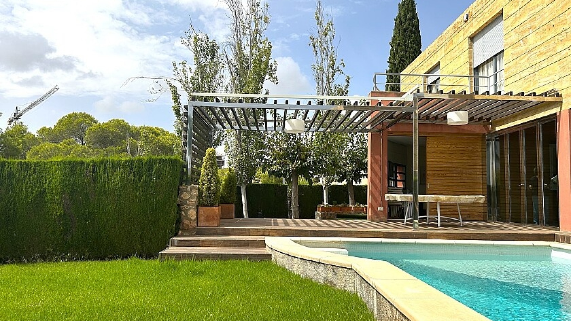 Le terrain de 900 m2 dispose d'une piscine, d'un jardin bien entretenu et d'une terrasse d'été avec coin barbecue.