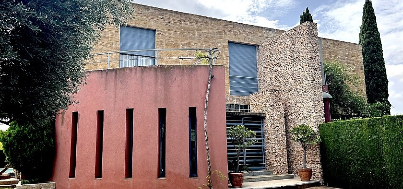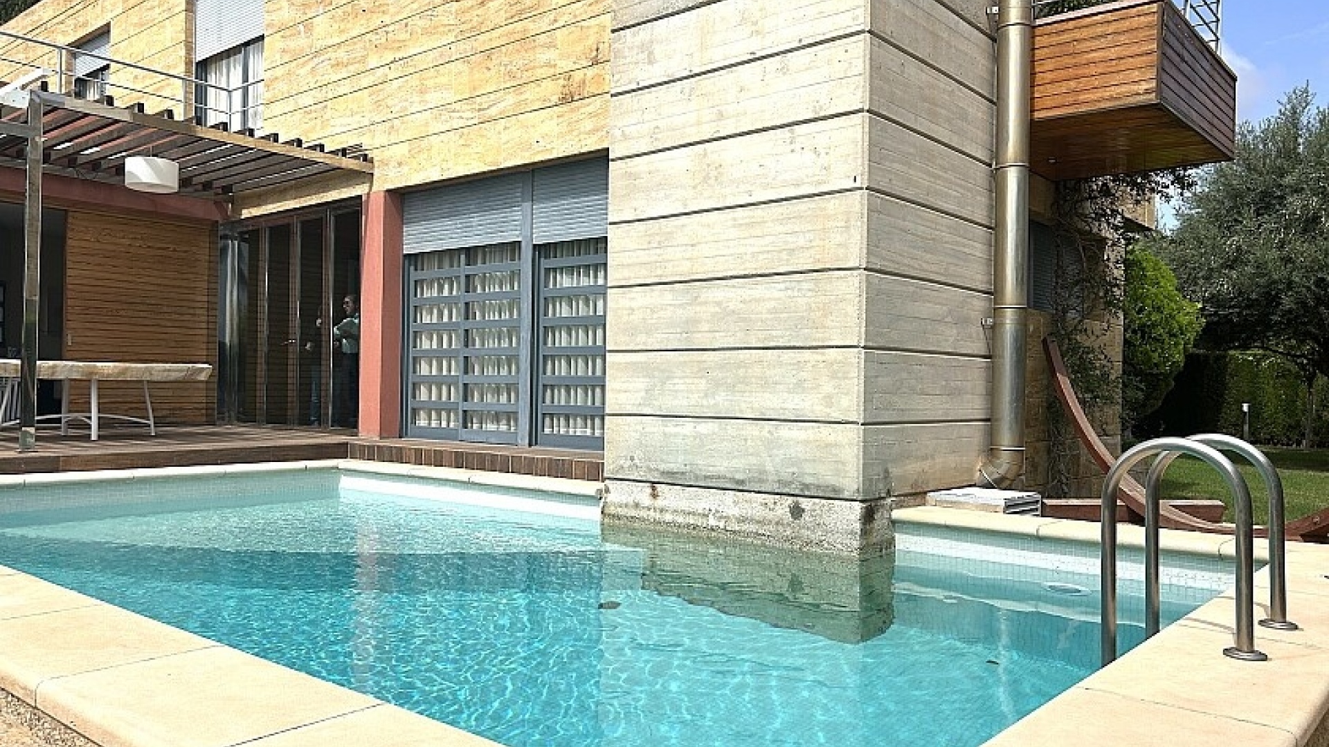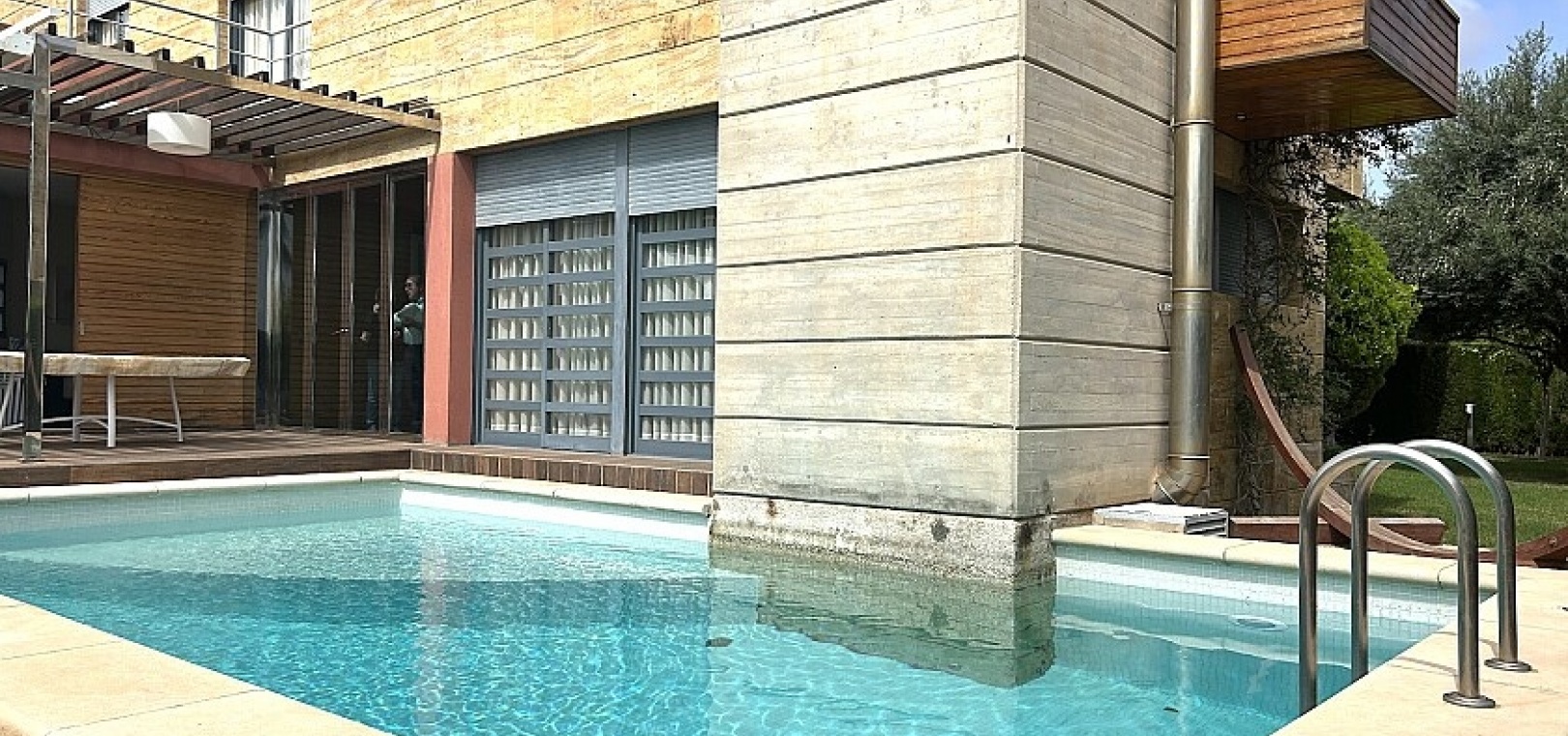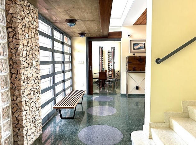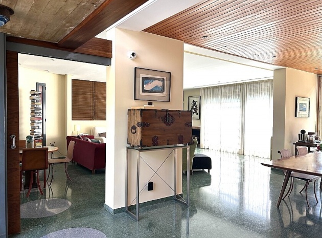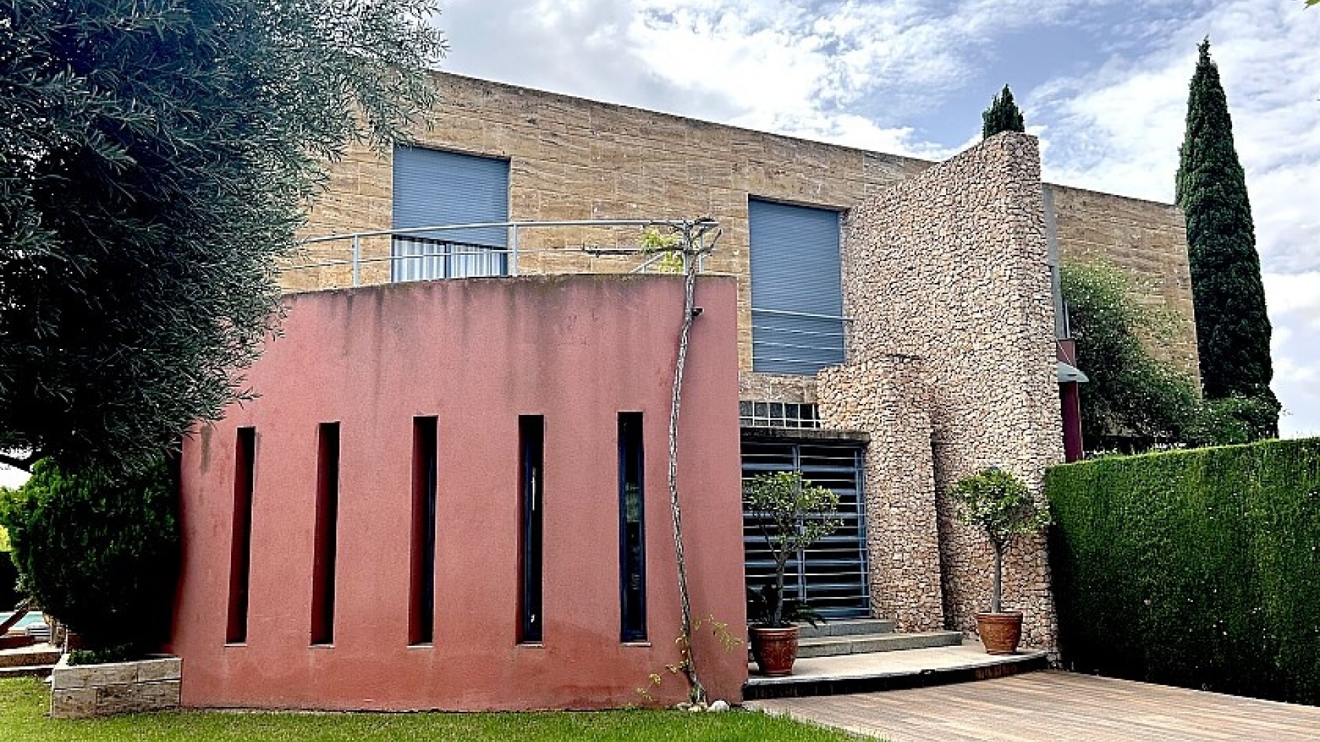 La maison a 413 m2 répartis sur trois étages. Au rez-de-chaussée, de 176 m2, il y a un grand séjour avec cheminée, cuisine séparée, salle à manger, débarras avec galerie et toilettes. Au premier étage, de 140 m2, se trouvent quatre grandes chambres avec leurs salles de bains et terrasses. Au sous-sol, d'une superficie de 96 m2, il y a un garage, un débarras et des locaux techniques.