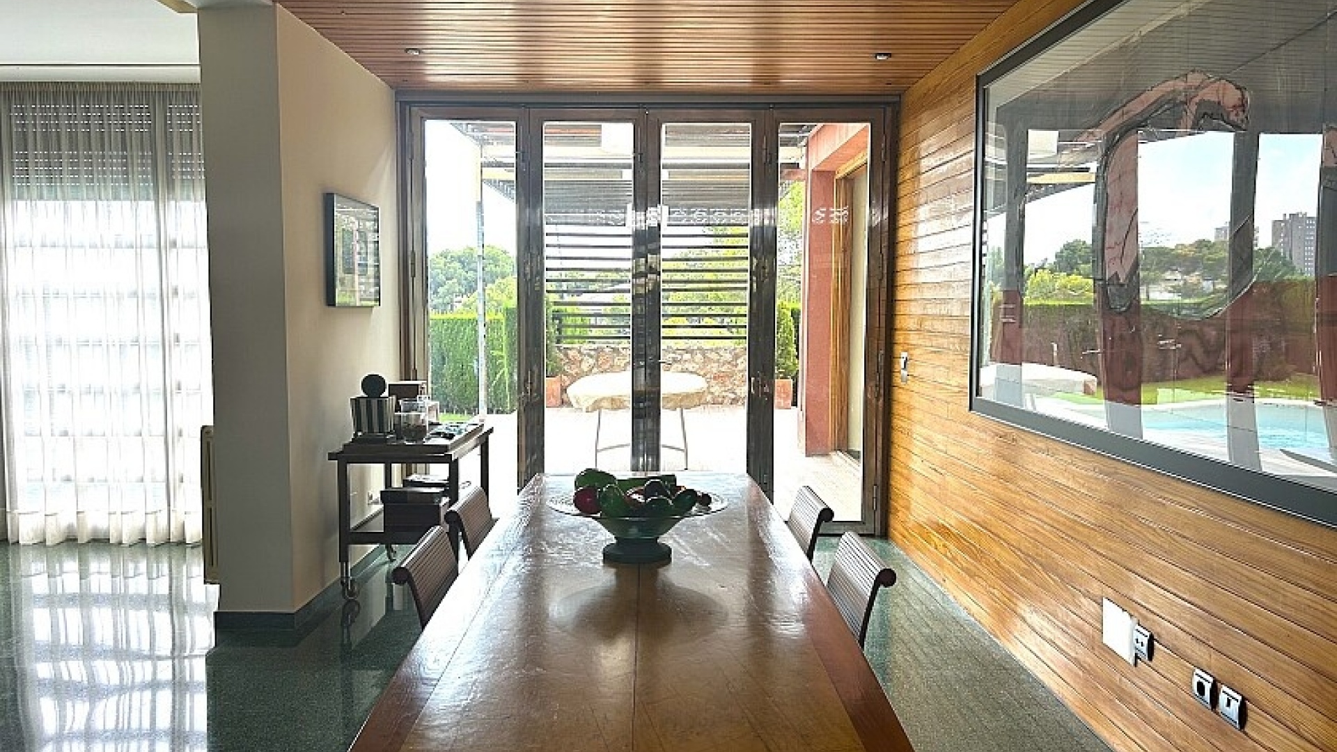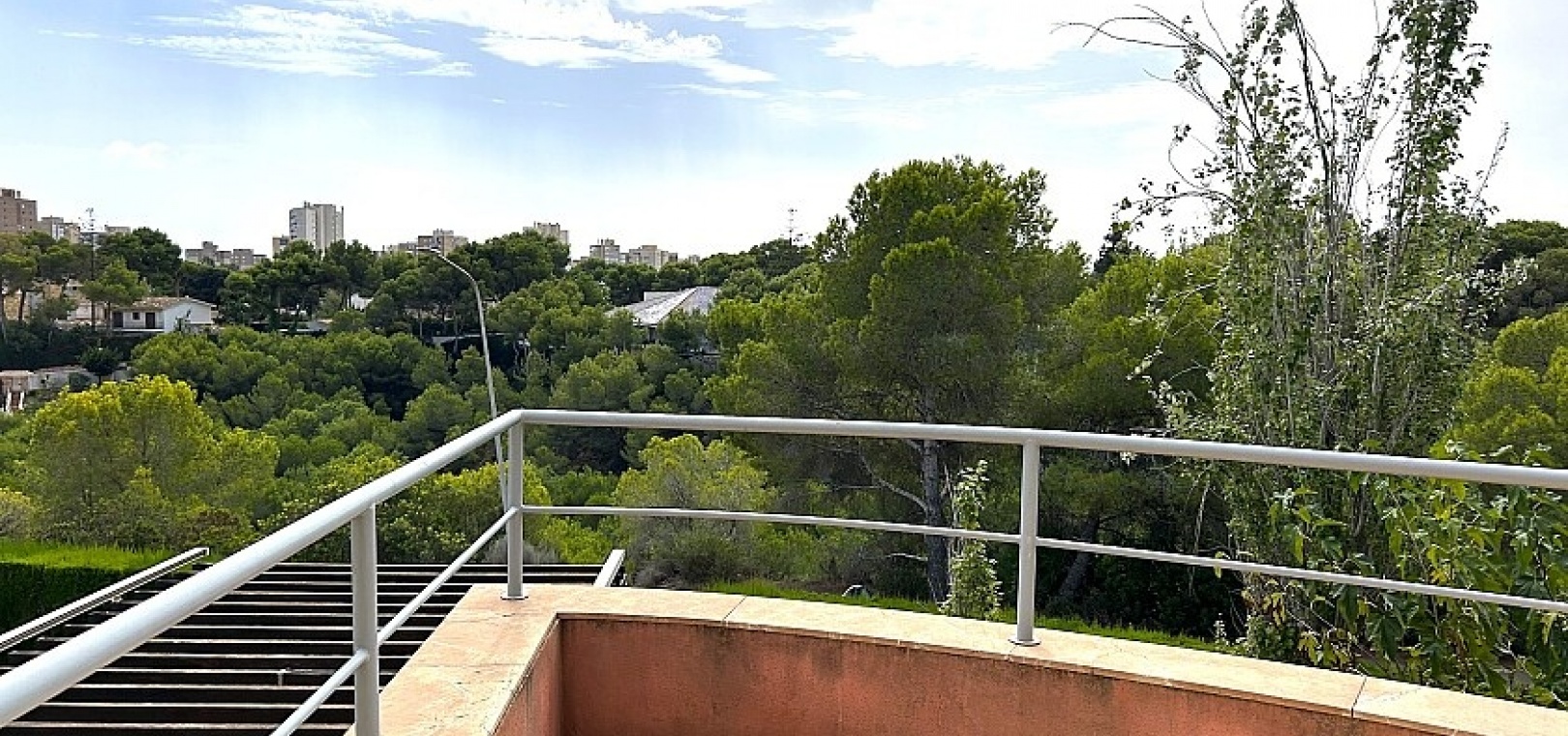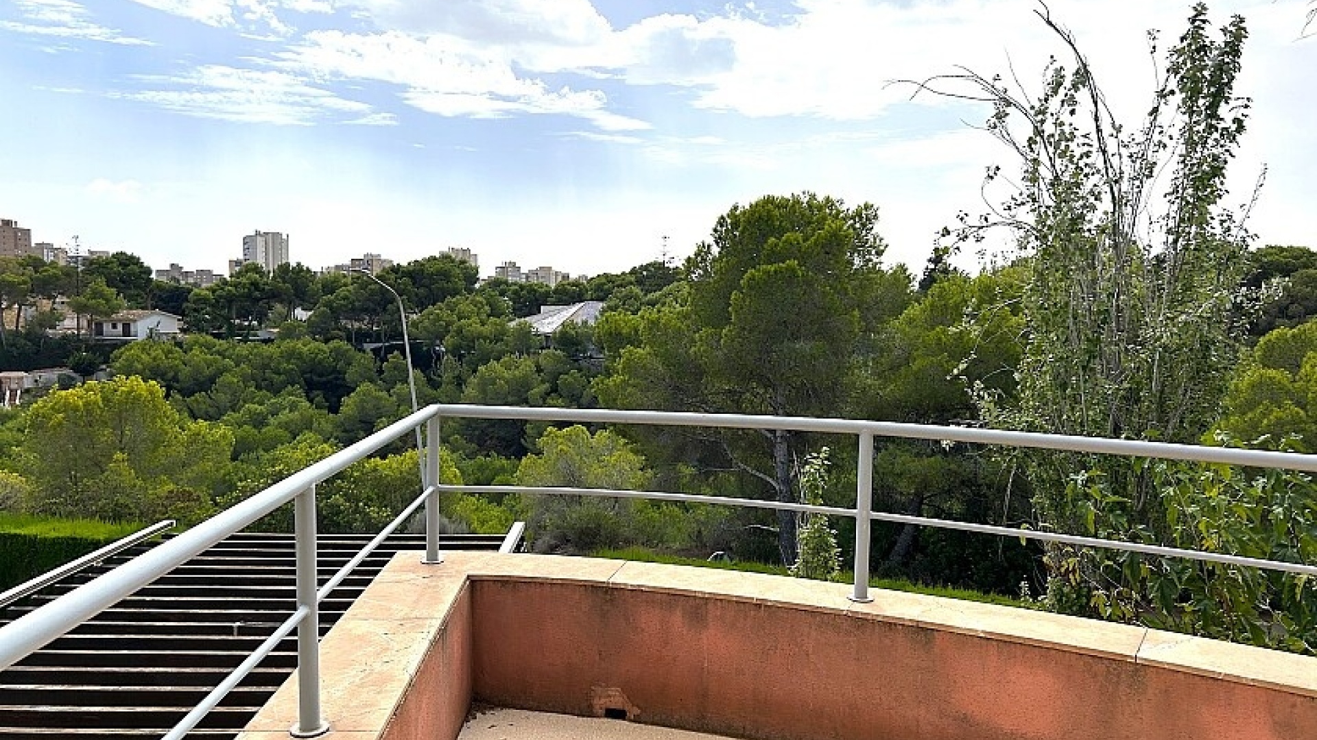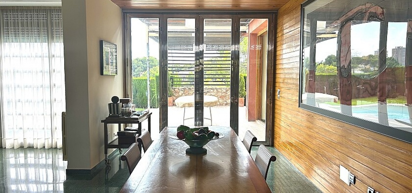 La maison a 413 m2 répartis sur trois étages. Au rez-de-chaussée, de 176 m2, il y a un grand séjour avec cheminée, cuisine séparée, salle à manger, débarras avec galerie et toilettes. Au premier étage, de 140 m2, se trouvent quatre grandes chambres avec leurs salles de bains et terrasses. Au sous-sol, d'une superficie de 96 m2, il y a un garage, un débarras et des locaux techniques.