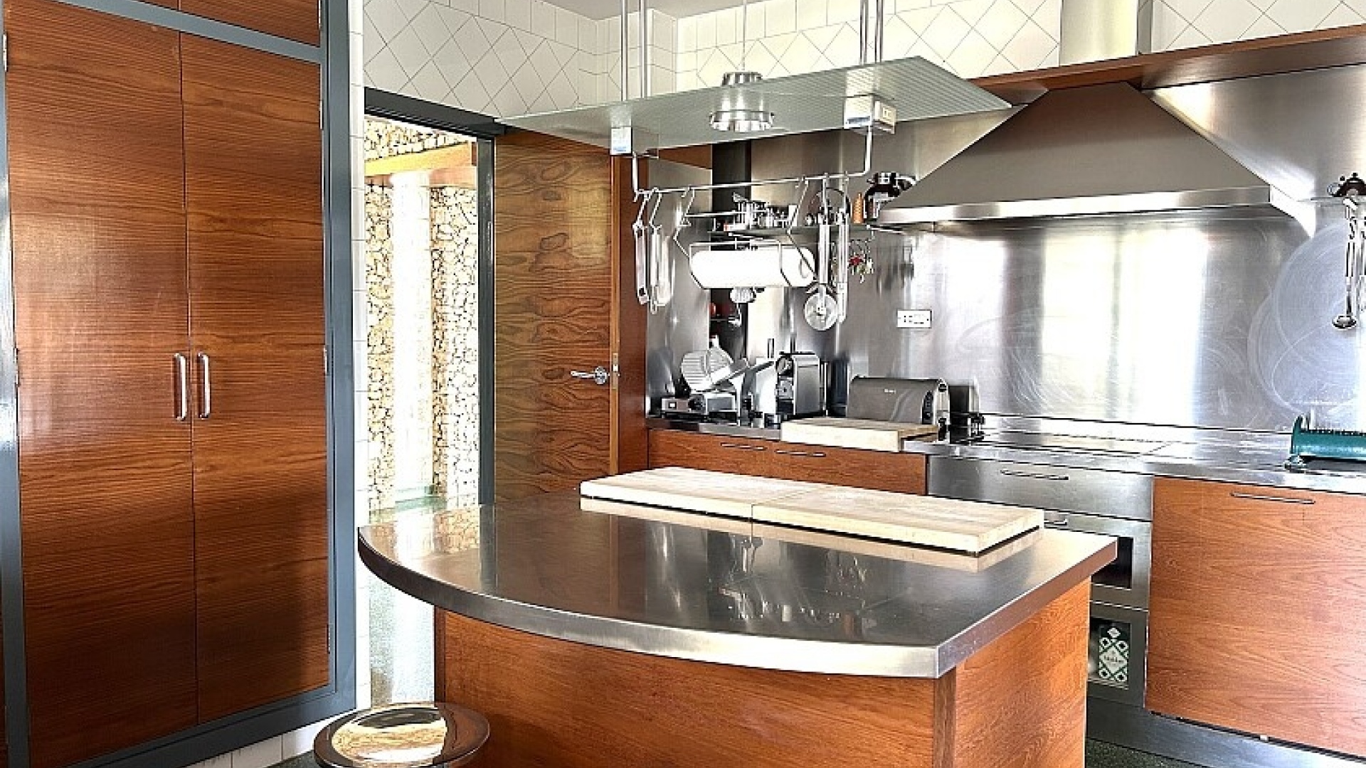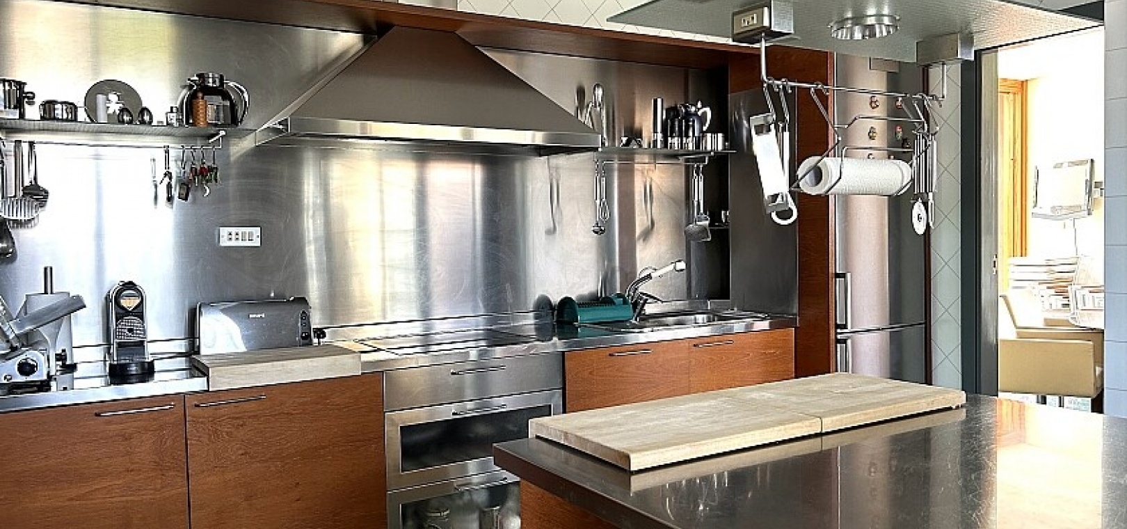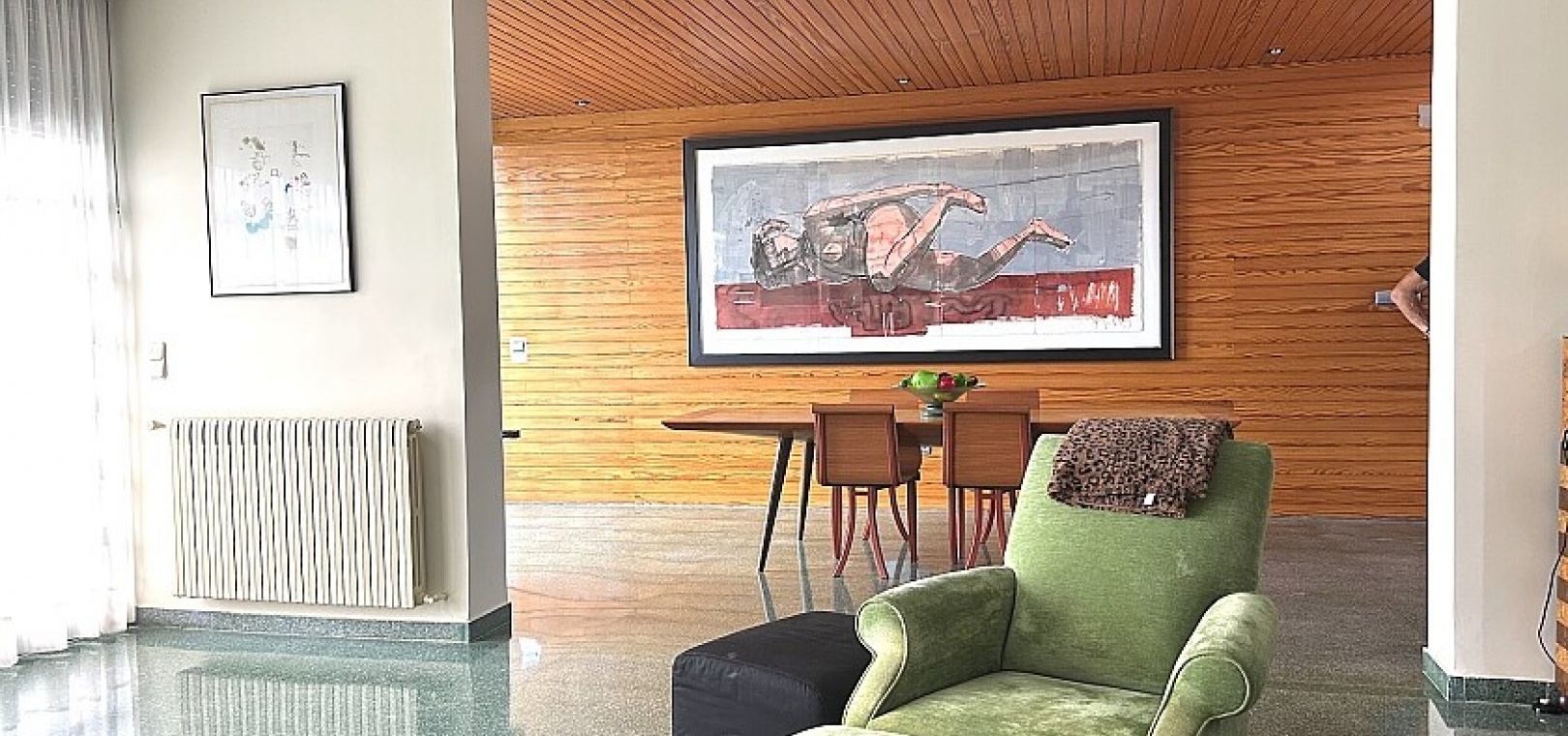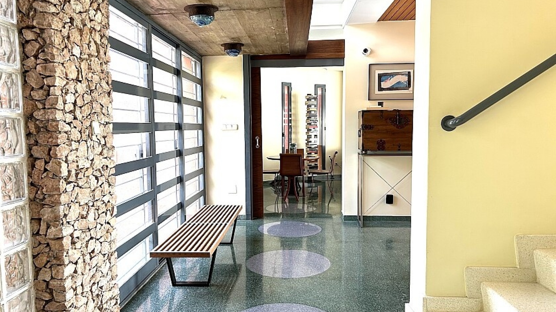 La maison a 413 m2 répartis sur trois étages. Au rez-de-chaussée, de 176 m2, il y a un grand séjour avec cheminée, cuisine séparée, salle à manger, débarras avec galerie et toilettes. Au premier étage, de 140 m2, se trouvent quatre grandes chambres avec leurs salles de bains et terrasses. Au sous-sol, d'une superficie de 96 m2, il y a un garage, un débarras et des locaux techniques.