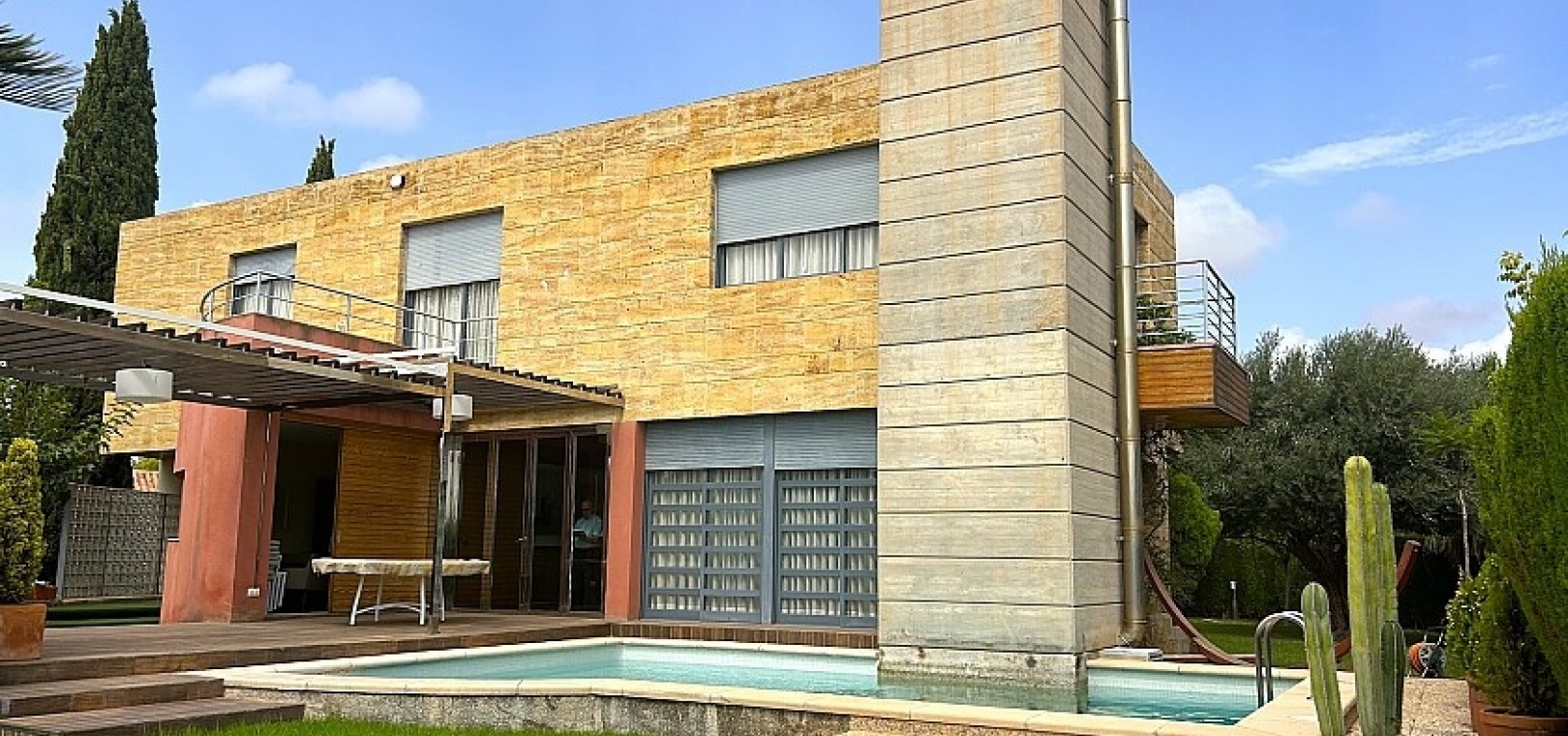 La maison est en très bon état, elle est vendue avec meubles et électroménagers, elle dispose de la climatisation et aussi de radiateurs pour l'hiver, toutes les chambres ont des armoires encastrées et des stores électriques.