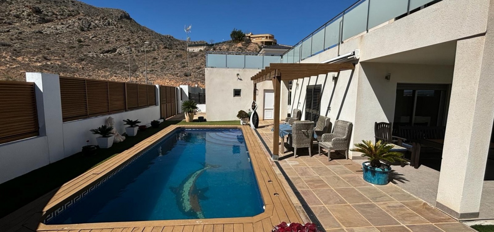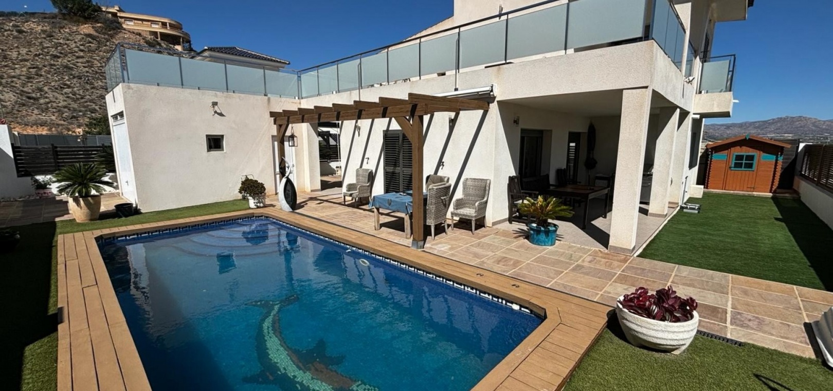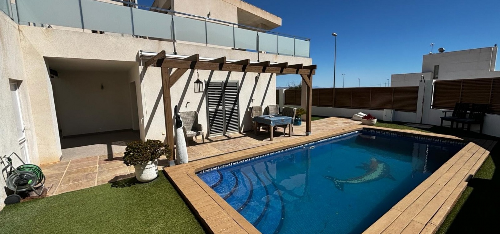 A l'extérieur, espace pour manger et bronzer autour de la piscine privée, garage séparé et rangement à l'arrière de la propriété. De nombreux extras avec cette villa individuelle, notamment la climatisation canalisée chaude et froide, le chauffage et le refroidissement par le sol partout, les volets électriques, les portails électriques, les placards intégrés dans toutes les chambres, le garage et le parking hors route. Une propriété avec beaucoup de caractère et qui vaut le détour ! Située dans un endroit tranquille, à proximité des commodités, à seulement 5 minutes en voiture de la ville principale, à 25 minutes de l'aéroport d'Alicante. Dans l'ensemble, cette superbe propriété doit être vue.