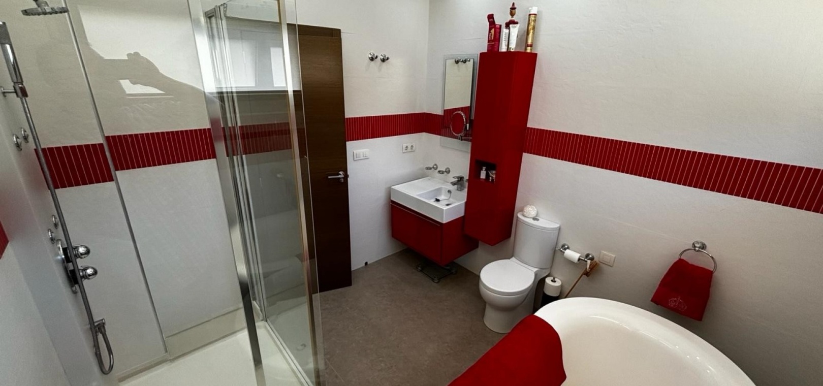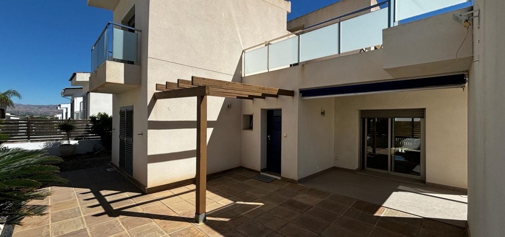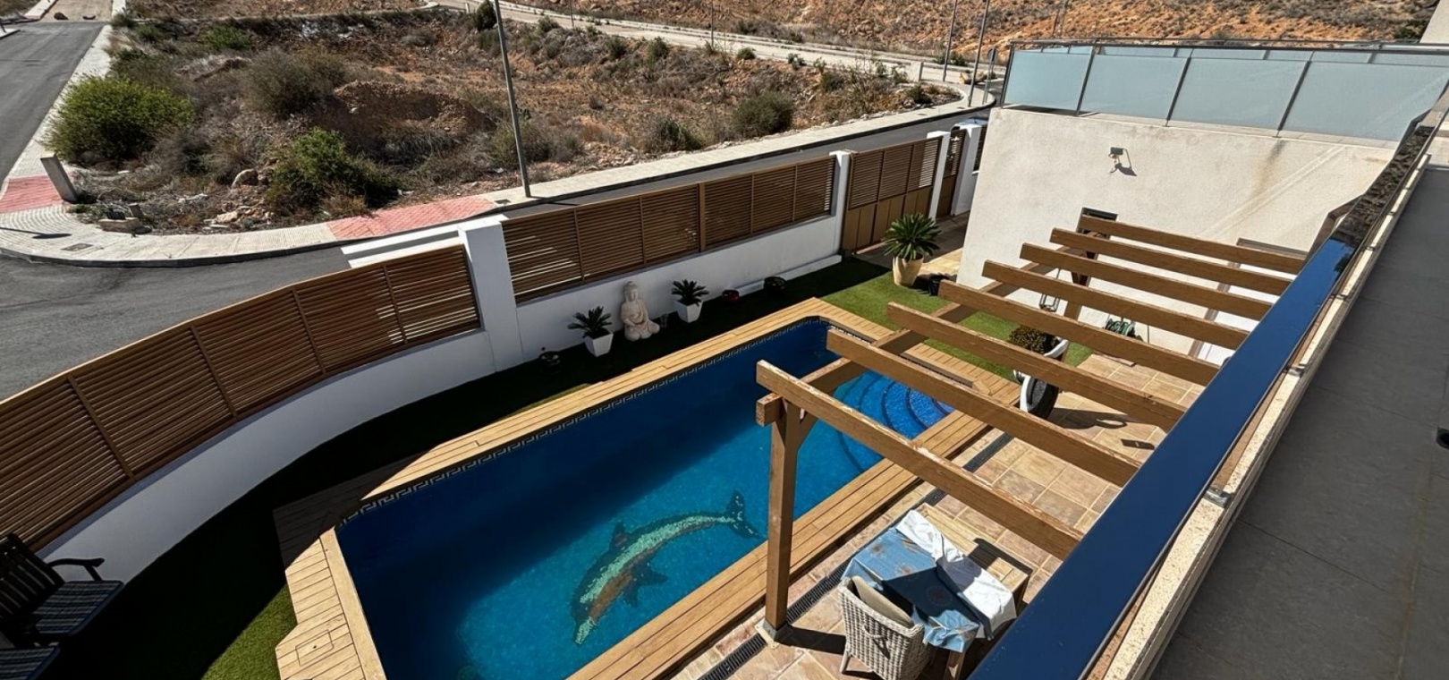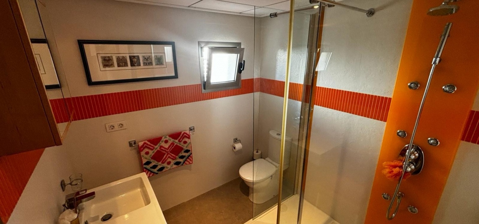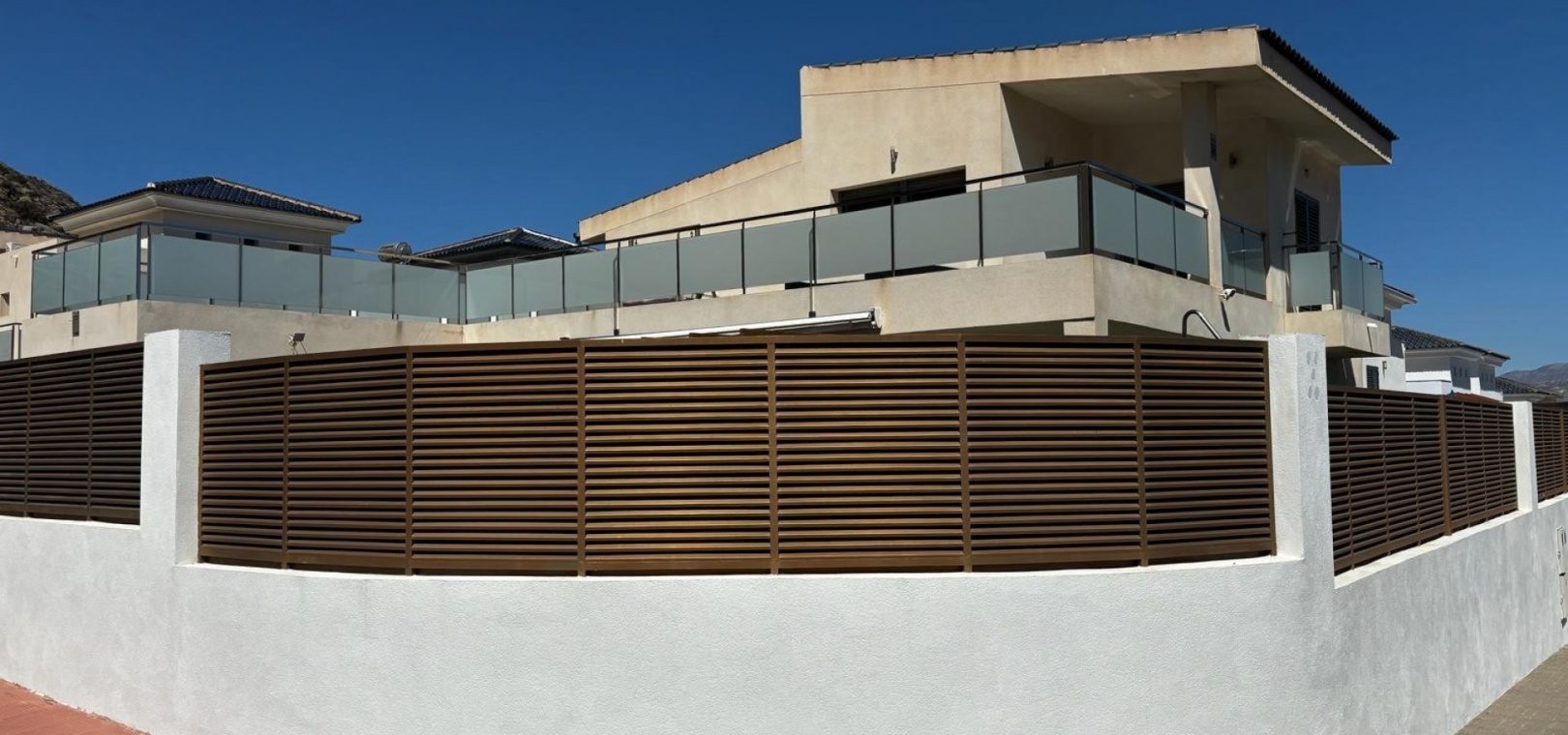 Nous avons ici une belle villa individuelle dans la campagne juste à l'extérieur de Cox, sur la Costa Blanca Sud. Cette spacieuse villa avec un terrain de 454 m2 et une construction de 167 m2, exposée plein sud et construite en 2009 par un seul propriétaire et se compose des éléments suivants : Au rez-de-chaussée, il y a un grand salon, des toilettes séparées, une chambre double avec accès au jardin et salle de douche attenante, une salle à manger ouverte et une cuisine entièrement équipée avec buanderie séparée de la cuisine avec accès au jardin. A l'étage se trouvent deux chambres doubles de bonne taille, toutes deux avec leur propre salle de bains aux couleurs coordonnées, une baignoire indépendante dans la salle de bains principale, un accès aux balcons et un grand solarium avec une vue imprenable sur les montagnes,