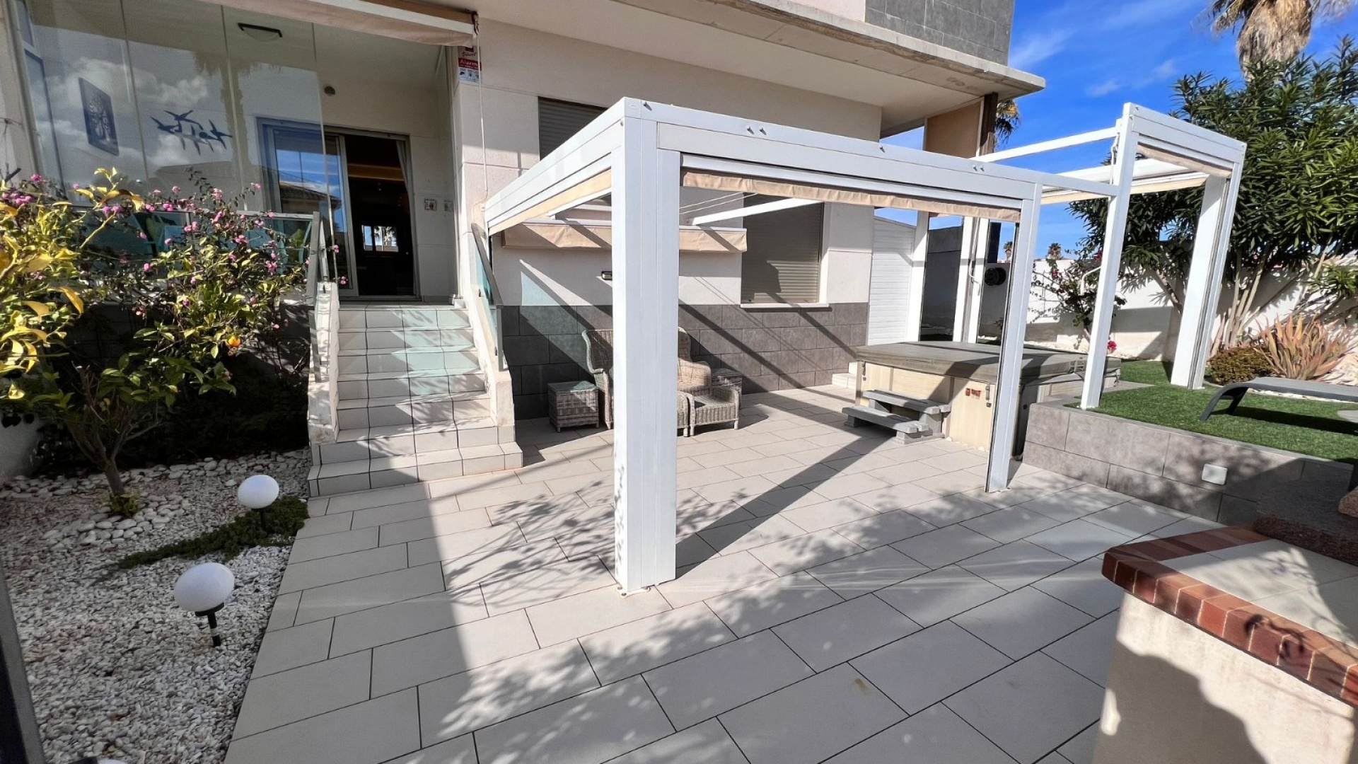 L'appartement est en bon état général et est entièrement meublé, y compris les appareils électroménagers. Il est équipé de la climatisation pour un confort tout au long de l'année. À l'extérieur, vous trouverez une cour privée, un porche et une terrasse, offrant beaucoup d'espace extérieur pour vous détendre ou vous divertir. Les commodités supplémentaires comprennent une buanderie, un débarras et une porte d'entrée renforcée pour plus de sécurité.