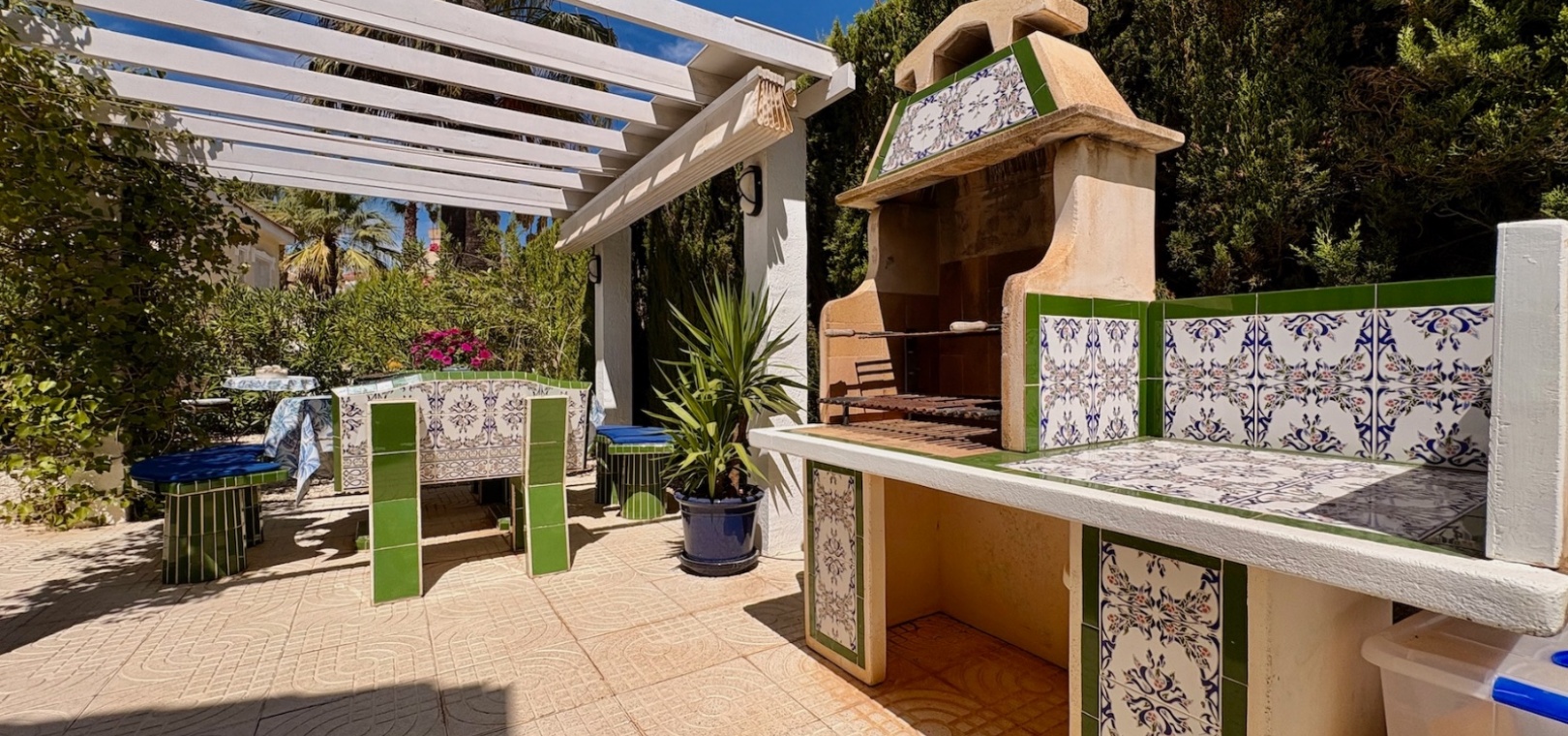 Superficie du terrain : 220 m² Surface construite : 85 m² (de plain-pied) Véranda : 17 m² vitrée – idéale pour profiter en toute saison Jardin privé : 135 m² avec arbres matures, haies, un espace barbecue et un espace repas extérieur confortable Solarium : Solarium sur le toit de 20 m² avec vue dégagée et soleil toute la journée Débarras au sous-sol : spacieux et pratique pour les séjours de longue durée ou la résidence permanente Piscine commune : partagée avec seulement quelques voisins – calme, propre et bien entretenue