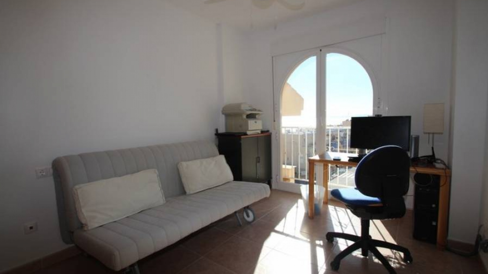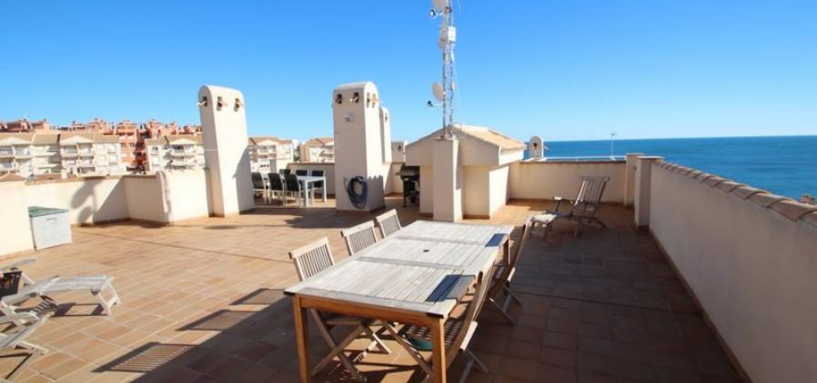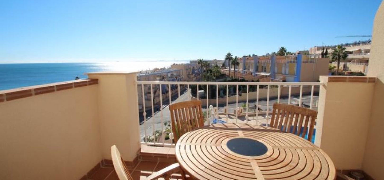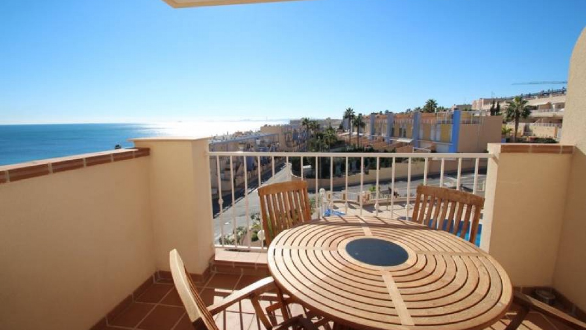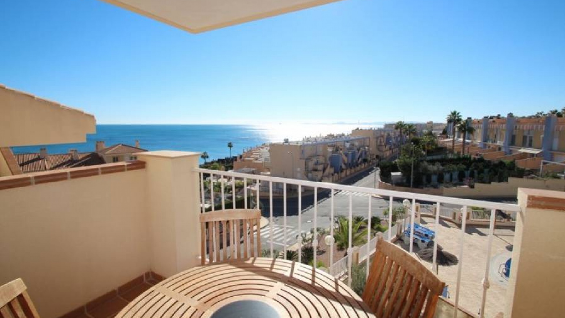 Penthouse à Dehesa de Campoamor avec solarium privé de 112 m2 et vue spectaculaire sur la mer. Maison de 65 m dans un immeuble moderne, à seulement 200 m de la plage, à proximité d'une zone avec restaurants, centre médical et supermarché.~L'appartement dispose de 2 chambres avec lits doubles, 1 salle de bain, cuisine indépendante entièrement équipée avec buanderie. Séjour avec canapé-lit pour 2 personnes supplémentaires, avec accès à la terrasse exposée sud. Depuis l'appartement, il y a sa propre sortie vers le très grand solarium qui offre une vue panoramique sur la mer et dispose d'un espace barbecue. L'appartement est meublé et conçu dans le style scandinave, dispose d'un accès Internet gratuit, de la climatisation dans chaque chambre. Le résidentiel dispose d'une piscine communautaire et d'une aire de repos.~
