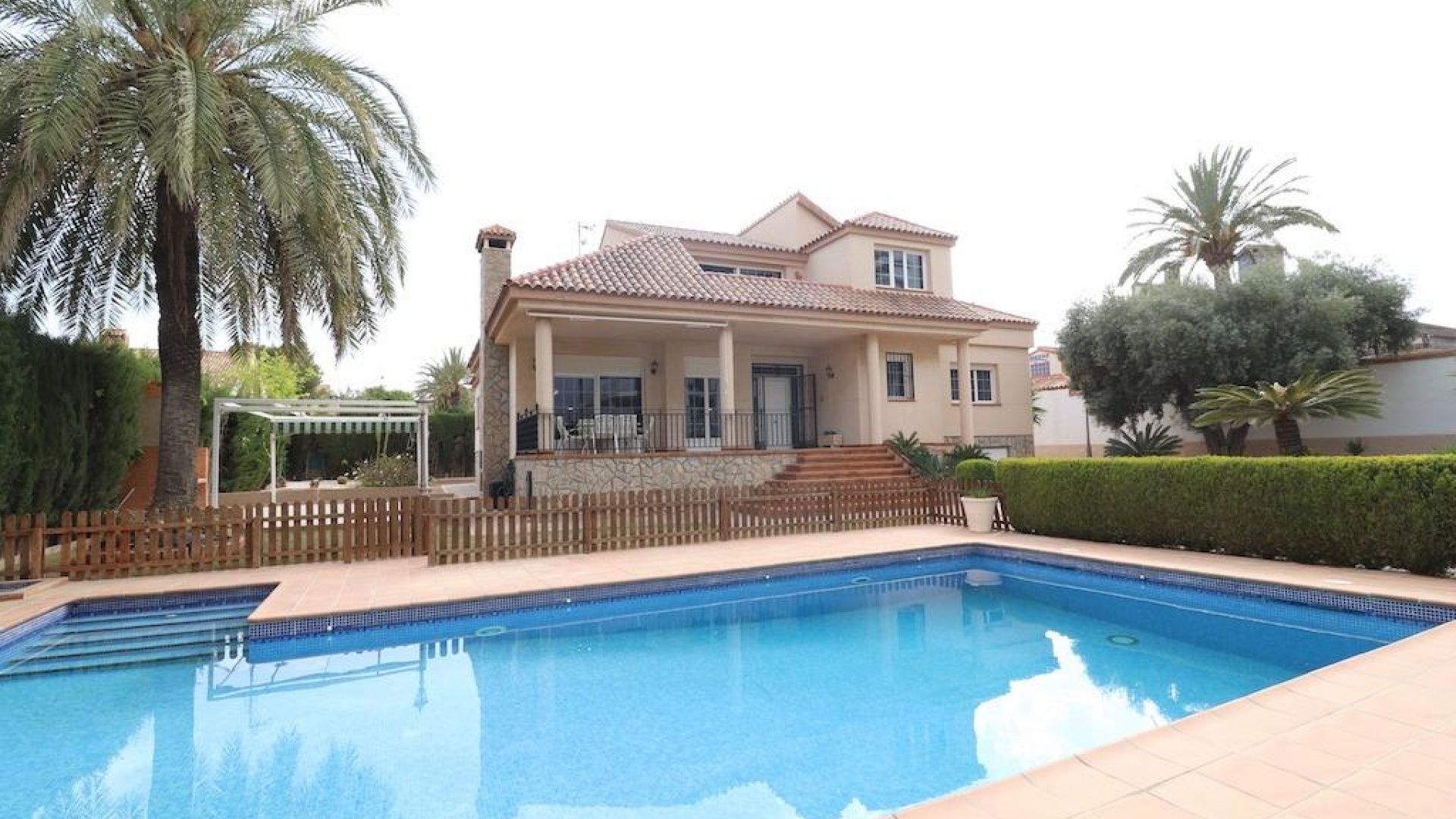 Mil Palmeras, Villa individuelle avec un grand terrain de 1000 m2 et une maison sur 2 étages plus un sous-sol-garage d'environ 350 m2, elle est située à seulement 300 m de la plage, et dispose de 4 chambres, toutes doubles, avec 3 salles de bains, un grand salon salle à manger sur deux niveaux, grande cuisine indépendante avec coin buanderie, à l'étage dispose d'un autre salon avec un billard et un bar privé, la maison dispose de 3 terrasses, d'un garage pour deux voitures et d'une cave, elle dispose d'un grand jardin avec son barbecue et avec sa pergola et une grande piscine privée.~