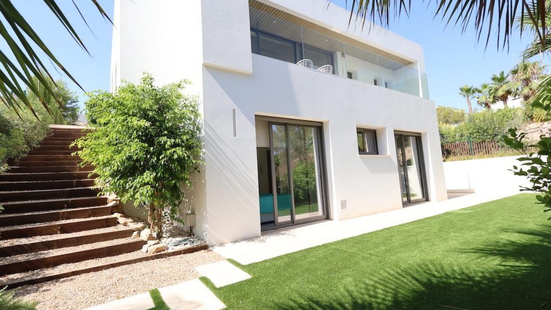 Las Colinas Golf & Countryclub, Villa de luxe Granado II 272 m2 haut de gamme sur 2 étages, avec un terrain de 1000m2, la maison dispose de 2 salons (un à chaque étage), 4 chambres, 3 salles de bains, 1 WC, cuisine ouverte, équipée, avec îlot, sous-sol, débarras, maison intelligente avec domotique, climatisation canalisée, chauffage au sol dans les salles de bains, cuisine et salon extérieurs, piscine chauffée avec volets roulants automatiques, vue sur la piscine et la pinède, parking pour 2 voitures, la maison est vendue meublée et a accès au Beach Club en première ligne de la plage de Campoamor. Date de construction 2021.~