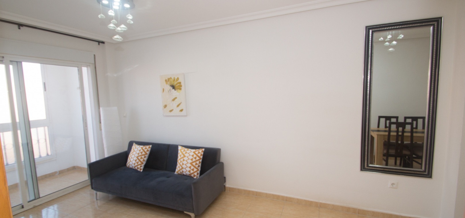 Un appartement de 3 chambres et 2 salles de bains au premier étage exposé plein sud situé dans la charmante ville espagnole de San Isidro, Costa Blanca Sud.