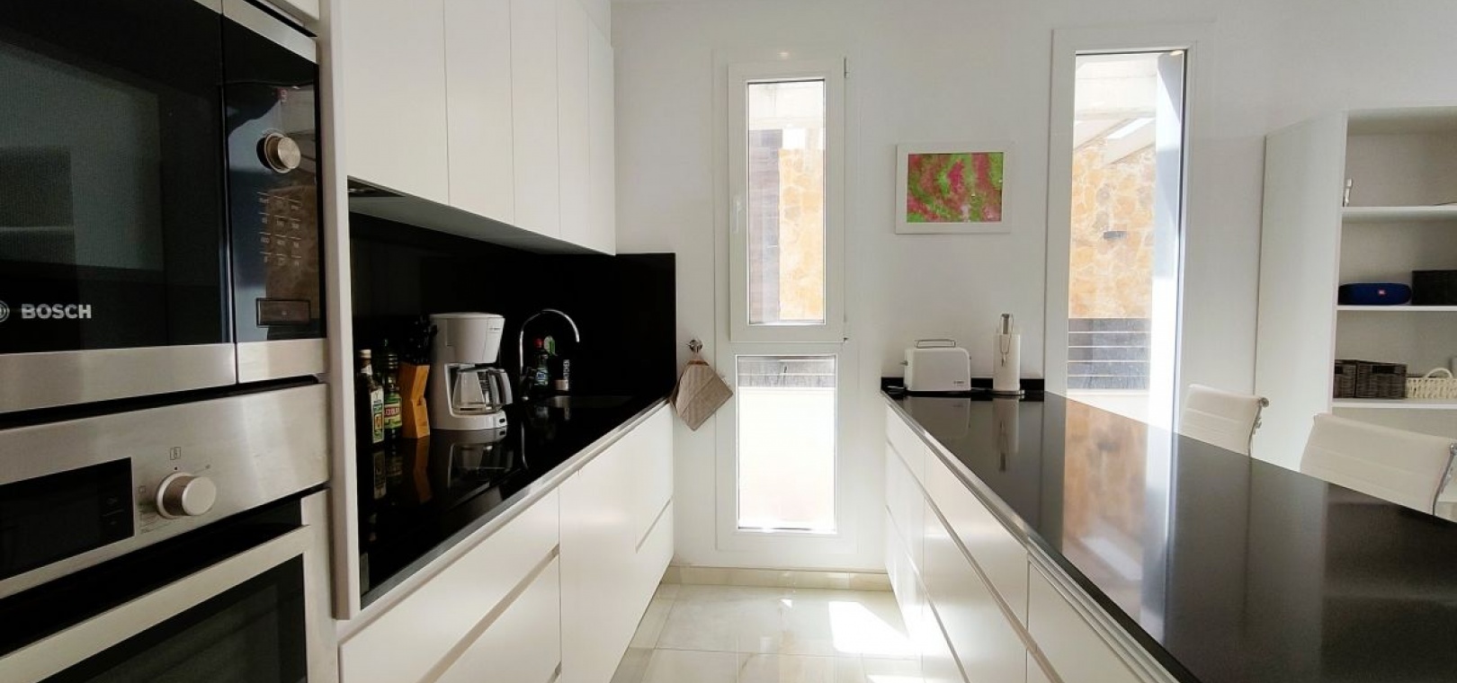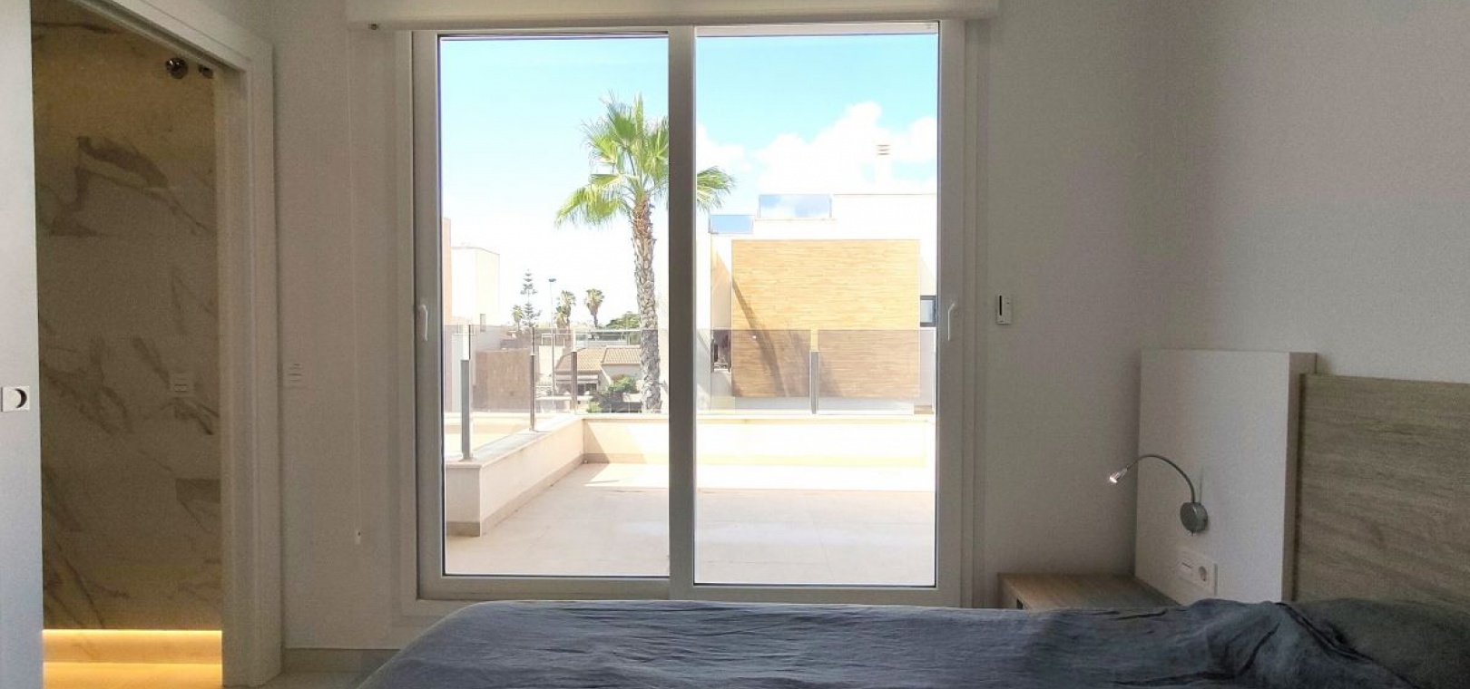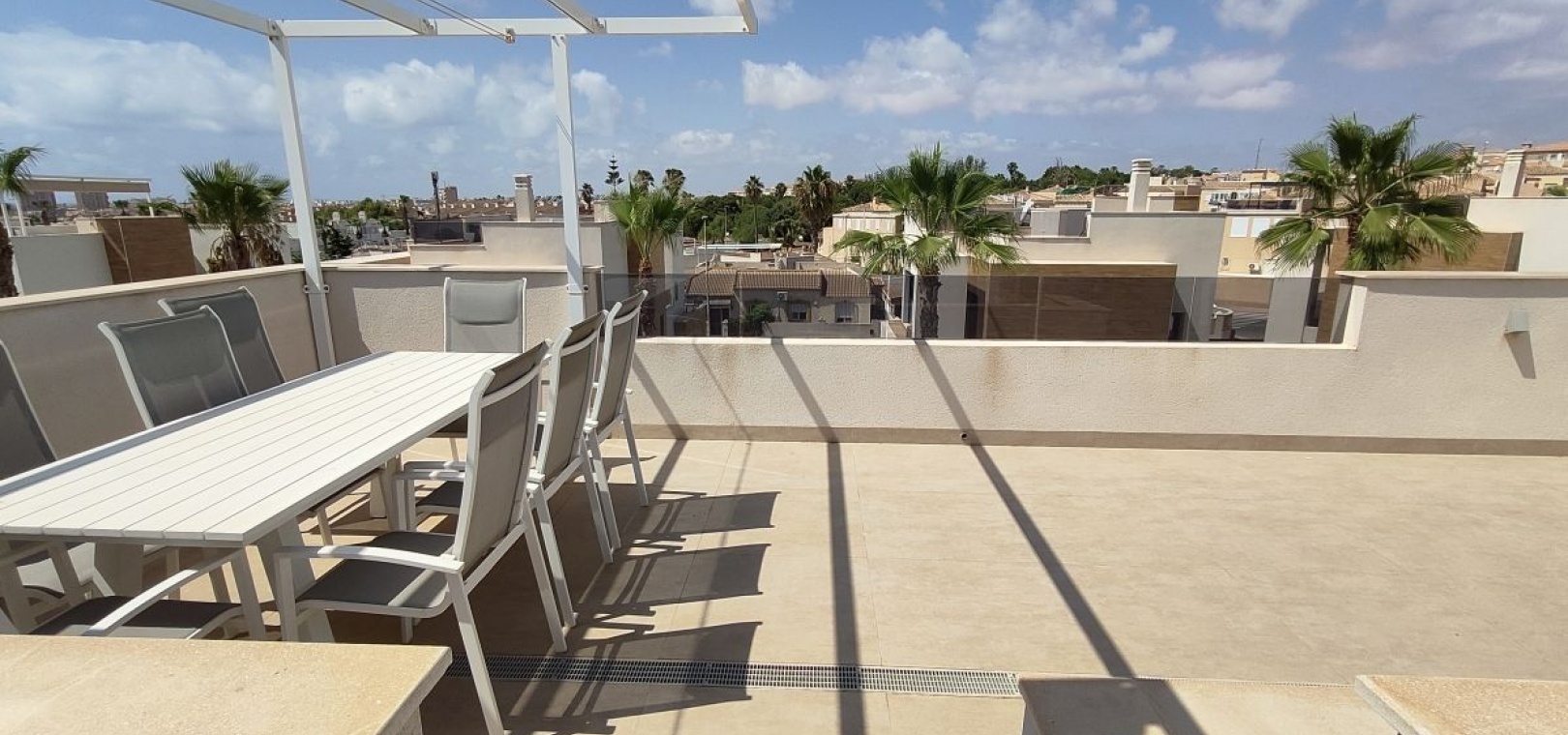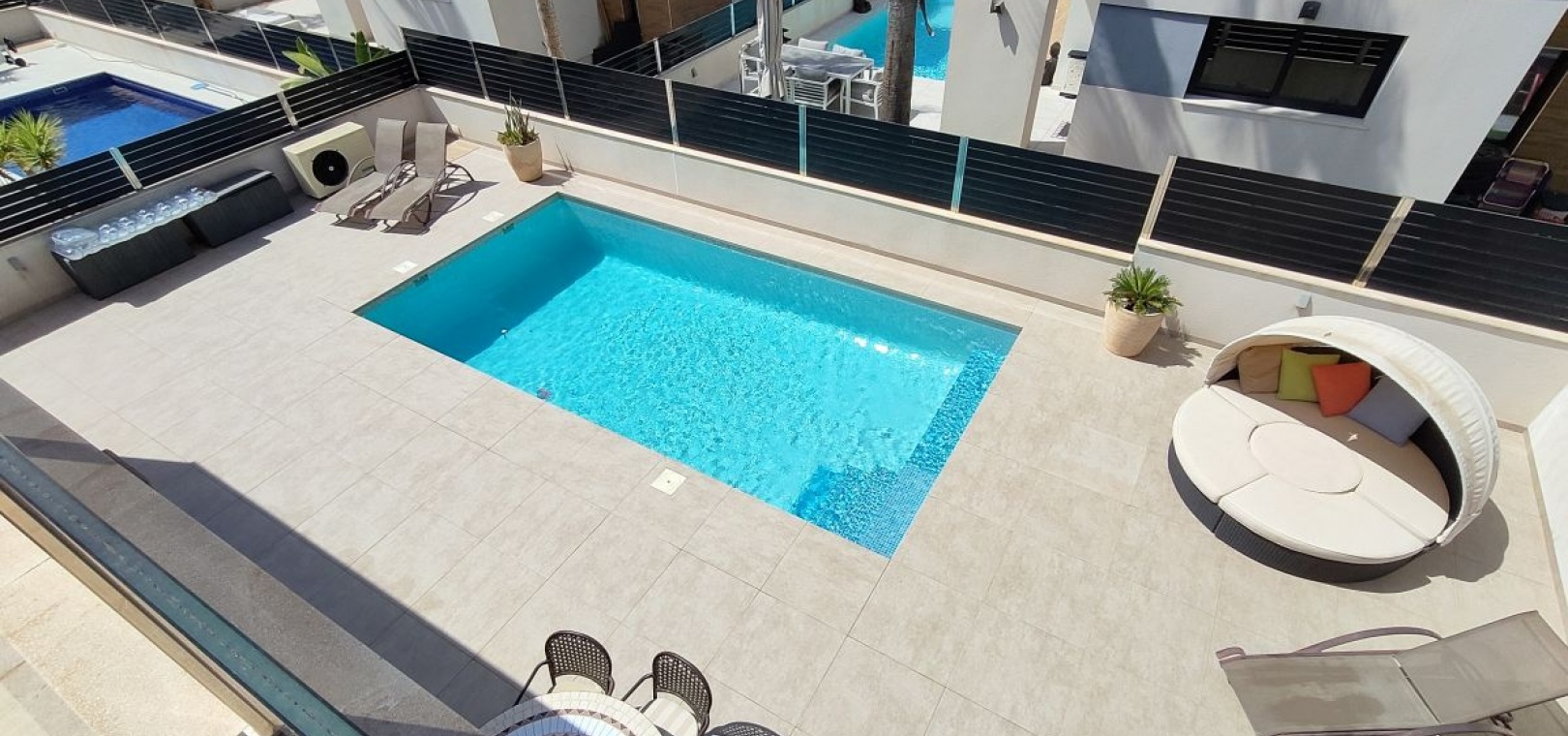 Villa exclusive orientée plein sud près de la plage de La Mata - Emplacement privilégié et vue imprenable sur la mer Découvrez cette magnifique villa de luxe, construite en 2018, dans l'un des quartiers les plus recherchés du sud de la Costa Blanca. Idéalement située à seulement 5 minutes à pied de la plage de La Mata, cette superbe maison offre un emplacement côtier privilégié, une vue imprenable sur la mer et du soleil toute la journée grâce à son orientation parfaite vers le sud. Située dans le prestigieux complexe El Amanecer I Villas, cette propriété est entourée de plages immaculées, de magnifiques paysages côtiers, de restaurants gastronomiques, de charmants cafés et de toutes les commodités essentielles, garantissant un style de vie méditerranéen détendu et dynamique. Cette villa spacieuse comprend 3 chambres élégamment conçues avec placards intégrés et 3 salles de bains modernes. Le salon décloisonné et lumineux se connecte parfaitement à une élégante cuisine entièrement équipée, tandis que de grandes fenêtres inondent l'espace de lumière naturelle, renforçant l'atmosphère chaleureuse et accueillante de la maison. Montez sur la terrasse couverte, où vous pourrez vous détendre tout en surplombant votre piscine privée chauffée, entourée d'un jardin luxuriant et magnifiquement paysager - votre propre coin de paradis. Le niveau supérieur offre un accès à une grande terrasse depuis les deux chambres (toutes deux avec salle de bains privative), menant au vaste solarium sur le toit. De là, profitez d'une vue panoramique imprenable sur la mer, complétée par un espace barbecue et un espace repas extérieur, idéal pour se détendre ou se divertir tout en profitant de la brise méditerranéenne. Conçue pour un maximum de confort et de luxe, cette villa est équipée d'appareils électroménagers de haute technologie, de la climatisation canalisée (chaud et froid), du chauffage au sol, de volets et d'auvents électriques, d'une piscine chauffée et d'un système d'alarme ultramoderne. Elle dispose également d'un parking privé couvert dans une communauté fermée sécurisée avec accès à deux rues.