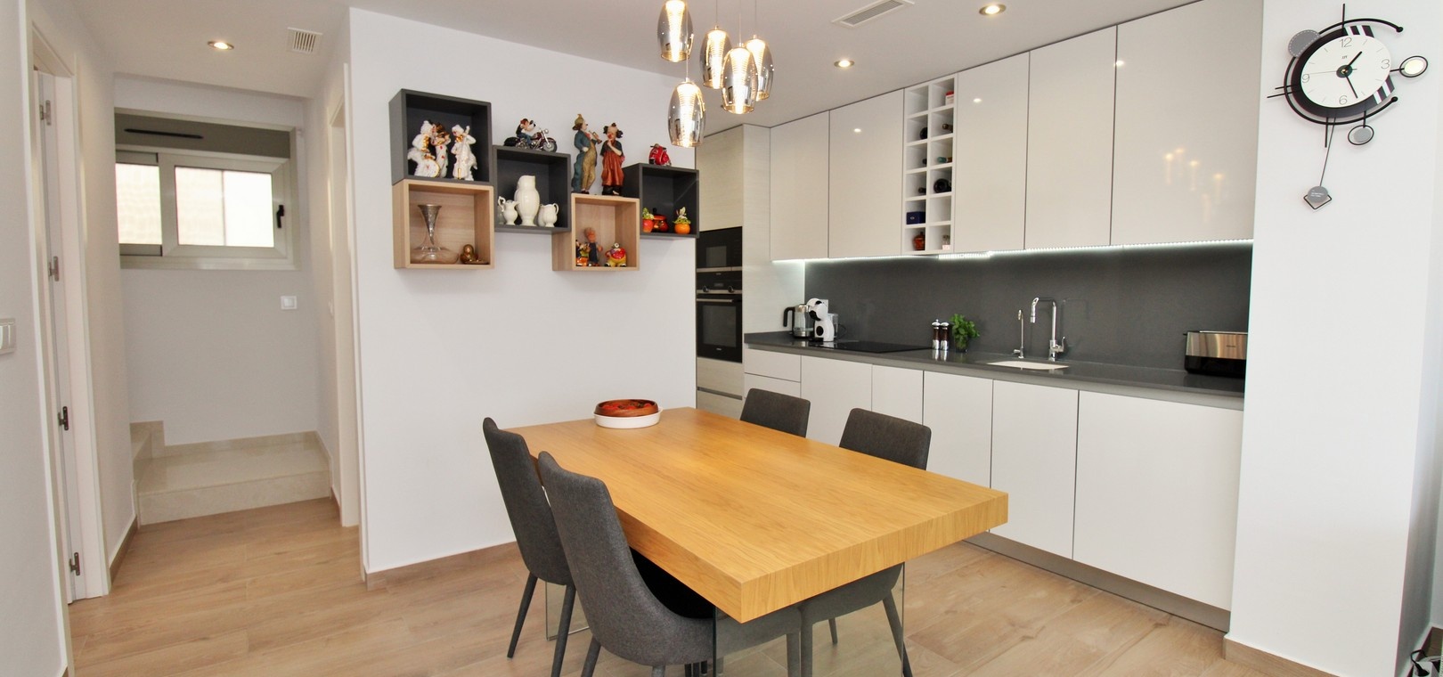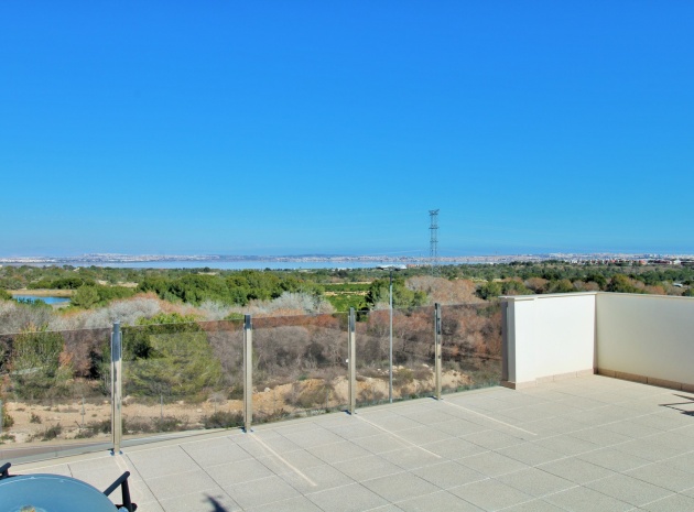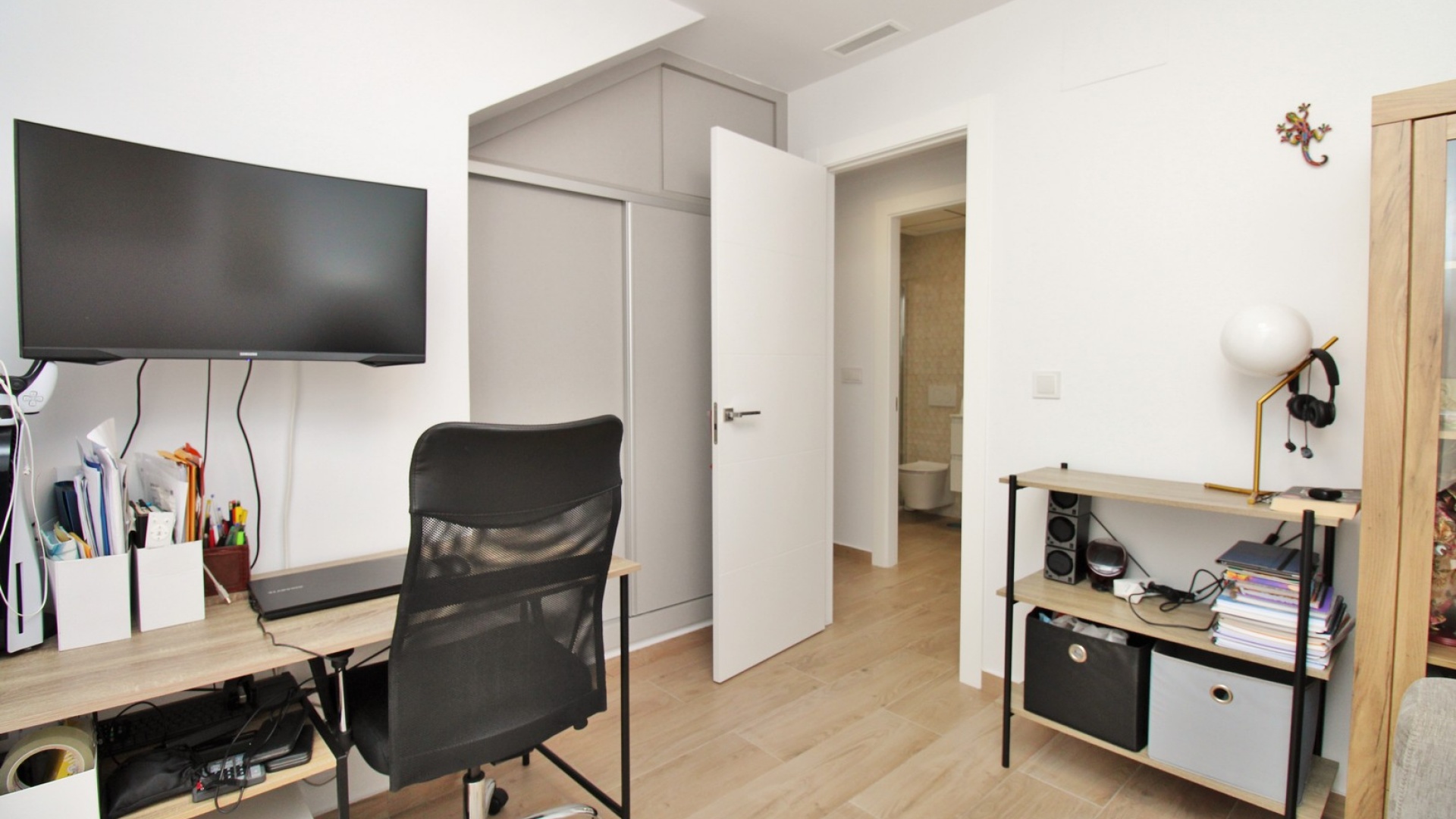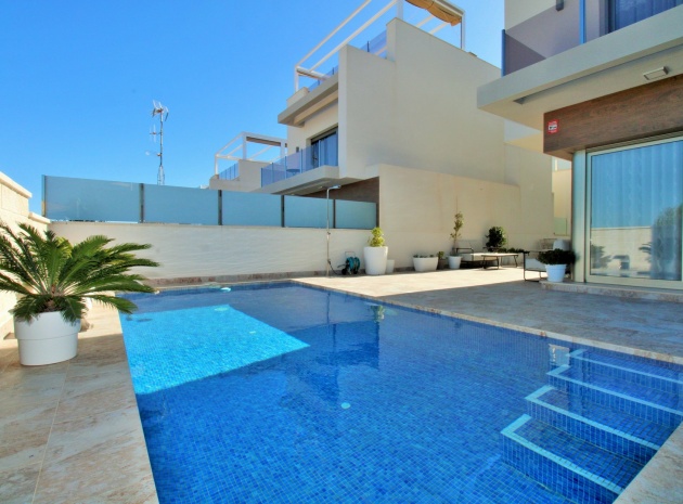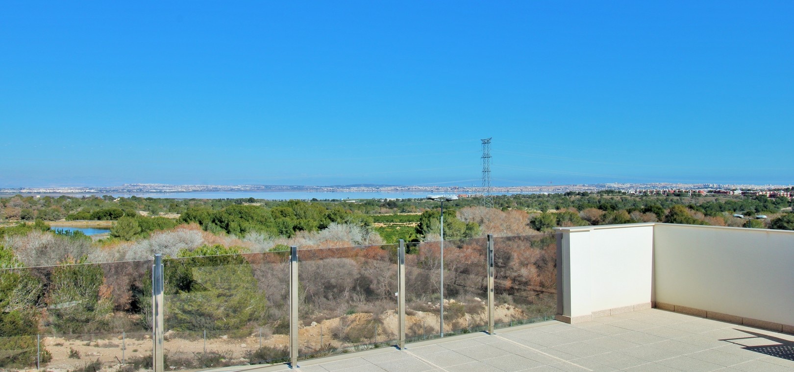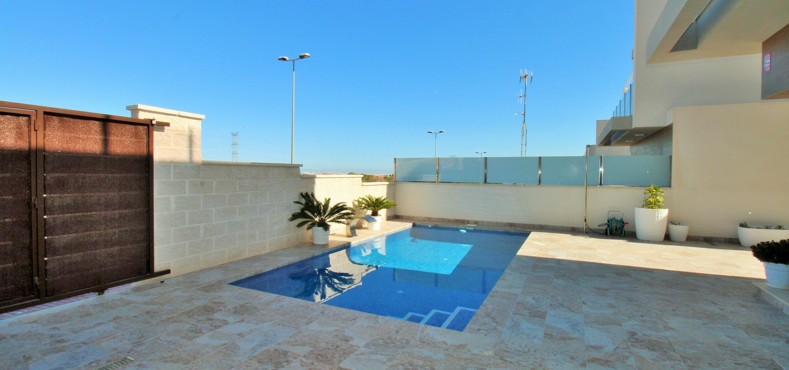 Cette luxueuse et moderne villa individuelle de 3 chambres et 3 salles de bains est située dans le quartier Pau 26 de Villamartin. Achevée en 2023, cette belle villa offre une piscine privée, un parking hors route avec une grande terrasse en L, un balcon avant et un immense solarium sur le toit offrant une vue sur la mer et les lacs salés de Torrevieja. Le rez-de-chaussée comprend un salon-salle à manger lumineux et aéré avec une cuisine moderne sur mesure avec des appareils intégrés (four, micro-ondes, lave-vaisselle, réfrigérateur-congélateur...), une chambre en bas avec placards intégrés (actuellement utilisée comme bureau/2ème salon) et une salle de bain en bas avec douche à l'italienne. De grandes portes coulissantes du salon vous mènent directement à la piscine. A l'étage, il y a 2 chambres doubles avec placards intégrés, toutes deux offrant des salles de bains privatives avec douches à l'italienne, ainsi qu'un accès au balcon avant. Depuis le palier, vous pouvez accéder à l'immense solarium sur le toit, offrant une vue imprenable sur les lacs salés de Torrevieja, la mer et les environs. La propriété est vendue avec des meubles de haute qualité, des appareils électroménagers et bénéficie d'autres extras, notamment le chauffage au sol dans toutes les salles de bains, la climatisation canalisée dans tout l'appartement, des stores électriques, un éclairage LED et un panneau solaire pour l'eau chaude. Situé à seulement 1 km d'un supermarché ALDI et du centre commercial Via Park III, offrant une gamme de bars, restaurants et autres services, dont une pharmacie. La place Villamartin et le parcours de golf se trouvent à quelques minutes en voiture, ainsi que les plages Pavillon bleu d'Orihuela Costa et le célèbre centre commercial Zenia Boulevard.