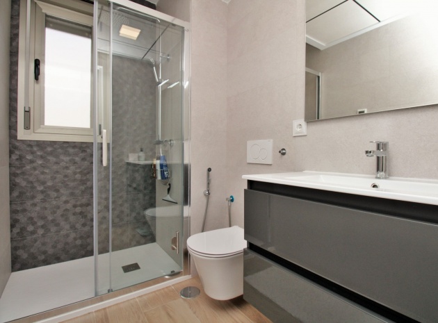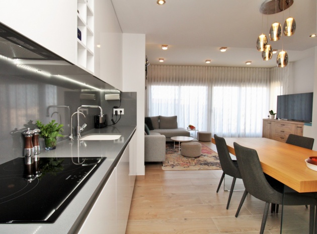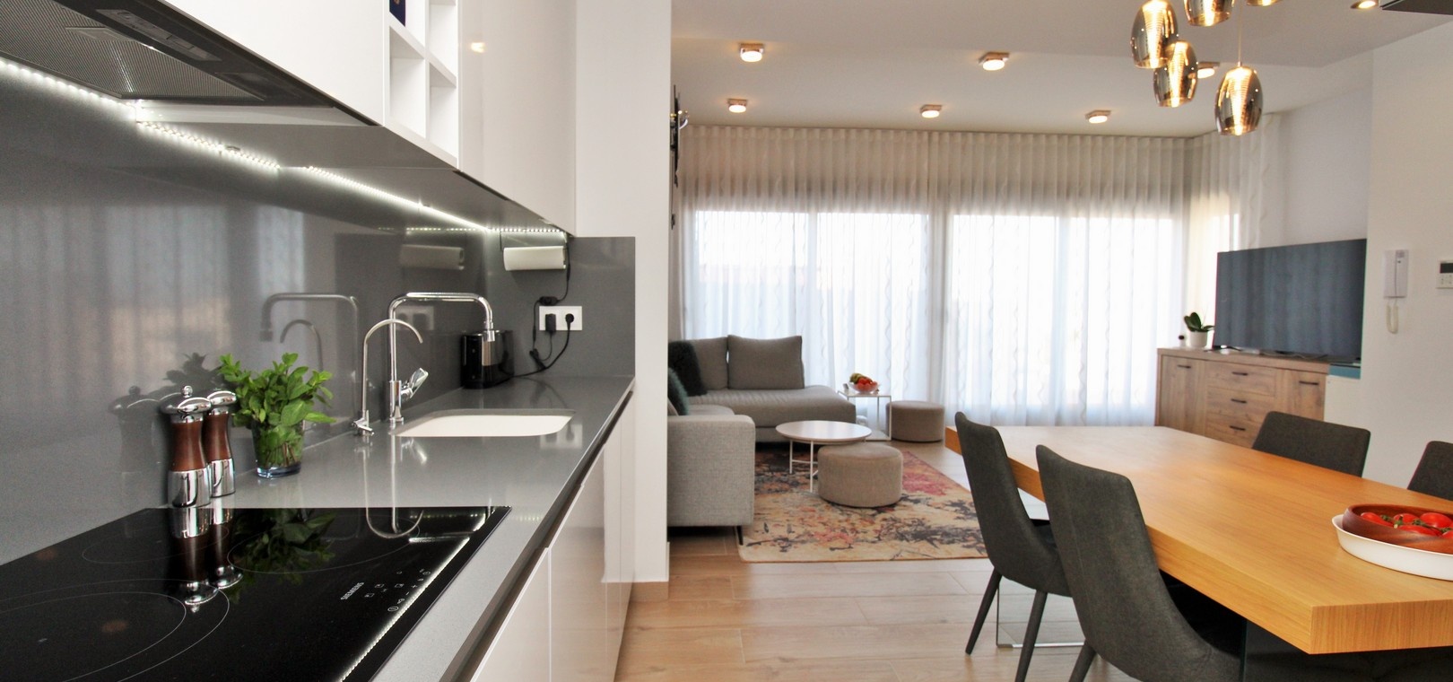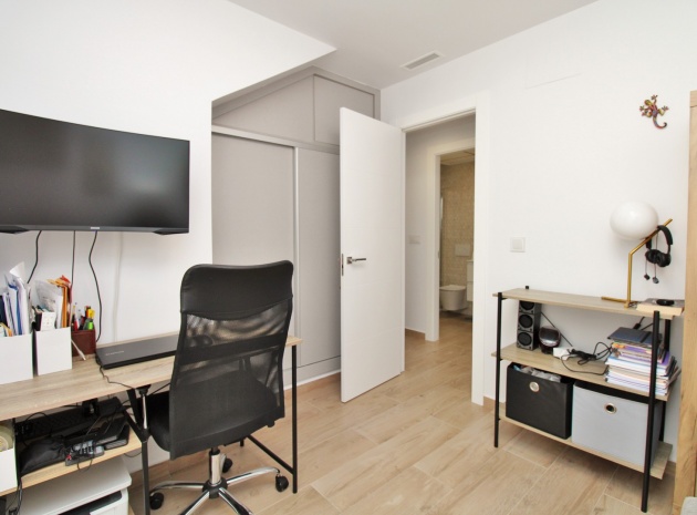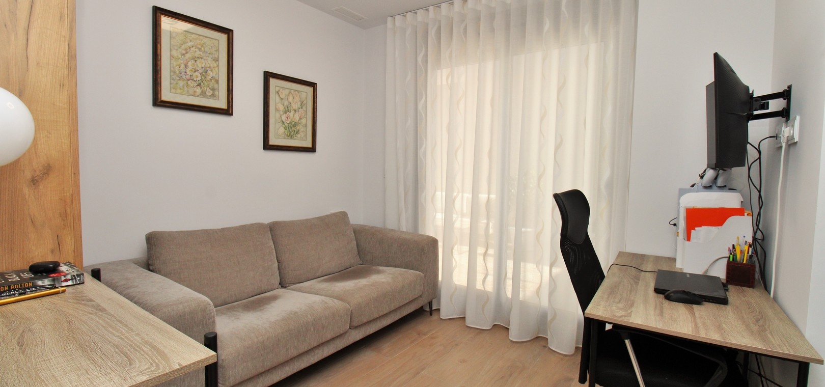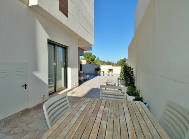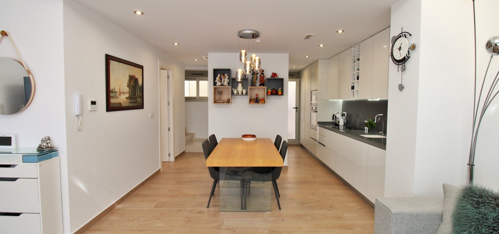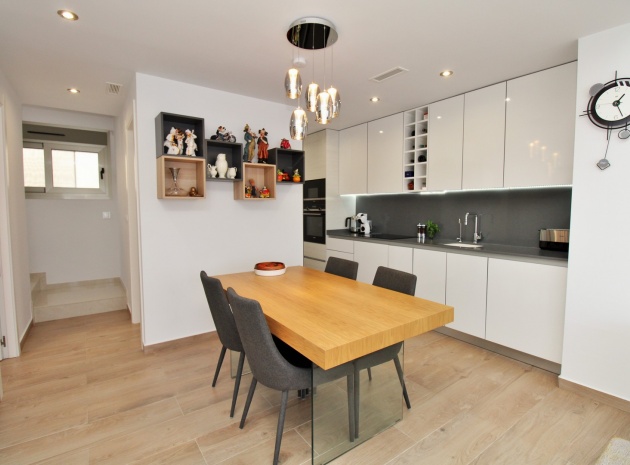 Cette luxueuse et moderne villa individuelle de 3 chambres et 3 salles de bains est située dans le quartier Pau 26 de Villamartin. Achevée en 2023, cette belle villa offre une piscine privée, un parking hors route avec une grande terrasse en L, un balcon avant et un immense solarium sur le toit offrant une vue sur la mer et les lacs salés de Torrevieja. Le rez-de-chaussée comprend un salon-salle à manger lumineux et aéré avec une cuisine moderne sur mesure avec des appareils intégrés (four, micro-ondes, lave-vaisselle, réfrigérateur-congélateur...), une chambre en bas avec placards intégrés (actuellement utilisée comme bureau/2ème salon) et une salle de bain en bas avec douche à l'italienne. De grandes portes coulissantes du salon vous mènent directement à la piscine. A l'étage, il y a 2 chambres doubles avec placards intégrés, toutes deux offrant des salles de bains privatives avec douches à l'italienne, ainsi qu'un accès au balcon avant. Depuis le palier, vous pouvez accéder à l'immense solarium sur le toit, offrant une vue imprenable sur les lacs salés de Torrevieja, la mer et les environs. La propriété est vendue avec des meubles de haute qualité, des appareils électroménagers et bénéficie d'autres extras, notamment le chauffage au sol dans toutes les salles de bains, la climatisation canalisée dans tout l'appartement, des stores électriques, un éclairage LED et un panneau solaire pour l'eau chaude. Situé à seulement 1 km d'un supermarché ALDI et du centre commercial Via Park III, offrant une gamme de bars, restaurants et autres services, dont une pharmacie. La place Villamartin et le parcours de golf se trouvent à quelques minutes en voiture, ainsi que les plages Pavillon bleu d'Orihuela Costa et le célèbre centre commercial Zenia Boulevard.