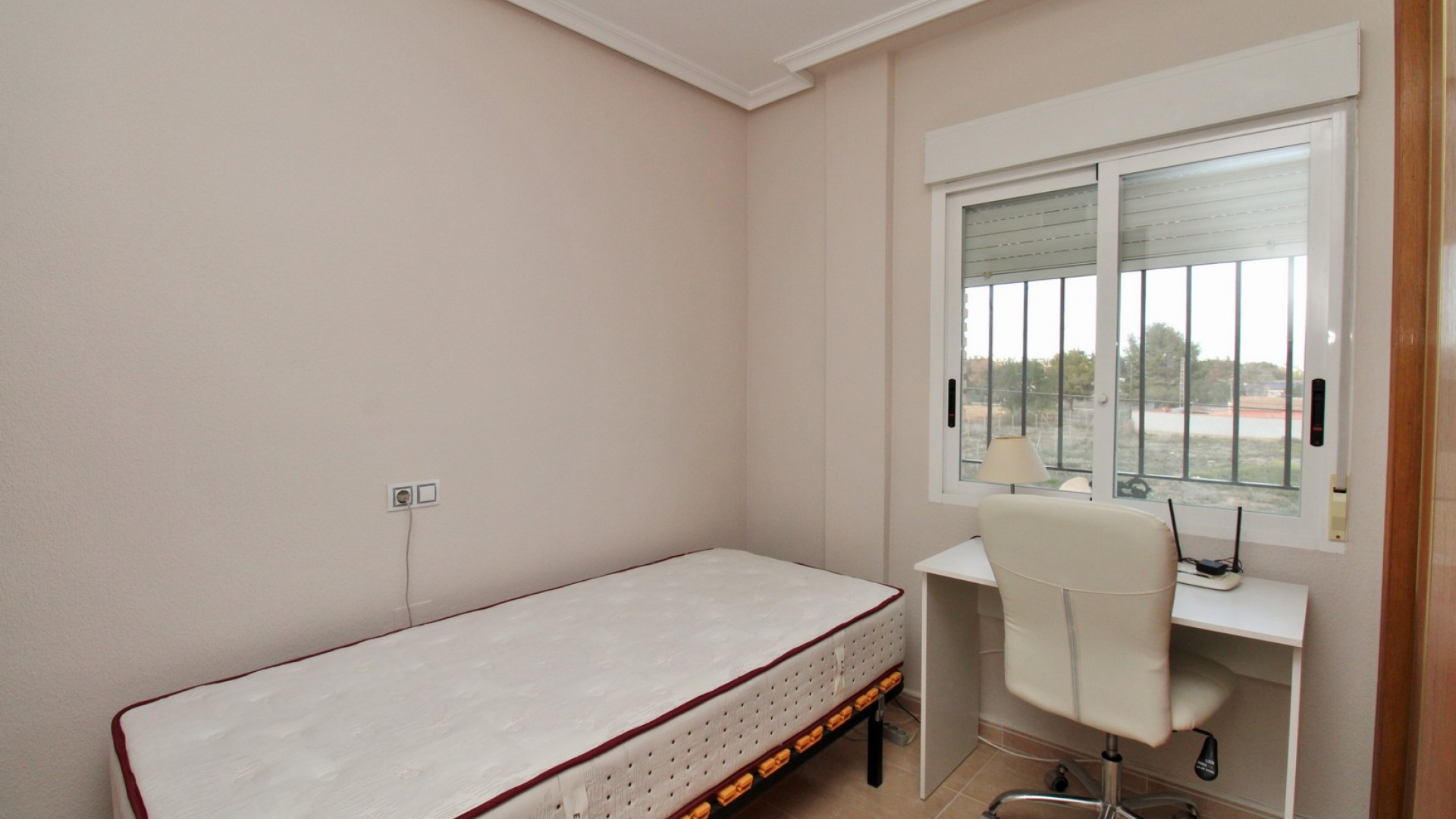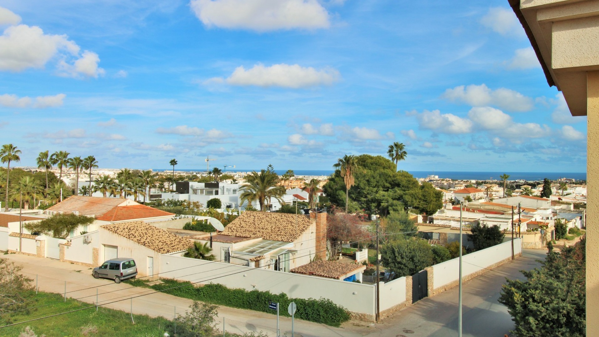 Spacieuse villa individuelle de trois chambres à vendre dans la communauté résidentielle de Las Ocas, Orihuela Costa. Idéalement située entre La Fuente et Lomas de Cabo Roig, elle se trouve à deux pas des célèbres parcours de golf de Campoamor et de Las Ramblas. La villa bénéficie d'un généreux terrain d'angle avec un jardin carrelé nécessitant peu d'entretien et un parking hors route. L'une des caractéristiques les plus remarquables est le grand solarium sur le toit, qui offre une vue imprenable sur la mer, tandis que les résidents ont également accès à une piscine commune à proximité. La villa est répartie sur deux étages. Au rez-de-chaussée, un porche fermé mène à un salon et une salle à manger lumineux et aérés, avec une cheminée. Il y a une cuisine séparée, une chambre à deux lits avec placards intégrés et une salle de bain moderne avec douche à l'italienne. À l'arrière, une buanderie et un espace de rangement offrent un confort supplémentaire. A l'étage, il y a deux autres chambres avec placards intégrés et une salle de bain familiale. La chambre principale est particulièrement spacieuse et bénéficie d'un balcon privé. Des escaliers intérieurs depuis le palier mènent au solarium sur le toit baigné de soleil, où vous pourrez admirer une vue panoramique sur les environs et la Méditerranée. La villa est vendue partiellement meublée. Cette maison est idéalement située entre les centres commerciaux animés de La Fuente et Lomas de Cabo Roig, offrant une fantastique sélection de boutiques, bars, restaurants et supermarchés, dont Mercadona, ALDI et Iceland. Un arrêt de bus se trouve à proximité, tandis que les superbes plages de Campoamor et Aguamarina, le centre commercial Zenia Boulevard et trois terrains de golf de championnat - Las Ramblas, Campoamor et Villamartín - sont tous à quelques minutes en voiture.