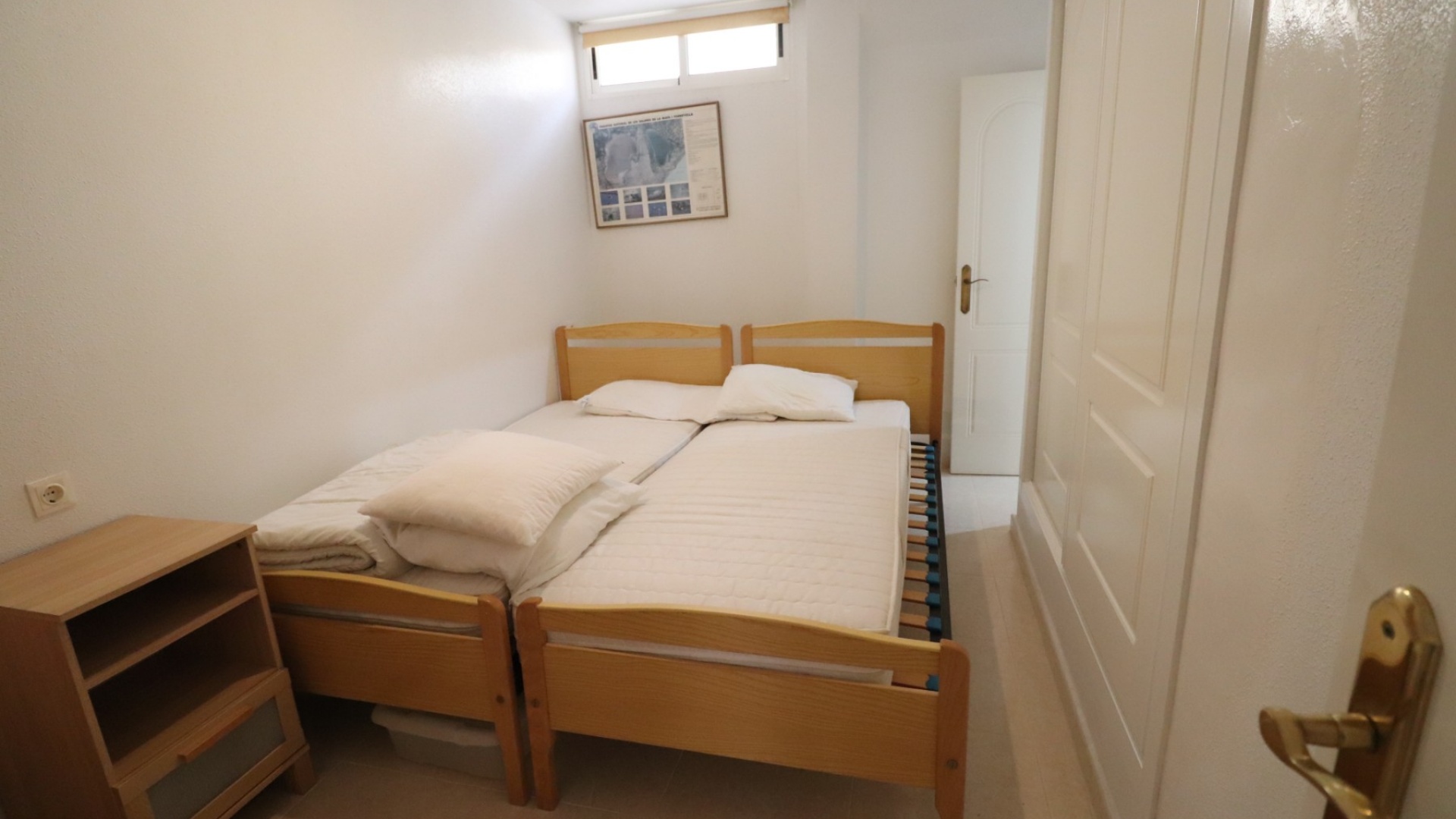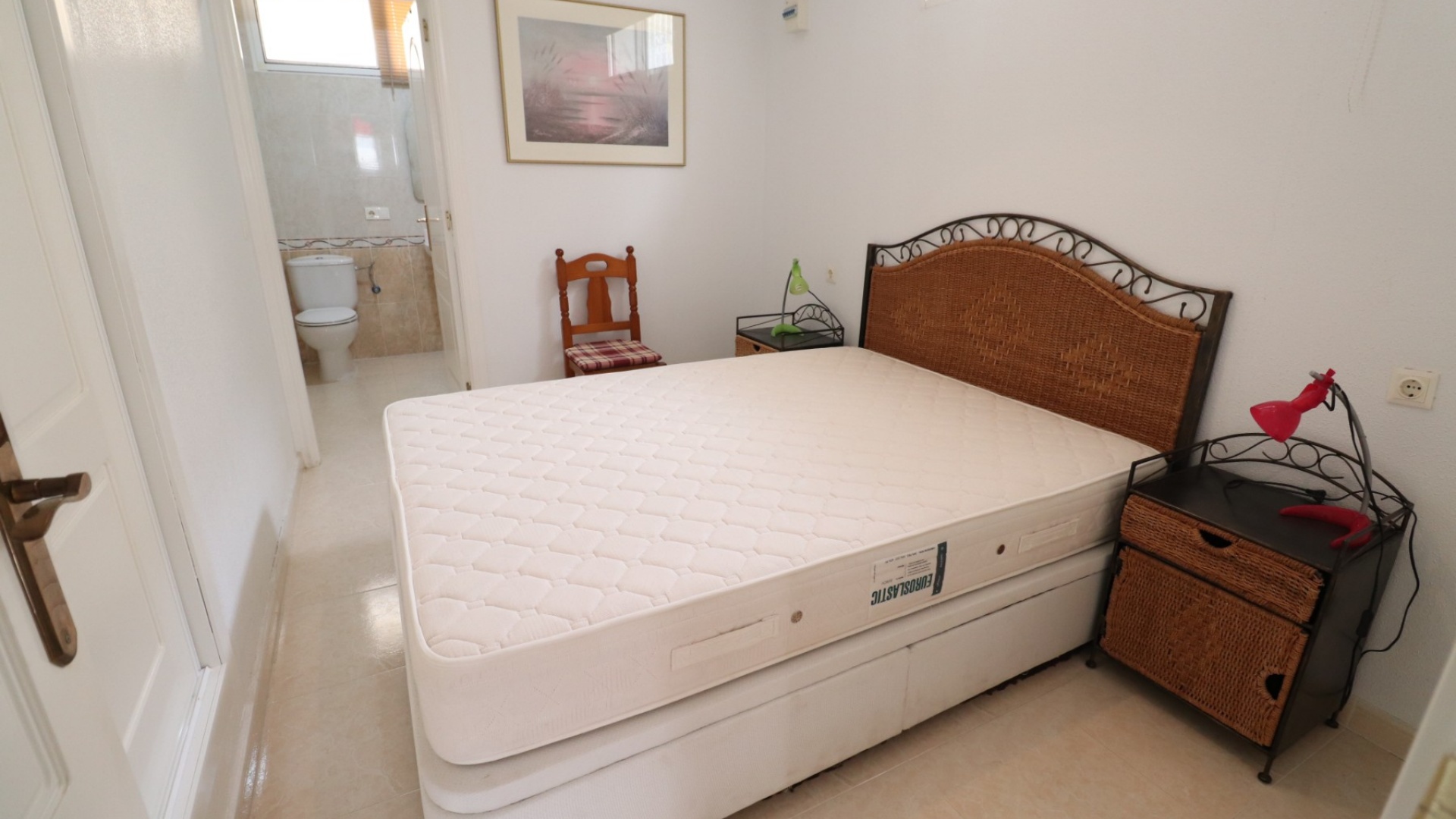 Cette villa mitoyenne de trois chambres, orientée plein sud, à Benimar I, Benijofar, est située dans un quartier très recherché de la Costa Blanca Sud, à seulement cinq minutes à pied de nombreux bars, restaurants, boutiques, d'un centre médical, d'une école, d'un terrain de sport et d'un joli parc avec lac. Les superbes plages de la région sont à seulement 10 minutes en voiture, tout comme le parcours de golf de La Marquesa, ce qui en fait un lieu idéal pour la détente et les loisirs. Avec une spacieuse superficie de 133 m² construite sur deux niveaux, cette propriété offre un espace de vie confortable et polyvalent. Le niveau principal comprend un salon/salle à manger lumineux avec doubles portes coulissantes donnant sur une terrasse partiellement couverte, la climatisation et un ventilateur de plafond. La cuisine ouverte équipée offre de nombreux rangements, tandis qu'une chambre double avec ventilateur de plafond et une salle de douche complètent cet étage. L'accès extérieur mène au sous-sol, qui dispose d'un généreux séjour ouvert avec cuisine équipée, de deux chambres doubles, d'une salle de douche et d'un WC supplémentaire, offrant un excellent logement pour les invités ou un espace de vie indépendant. Un escalier extérieur mène à un solarium privé avec un débarras, idéal pour bronzer et se détendre. Le jardin, facile d'entretien, est magnifiquement conçu avec des zones de galets et de carrelage, des espaces plantés et une bordure de conifères pour plus d'intimité. Un parking hors voirie est disponible sur le terrain, et une piscine commune bien entretenue est idéalement située à l'arrière de la propriété. Cette fantastique villa est une excellente opportunité pour ceux qui recherchent une maison spacieuse et bien située au cœur de la Costa Blanca Sud !
