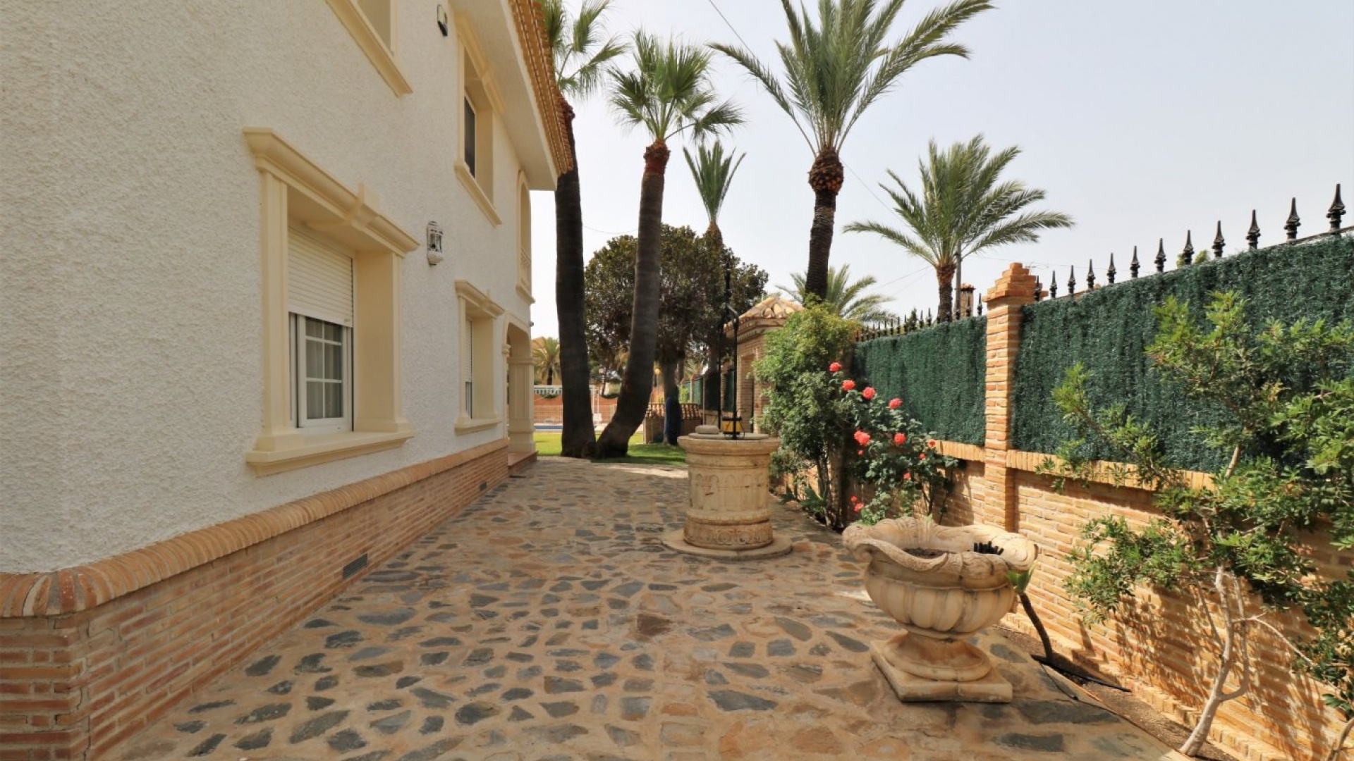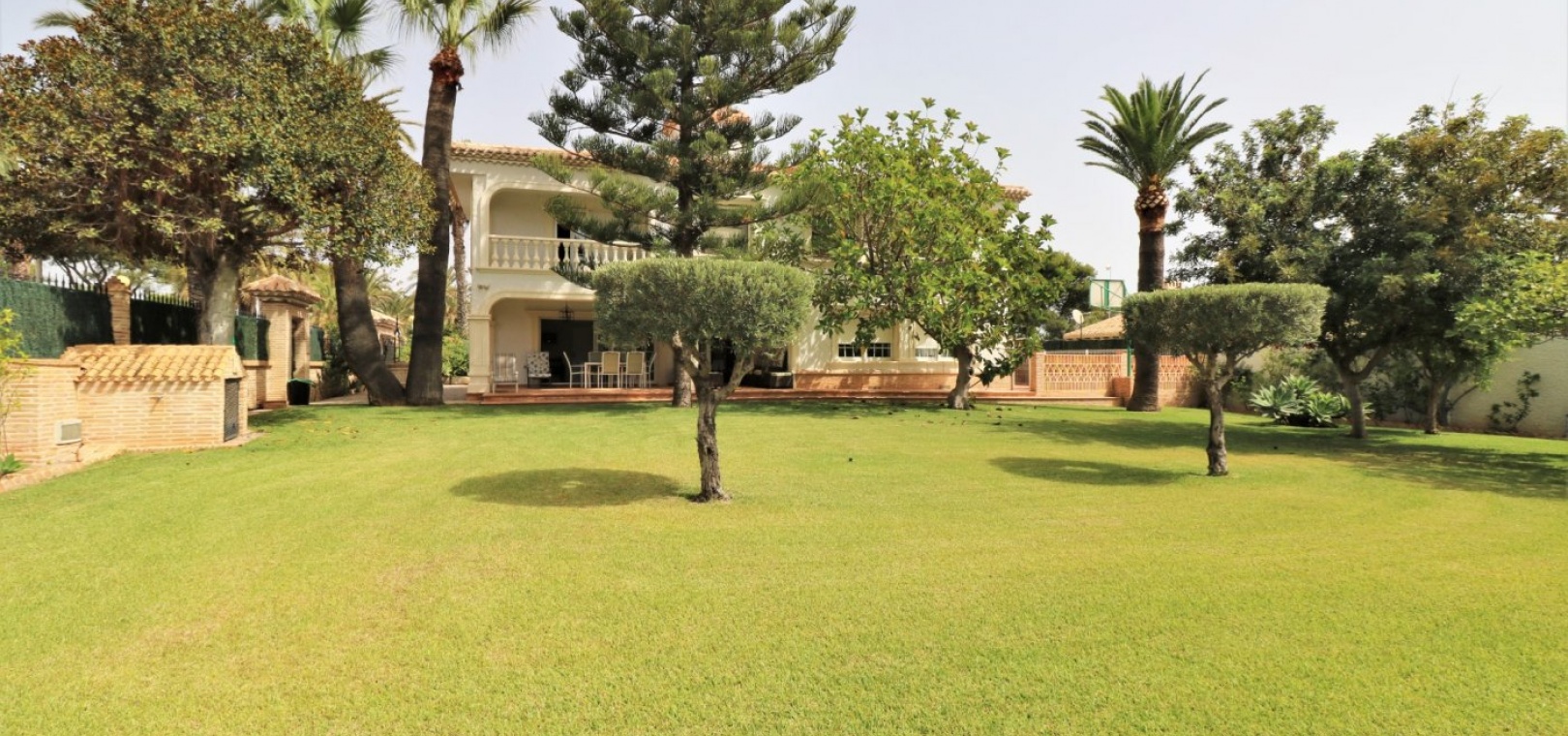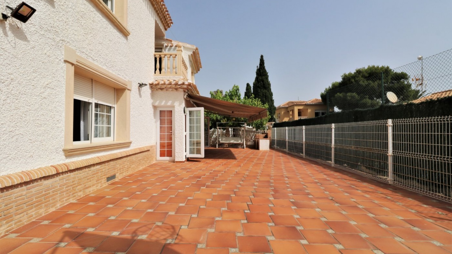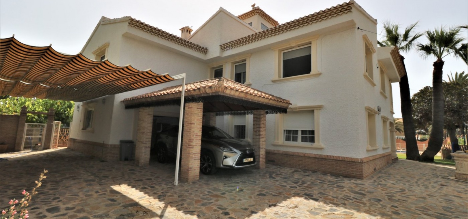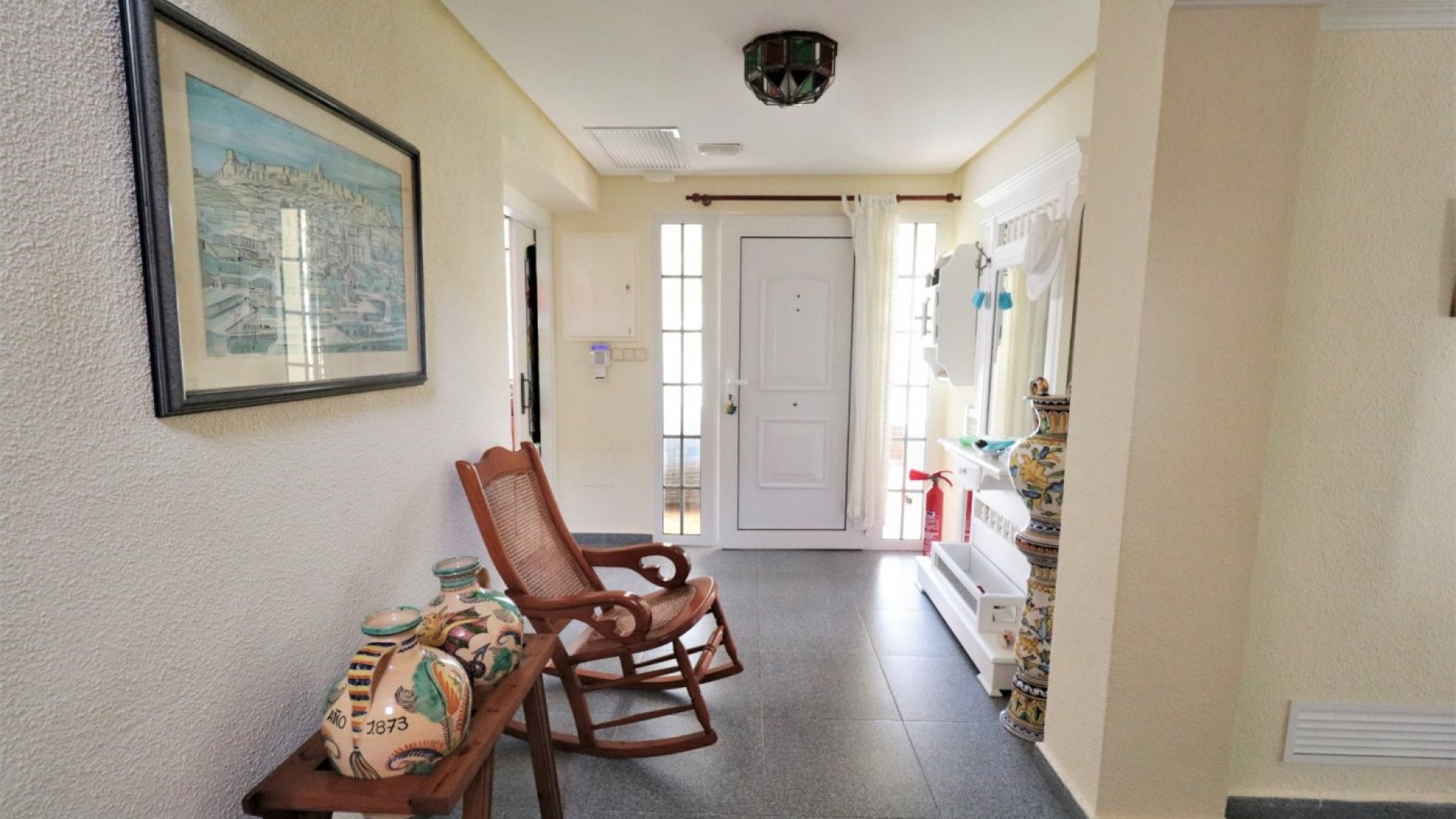 Villa à Orihuela Costa, zone Cabo Roig, 543 m2 de surface, 1550 m2 de terrain, 8 chambres doubles, 3 salles de bains, propriété en bon état, cuisine équipée, exposition sud. ~ Extras : climatisation, placards, balcon, barbecue, pompe à eau chaude et froide, chauffage, cheminée, galerie, jardin, lumineux, meubles, piscine privée, terrasse, débarras, bus, centres commerciaux, côte, golf, parcs, supermarchés, urbanisation, vue sur la mer, vue dégagée, garage inclus ~