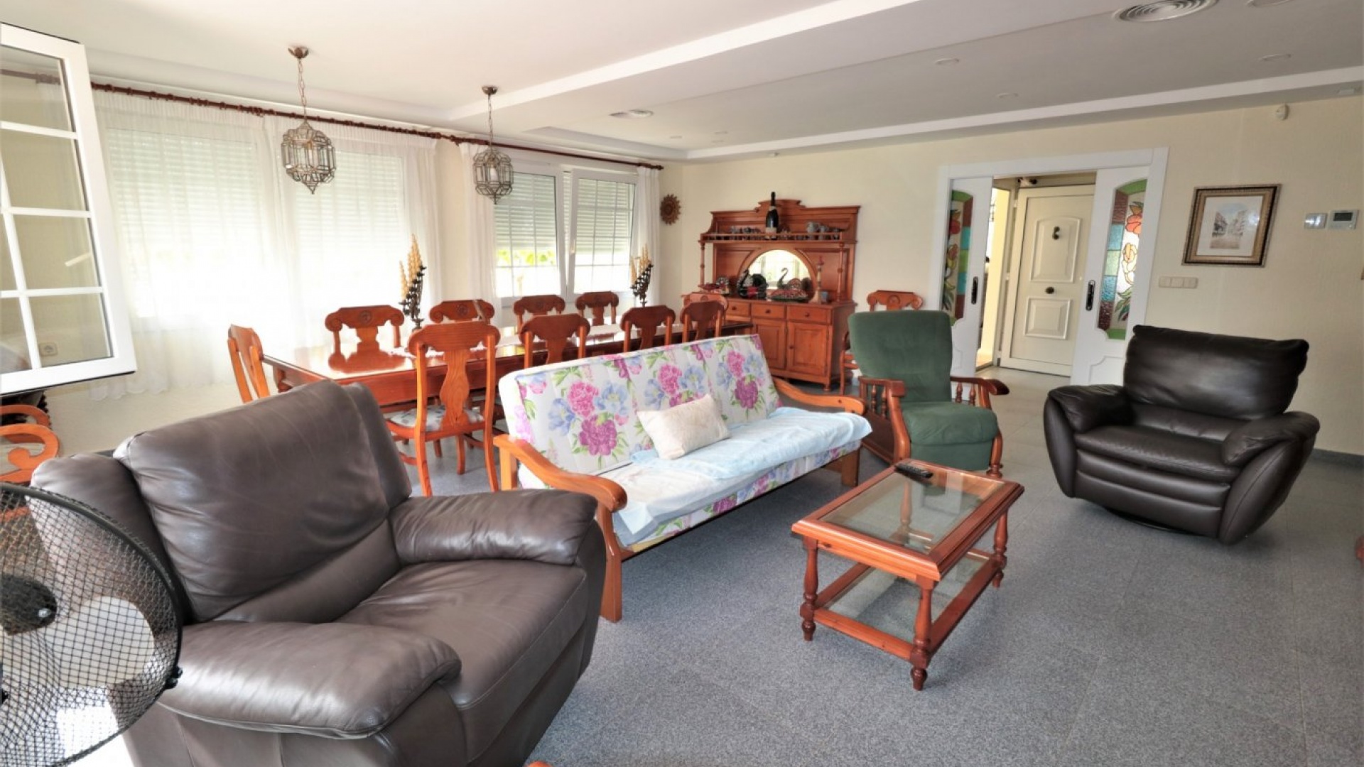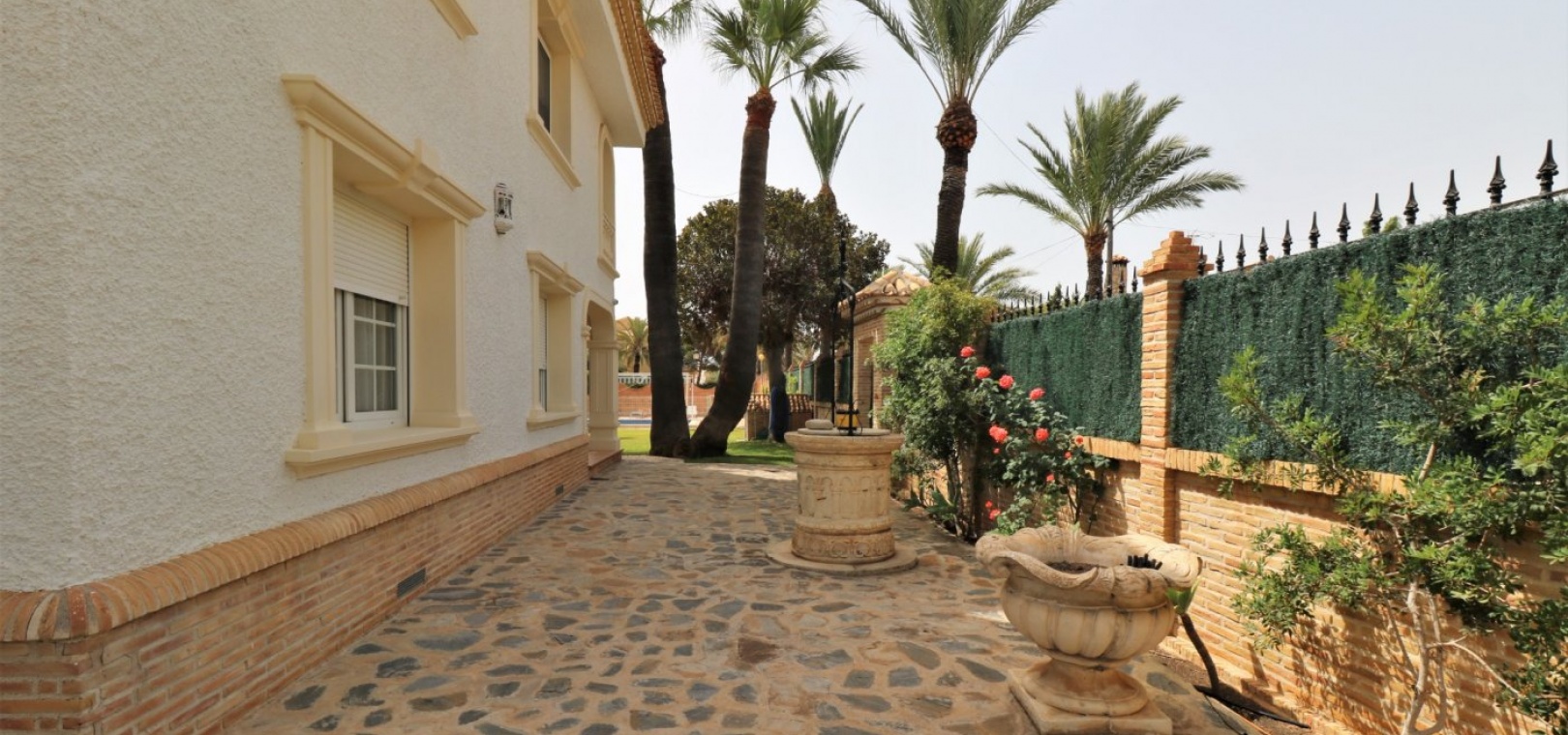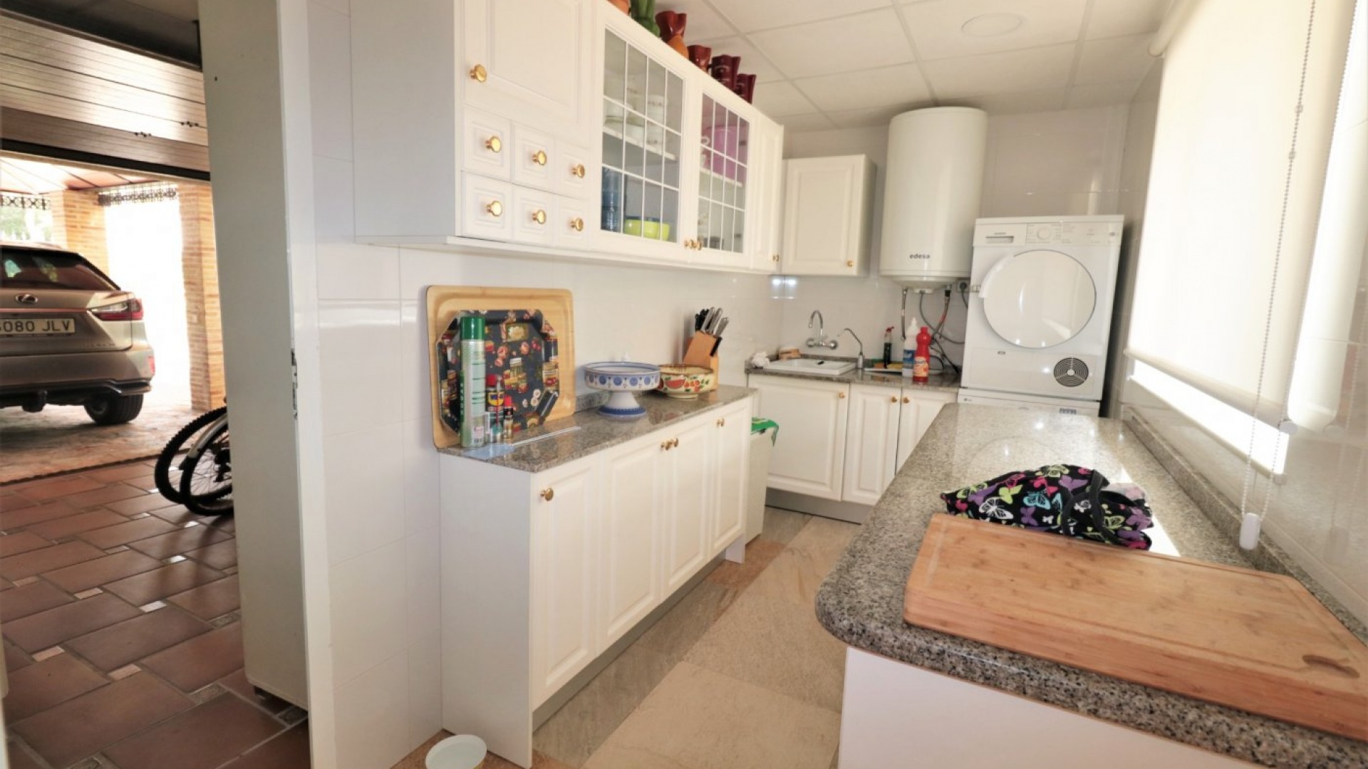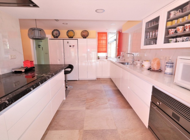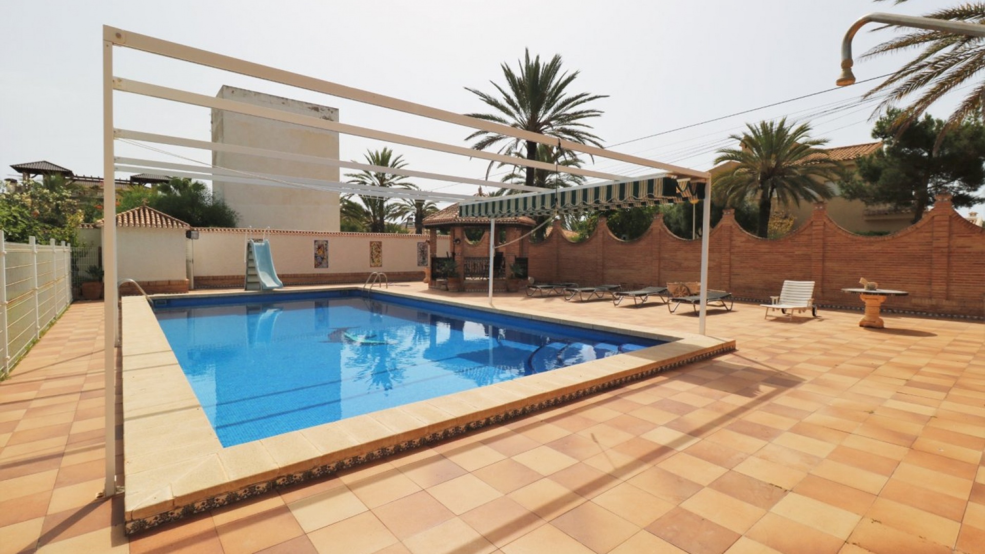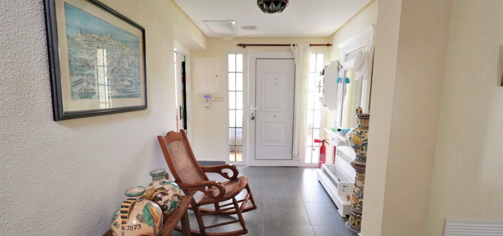 Villa à Orihuela Costa, zone Cabo Roig, 543 m2 de surface, 1550 m2 de terrain, 8 chambres doubles, 3 salles de bains, propriété en bon état, cuisine équipée, exposition sud. ~ Extras : climatisation, placards, balcon, barbecue, pompe à eau chaude et froide, chauffage, cheminée, galerie, jardin, lumineux, meubles, piscine privée, terrasse, débarras, bus, centres commerciaux, côte, golf, parcs, supermarchés, urbanisation, vue sur la mer, vue dégagée, garage inclus ~