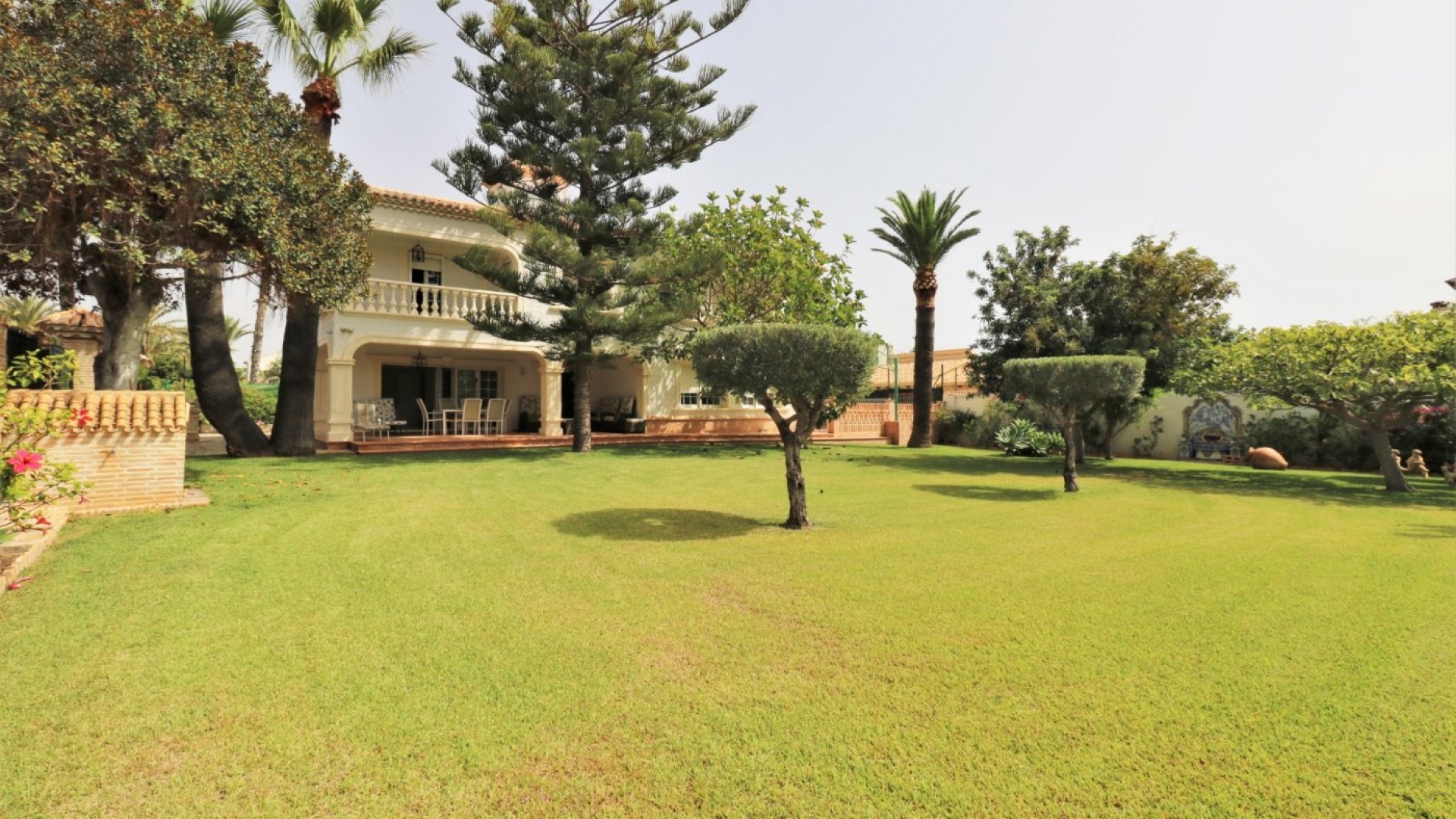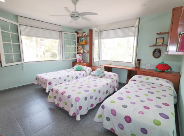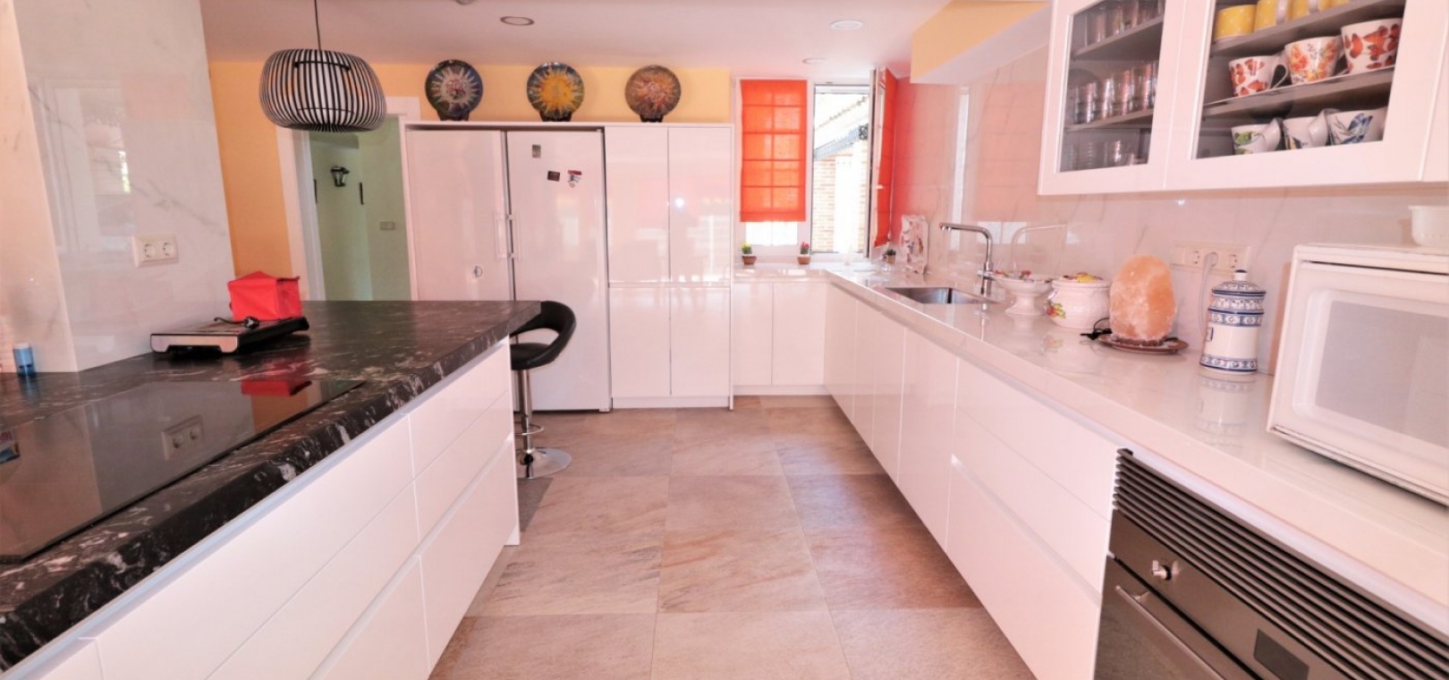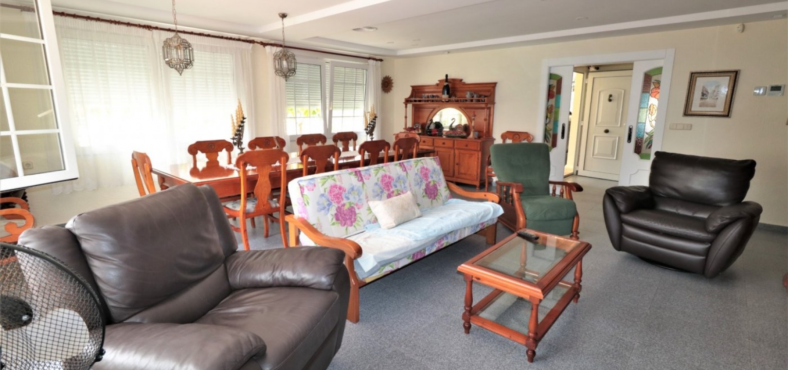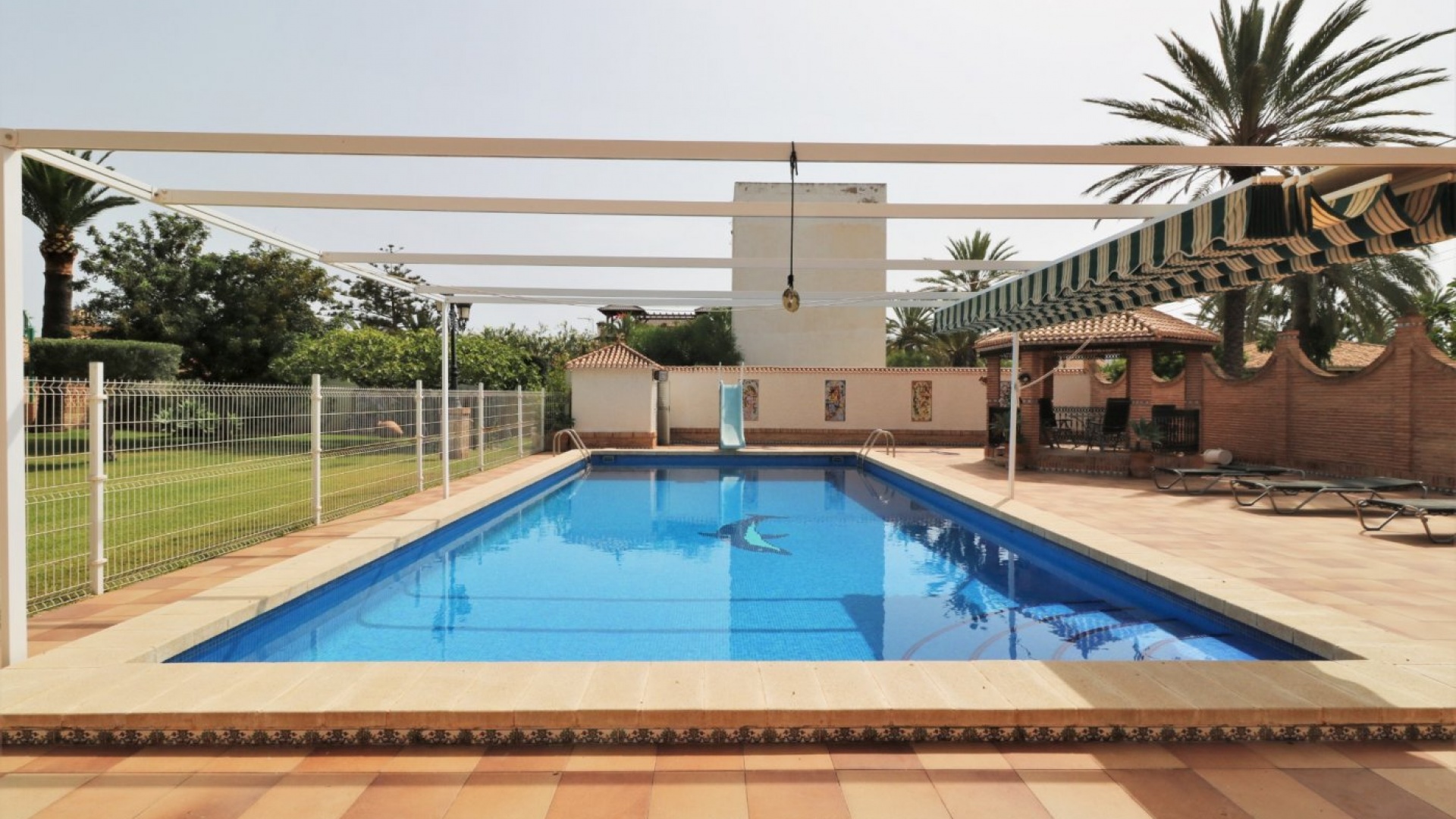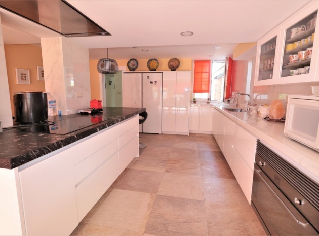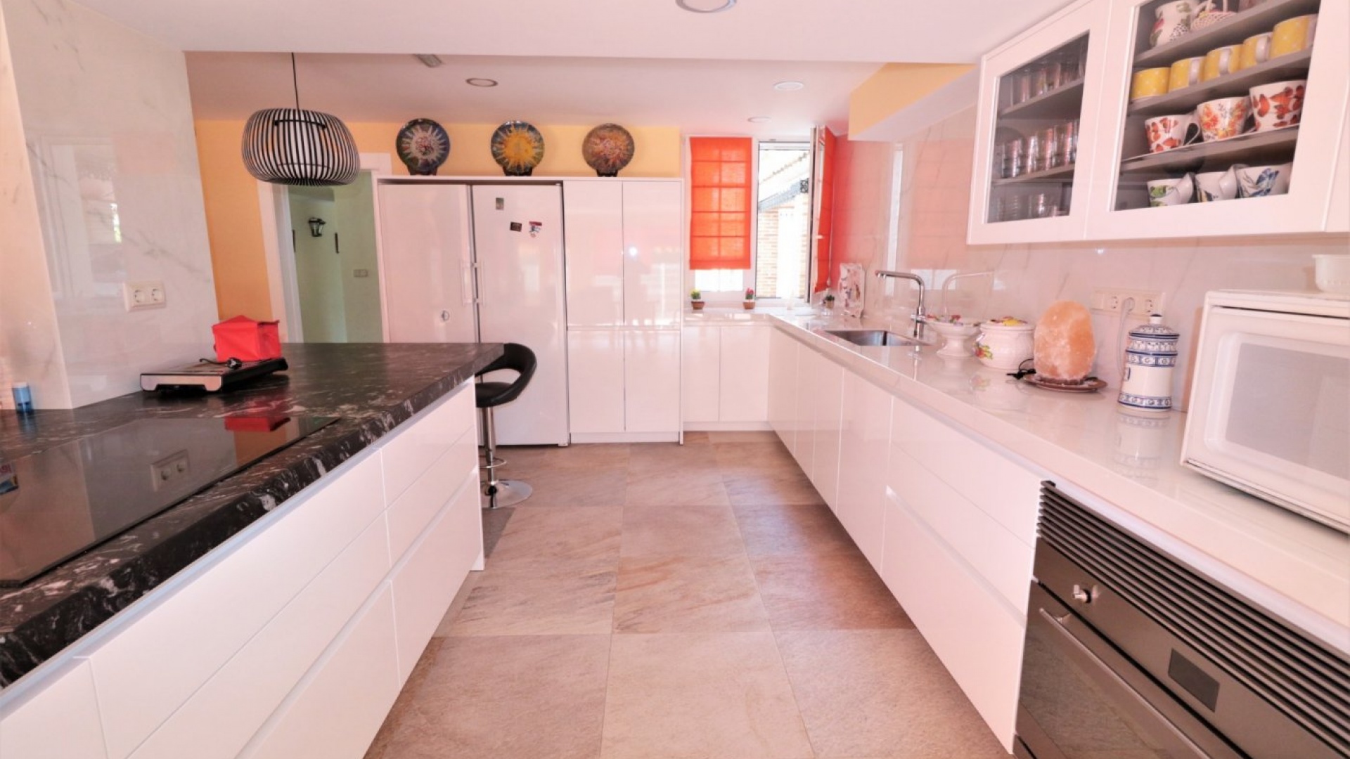 Villa à Orihuela Costa, zone Cabo Roig, 543 m2 de surface, 1550 m2 de terrain, 8 chambres doubles, 3 salles de bains, propriété en bon état, cuisine équipée, exposition sud. ~ Extras : climatisation, placards, balcon, barbecue, pompe à eau chaude et froide, chauffage, cheminée, galerie, jardin, lumineux, meubles, piscine privée, terrasse, débarras, bus, centres commerciaux, côte, golf, parcs, supermarchés, urbanisation, vue sur la mer, vue dégagée, garage inclus ~