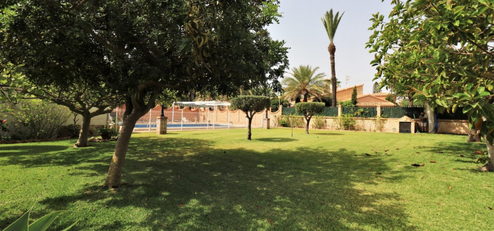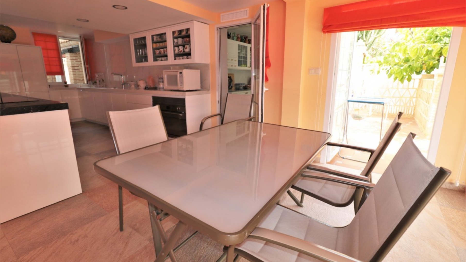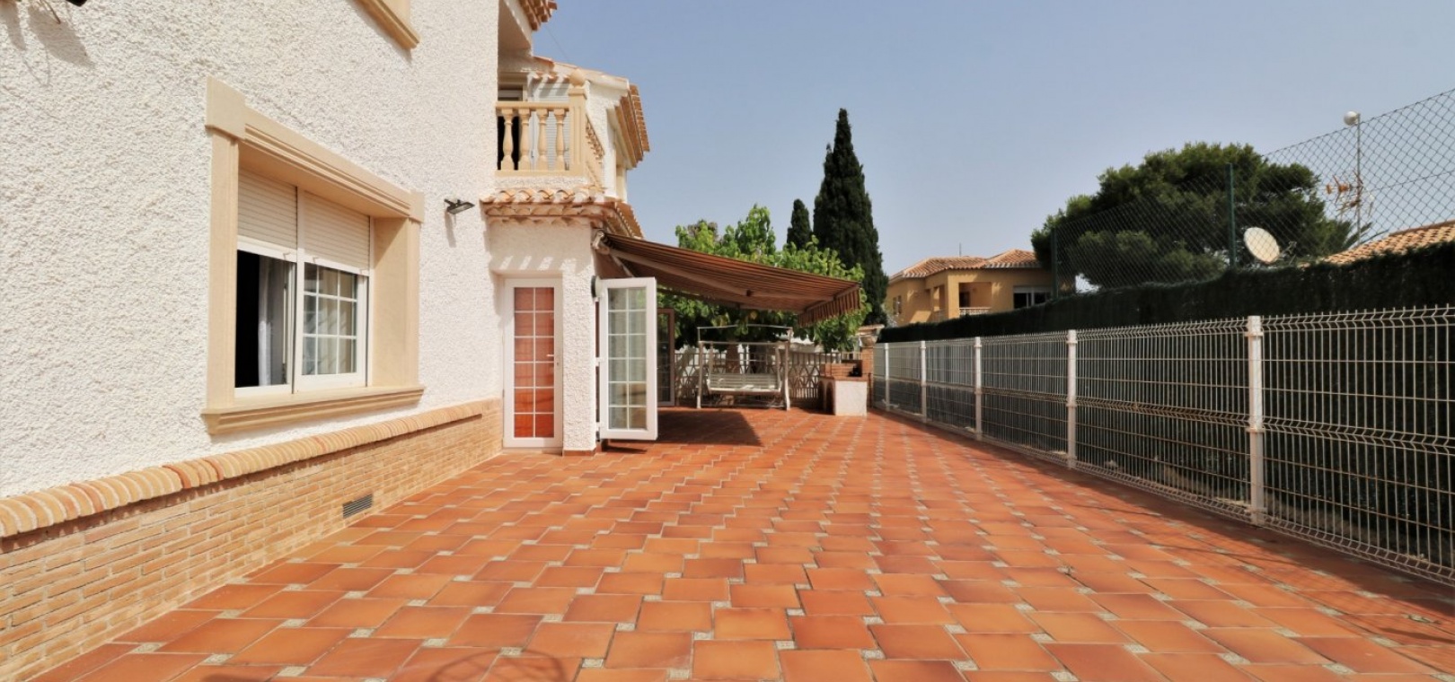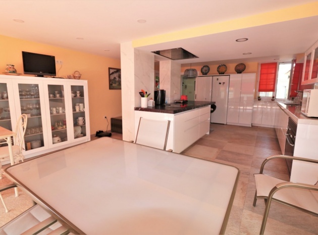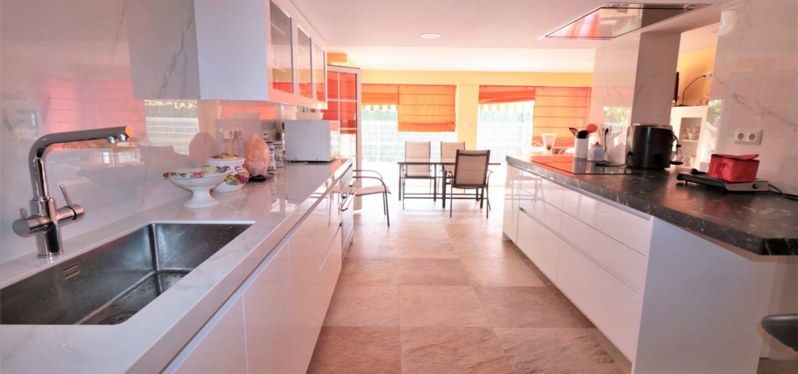 Villa à Orihuela Costa, zone Cabo Roig, 543 m2 de surface, 1550 m2 de terrain, 8 chambres doubles, 3 salles de bains, propriété en bon état, cuisine équipée, exposition sud. ~ Extras : climatisation, placards, balcon, barbecue, pompe à eau chaude et froide, chauffage, cheminée, galerie, jardin, lumineux, meubles, piscine privée, terrasse, débarras, bus, centres commerciaux, côte, golf, parcs, supermarchés, urbanisation, vue sur la mer, vue dégagée, garage inclus ~