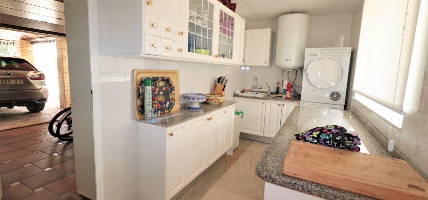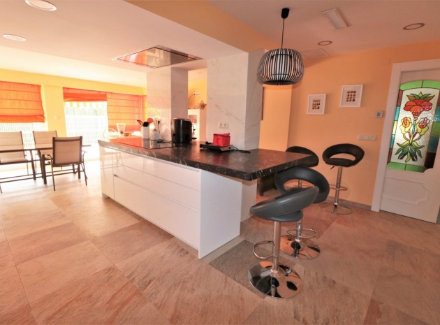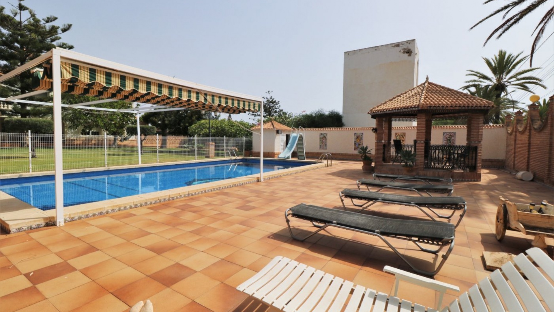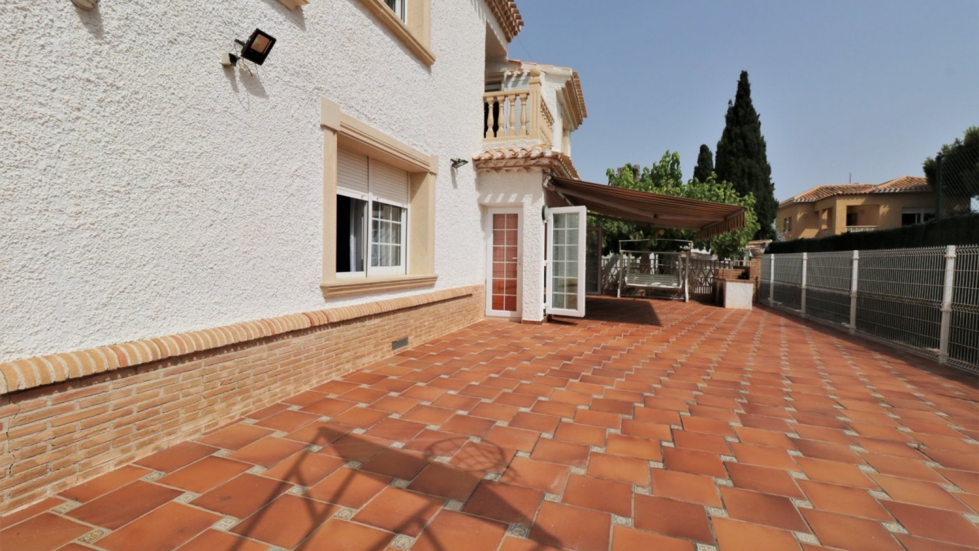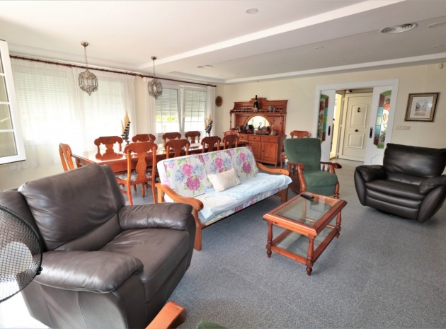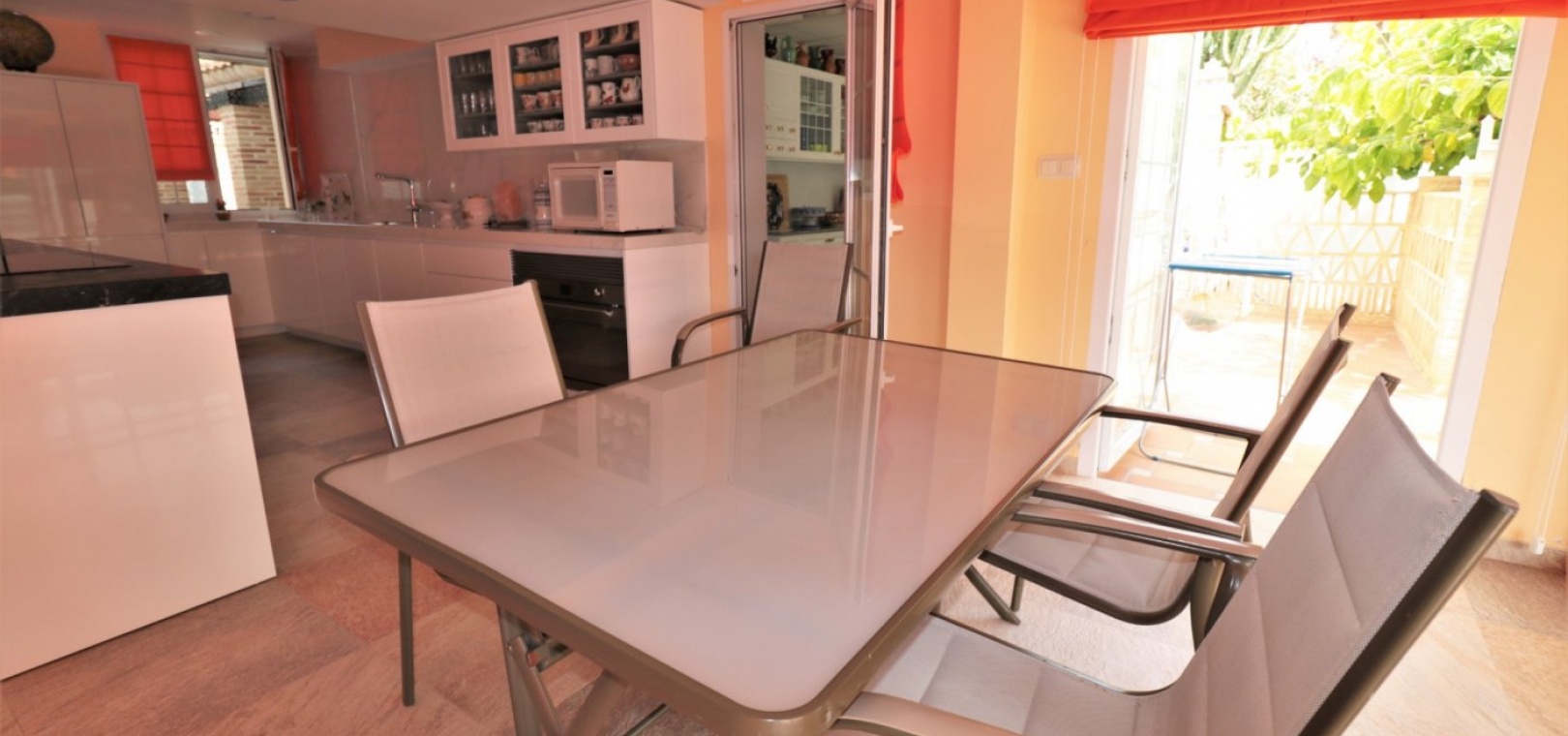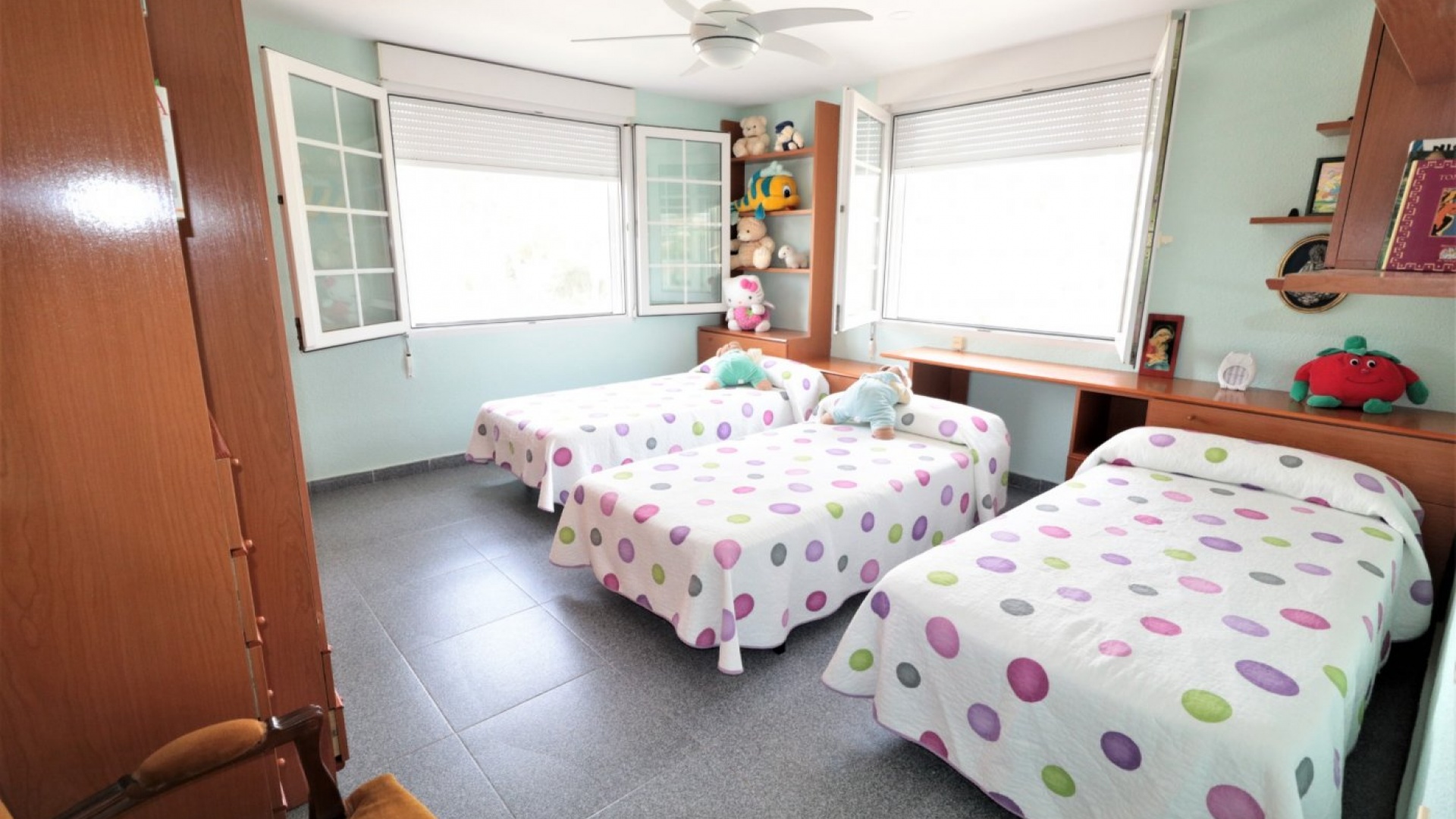 Villa à Orihuela Costa, zone Cabo Roig, 543 m2 de surface, 1550 m2 de terrain, 8 chambres doubles, 3 salles de bains, propriété en bon état, cuisine équipée, exposition sud. ~ Extras : climatisation, placards, balcon, barbecue, pompe à eau chaude et froide, chauffage, cheminée, galerie, jardin, lumineux, meubles, piscine privée, terrasse, débarras, bus, centres commerciaux, côte, golf, parcs, supermarchés, urbanisation, vue sur la mer, vue dégagée, garage inclus ~