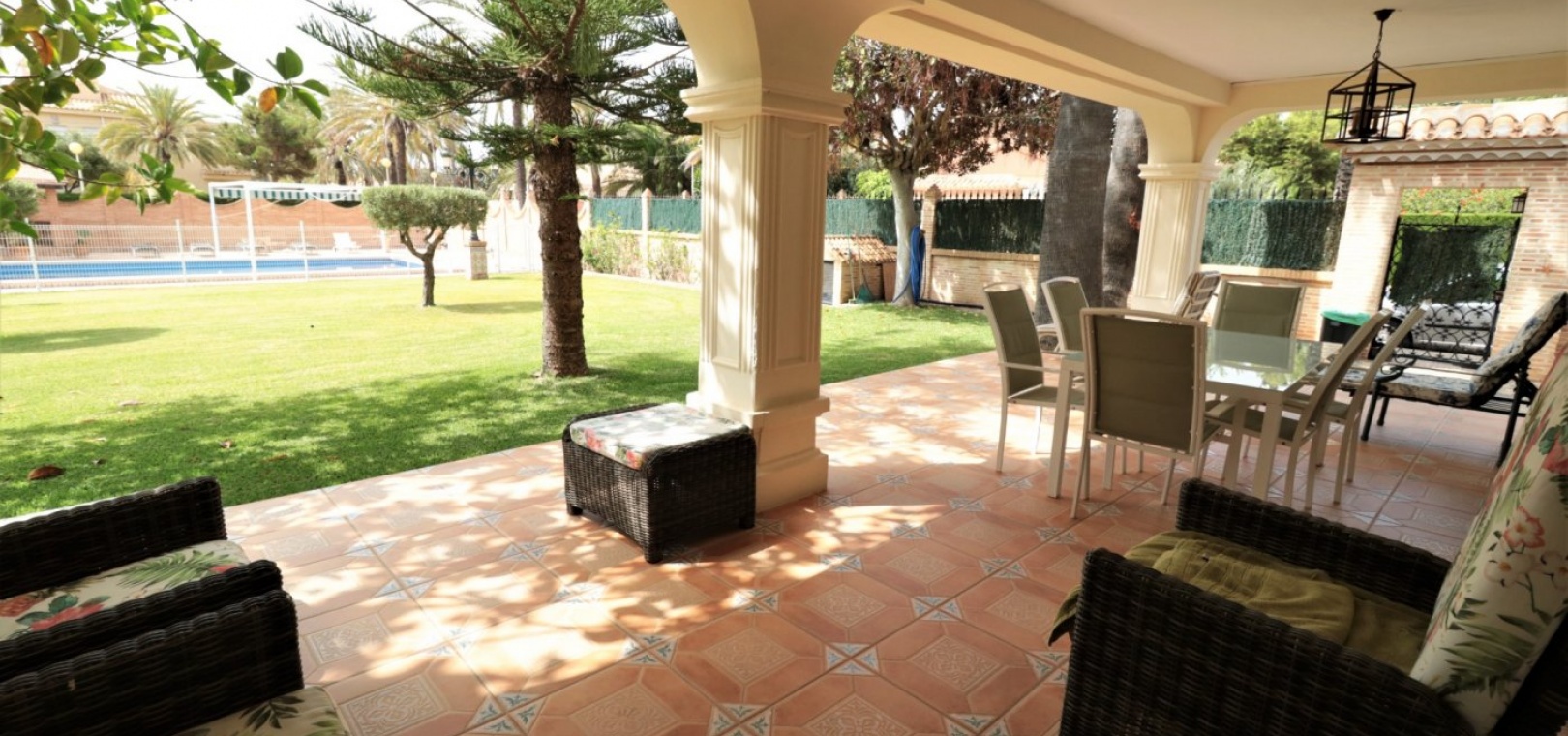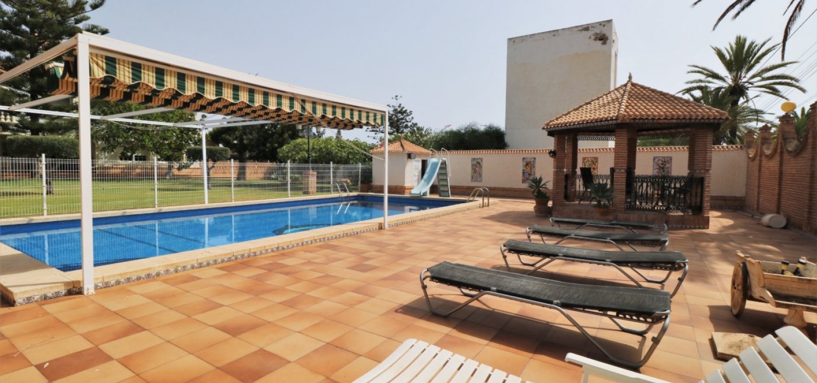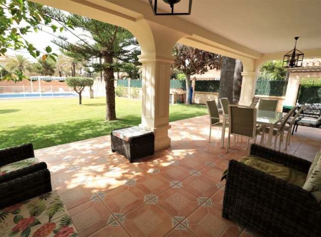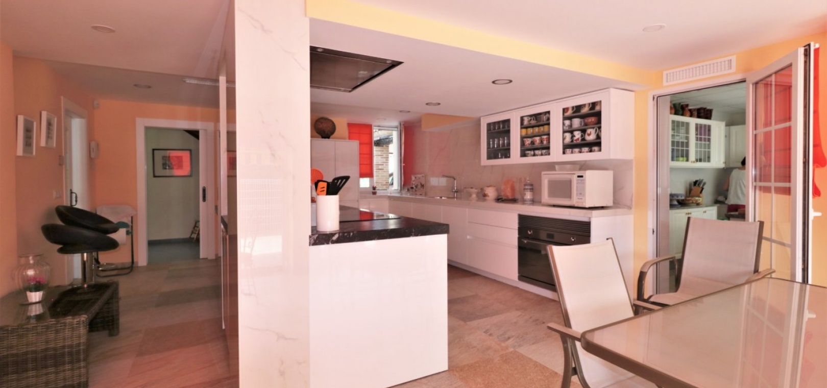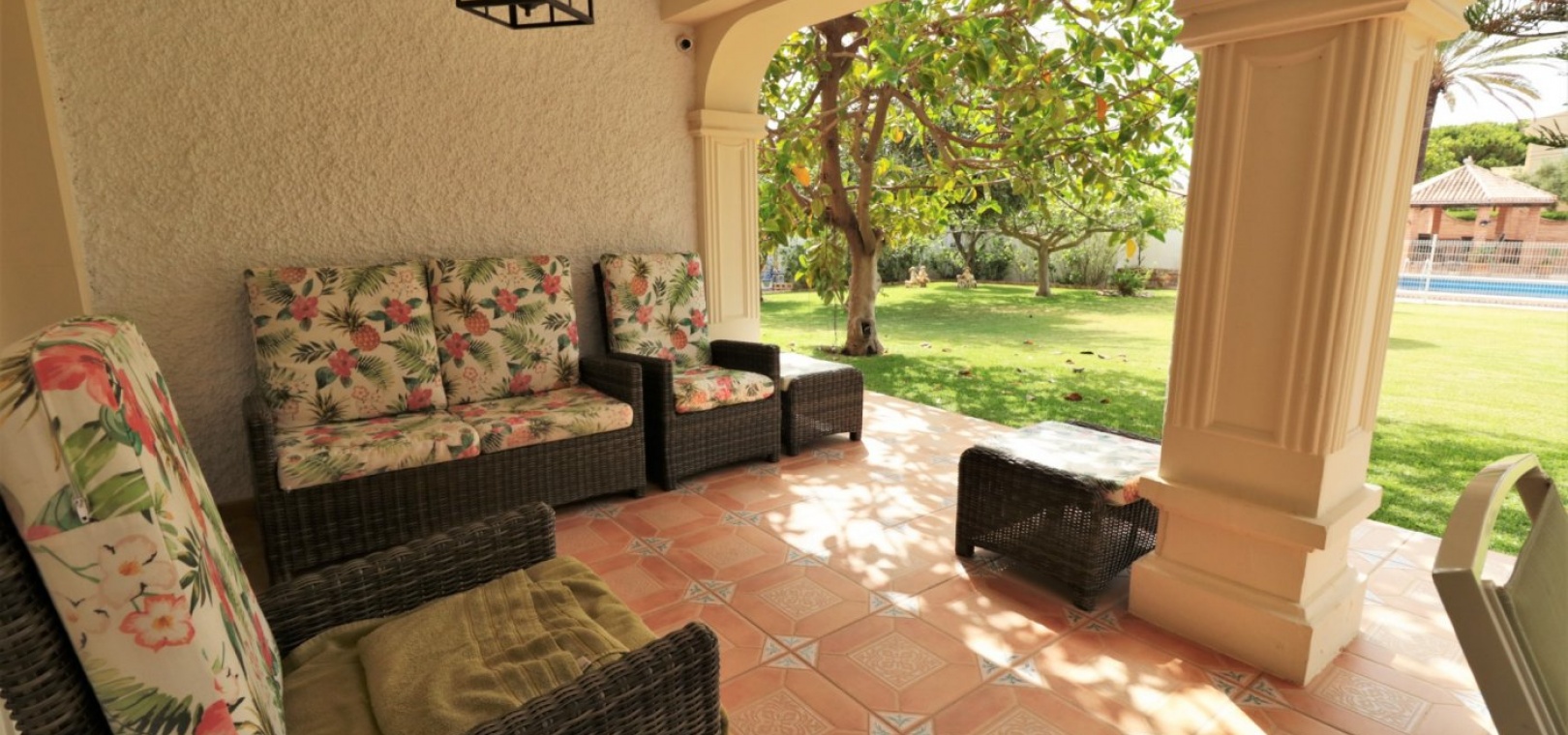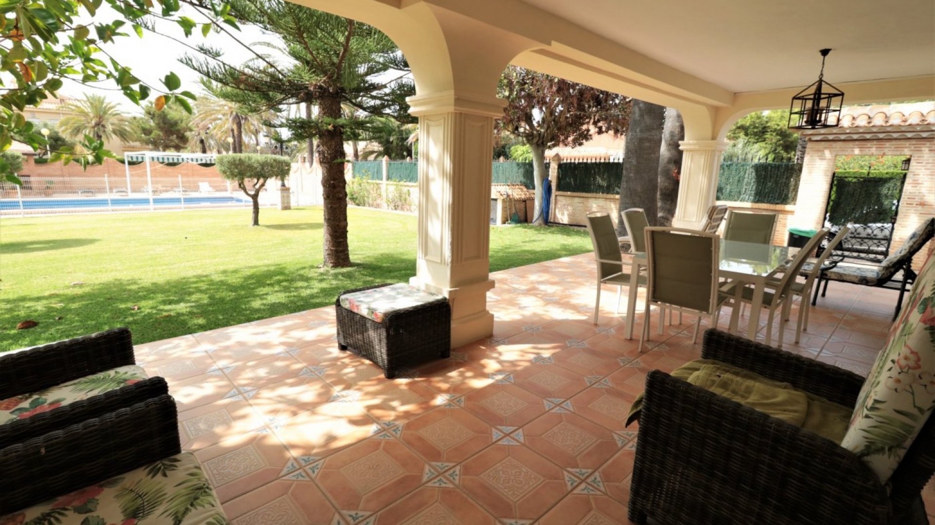 Villa à Orihuela Costa, zone Cabo Roig, 543 m2 de surface, 1550 m2 de terrain, 8 chambres doubles, 3 salles de bains, propriété en bon état, cuisine équipée, exposition sud. ~ Extras : climatisation, placards, balcon, barbecue, pompe à eau chaude et froide, chauffage, cheminée, galerie, jardin, lumineux, meubles, piscine privée, terrasse, débarras, bus, centres commerciaux, côte, golf, parcs, supermarchés, urbanisation, vue sur la mer, vue dégagée, garage inclus ~