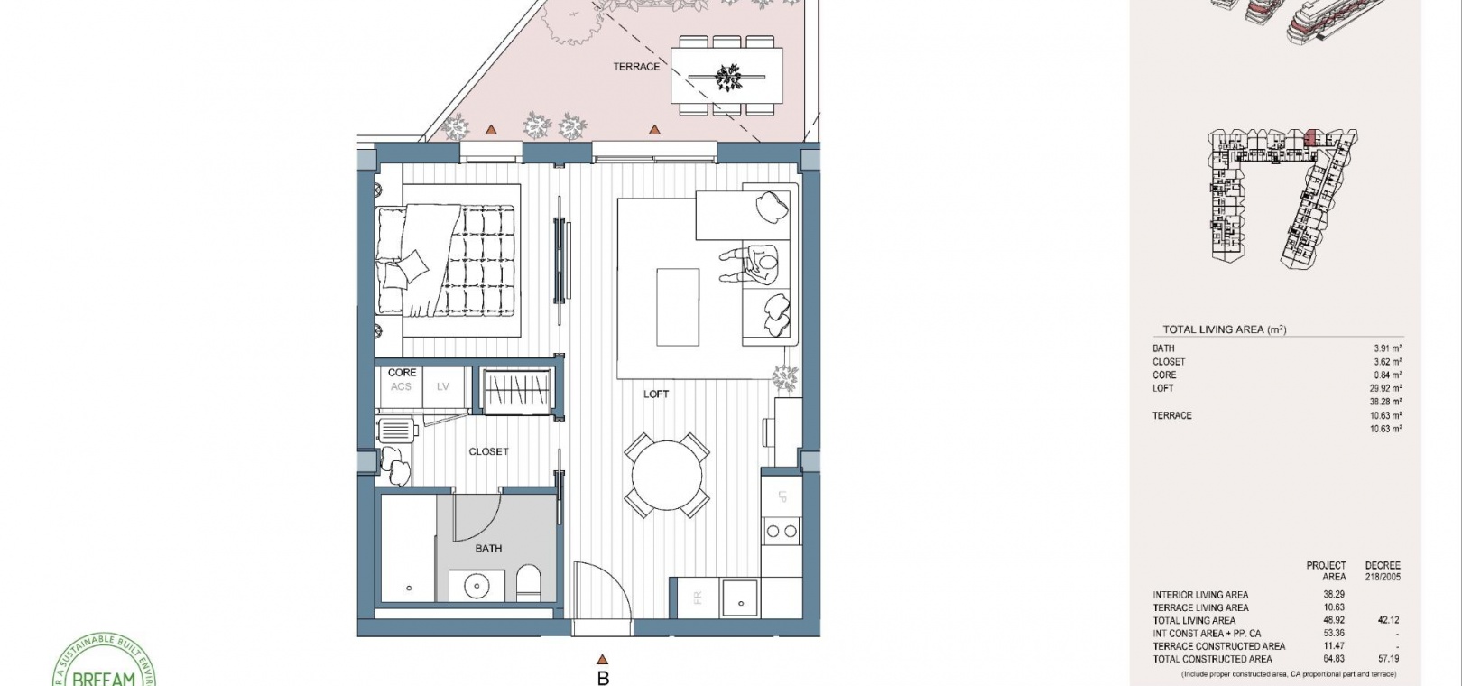 Espace de construction utilisable : 42 m².