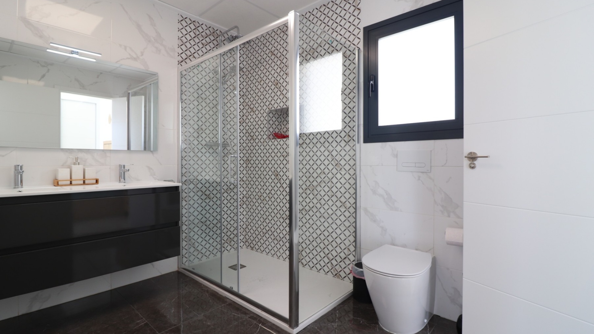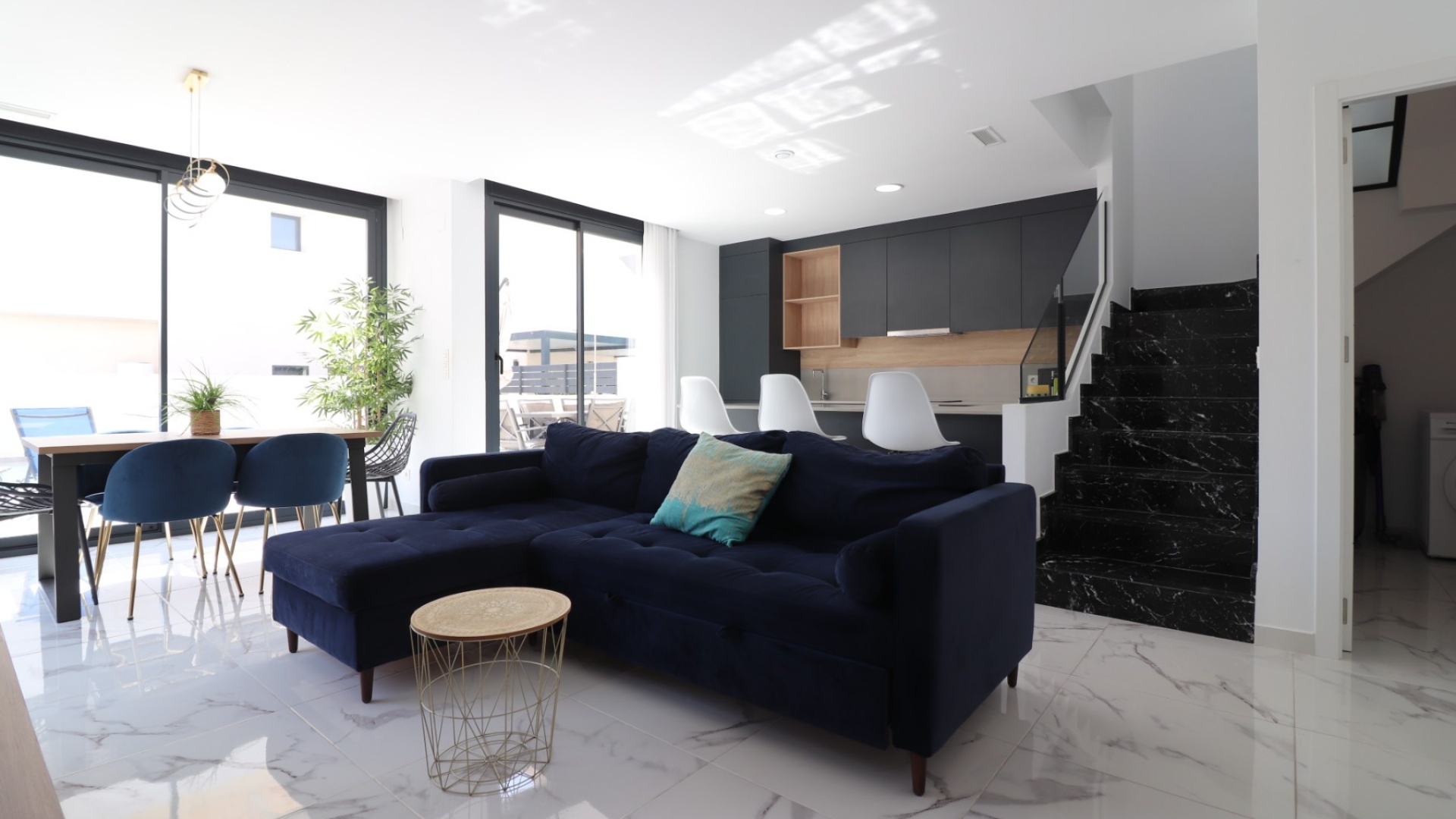 Cette villa individuelle de trois chambres, orientée plein sud, à La Herrada, Los Montesinos, est située à 5 minutes à pied des commodités et des installations de l'urbanisation elle-même et à seulement 15 minutes en voiture de la plage. La villa comprend deux salles de douche, un vestiaire et une cuisine ouverte. L'immense solarium sur le toit offre une vue imprenable sur le lac. Les caractéristiques supplémentaires comprennent des volets électriques, la climatisation dans tout le bâtiment et des armoires encastrées dans les trois chambres, deux chambres ayant une salle de bains privative. À l'extérieur, la propriété dispose d'un jardin privé carrelé et gazonné, d'une piscine privée de 6,5 x 3 et d'un patio ombragé à côté de la piscine, parfait pour la détente. Un parking hors route est disponible et deux des chambres donnent sur une terrasse ombragée de belle taille avec une légère vue sur le lac au premier étage. Située sur la Costa Blanca Sud, cette villa moderne, construite en 2021, offre des finitions de qualité, une superficie de 135 m2 sur un terrain de 213 m2 et n'a pas de frais de communauté. CETTE PROPRIÉTÉ BÉNÉFICIE ÉGALEMENT D'UNE LICENCE TOURISTIQUE !