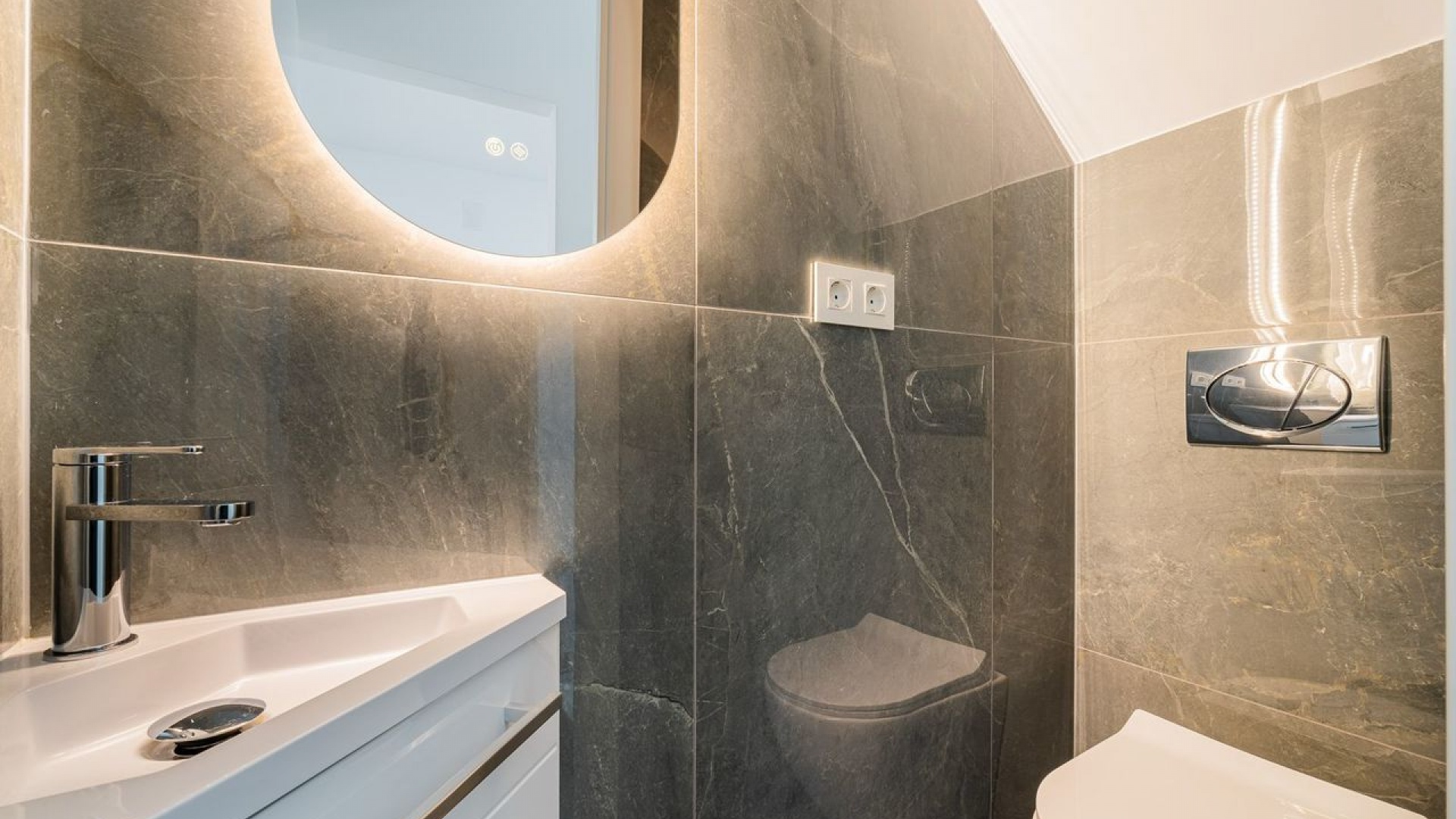 Caractéristiques principales • Maison spacieuse – 100 m² sur trois étages bien organisés • Espace de vie lumineux – un grand espace rempli de lumière naturelle • Cuisine indépendante – entièrement équipée avec des appareils modernes • Trois chambres, chacune avec une salle de bain privée – idéale pour le confort et l'intimité • Terrasses – deux chambres au premier étage ont un accès direct à une terrasse privée • Charmant patio avant – un endroit parfait pour se détendre en plein air • Climatisation dans toutes les pièces – pour un confort tout au long de l’année • Fenêtres à double vitrage – excellente isolation pour une vie chaleureuse et tranquille • Finitions de haute qualité et design moderne – prêt à emménager sans travaux supplémentaires