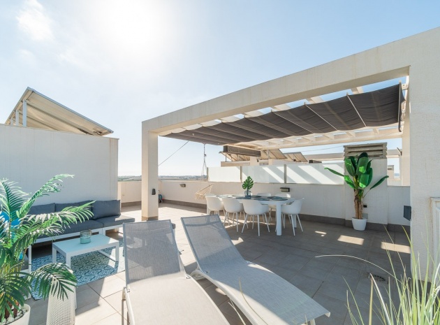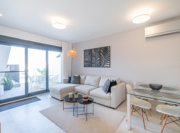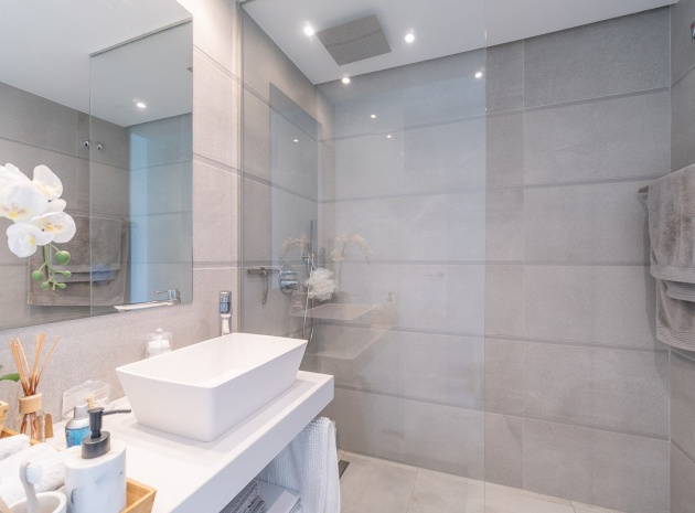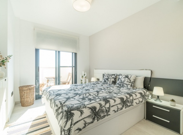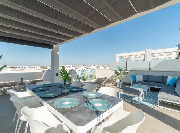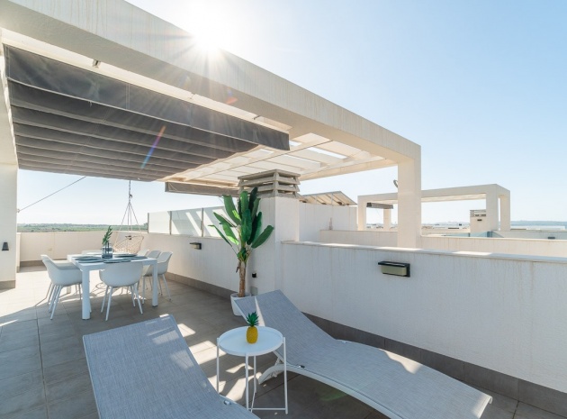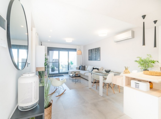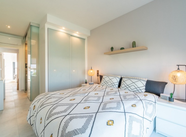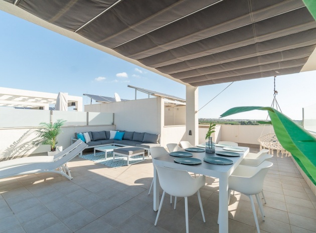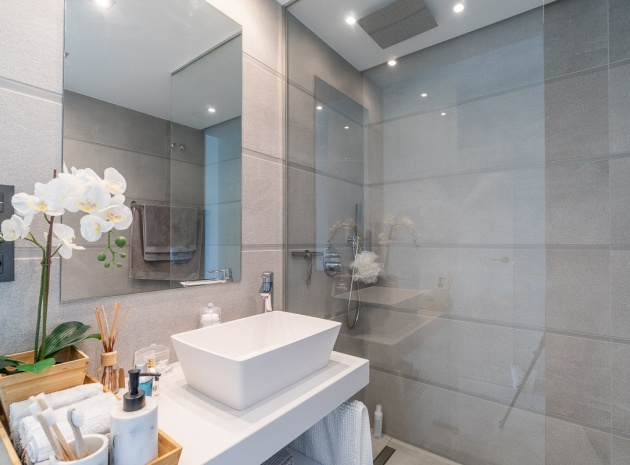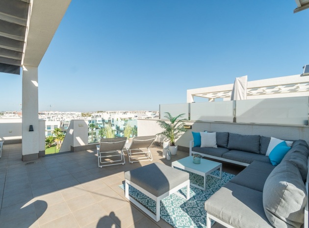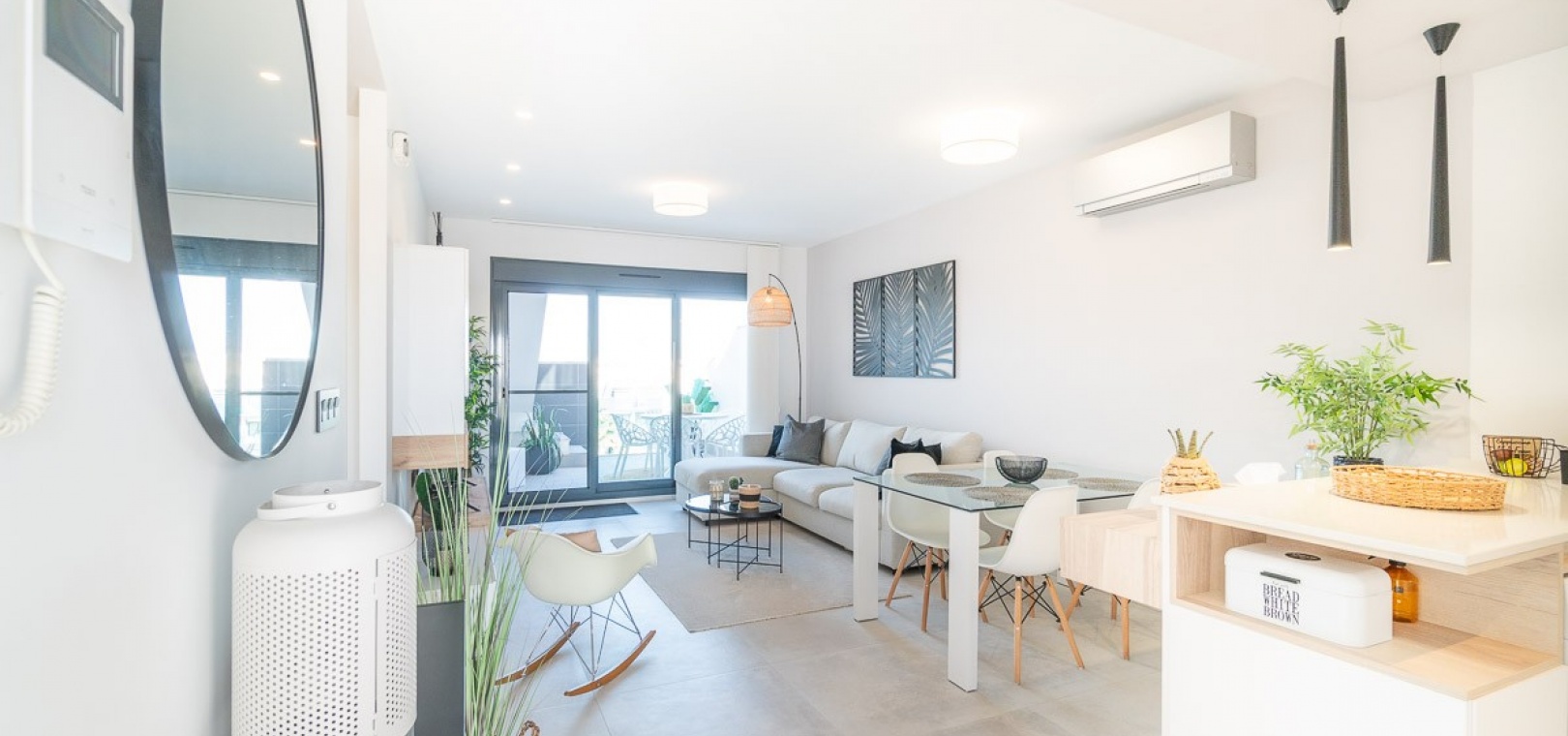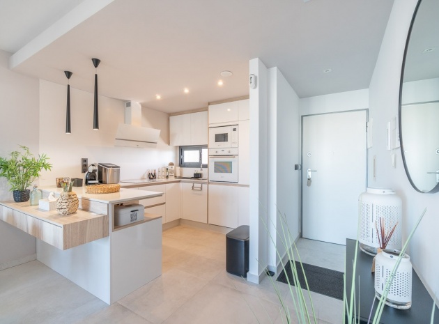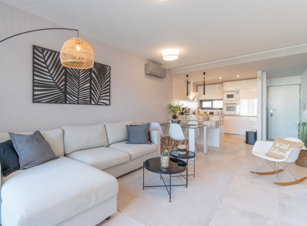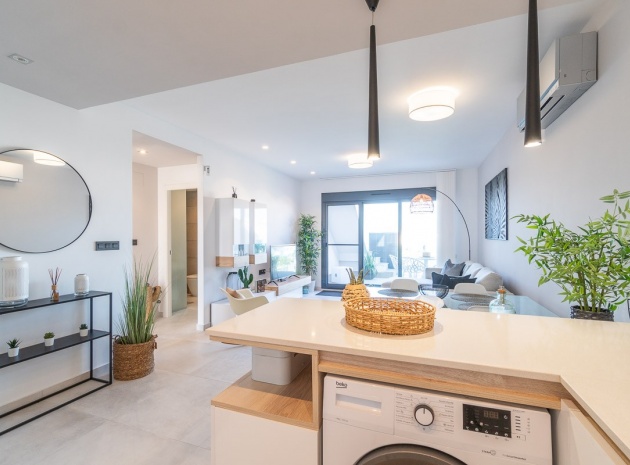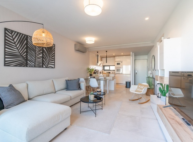 L'appartement est entièrement meublé dans un style contemporain, avec des meubles aux lignes épurées et des tons neutres qui apportent élégance et fonctionnalité. Depuis le salon, vous pouvez accéder à une terrasse privée, idéale pour profiter du climat méditerranéen et de la vue sur les espaces communs. De plus, la propriété dispose d'un solarium exclusif à l'étage supérieur, offrant un espace extérieur supplémentaire parfait pour se détendre, bronzer ou profiter de repas en plein air en toute intimité.