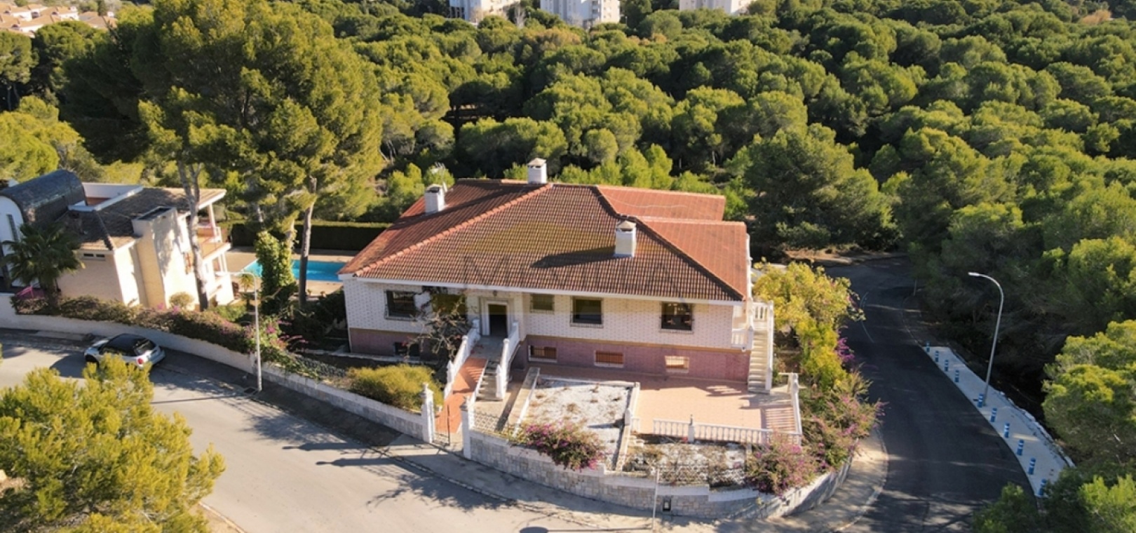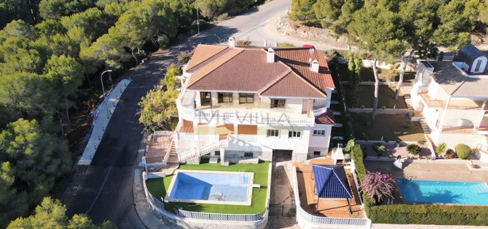 Maison individuelle aux dimensions généreuses, avec un peu plus de 790 m² de surface construite et un terrain de 1018 m², située dans l'une des plus belles enclaves du sud de la Costa Blanca, entourée d'une magnifique forêt de conifères centenaires et offrant une vue sur la mer Méditerranée. Cette villa dispose de 10 chambres, toutes spacieuses et presque toutes avec salle de bains privative, dont 9 salles de bains. Au rez-de-chaussée, un grand salon avec cuisine ouverte, une grande cheminée et une vue sur la mer et la forêt environnante, ainsi qu'une belle terrasse tout autour de la façade. À l'entresol, un grand porche couvert est idéal pour les fêtes privées et les célébrations familiales. Juste à côté, une autre salle à manger avec une grande cuisine et une belle cheminée entoure la propriété. Un magnifique jardin en terrasses entoure également la propriété, où se trouvent également un magnifique gazebo en bois et une spectaculaire piscine privée de plus de 65 m², le tout avec une vue magnifique. La maison dispose d'un sous-sol, d'un débarras pour le bois, d'un garage privé pouvant accueillir plusieurs véhicules et de plusieurs pièces de rangement. CAMPOAMOR. Campoamor est l'un des quartiers d'Orihuela Costa où vous trouverez des villas de luxe proches de la mer et de la plage. Avec ses jardins soignés et son atmosphère exclusive et relaxante, vous pourrez pratiquer l'équitation dans les clubs de Campoamor, le tennis, le golf et le football dans les centres sportifs professionnels de Campoamor, Cabo Roig ou Playa Flamenca. De plus, les clubs sportifs de Cabo Roig et Campoamor permettent de pratiquer des sports nautiques pratiquement toute l'année. Le climat privilégié de la région assure une température moyenne de 20 °C et plus de 300 jours de soleil par an. Côté loisirs, vous trouverez facilement de nombreux bars et restaurants de qualité, ainsi que des boutiques et des centres commerciaux, dont celui de La Zenia Boulevard, avec ses plus de 150 boutiques, est considéré comme le plus grand centre commercial de la province.