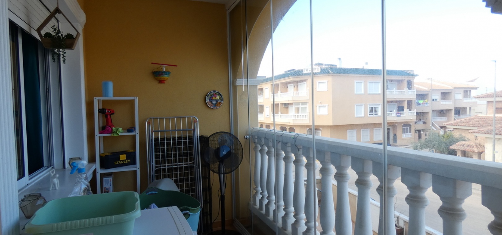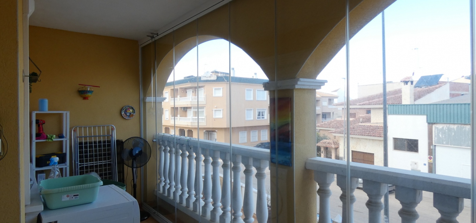 Ce superbe appartement est situé dans la résidence sécurisée et fermée Fontana II, à Algorfa, ville espagnole située sur la Costa Blanca Sud. Quartier prisé pour la proximité des commodités, les fêtes traditionnelles espagnoles en été et les événements tout au long de l'année, ainsi que les marchés locaux de produits frais du samedi et du dimanche. Cet appartement exceptionnel comprend également un garage souterrain et bénéficie de la climatisation réversible. En entrant, vous trouverez une cuisine américaine et une buanderie séparée, donnant sur le salon et la salle à manger décloisonnés. Ce dernier donne accès au balcon vitré, permettant de profiter d'un espace plus grand pour les mois les plus froids et de s'ouvrir complètement pour les mois les plus chauds. Deux grandes chambres et une salle de bains familiale. La résidence comprend un ascenseur desservant le solarium commun et une superbe piscine commune. L'appartement est situé à quelques pas de la place du village, avec ses bars, restaurants et toutes les commodités d'Algorfa. Grand centre sportif juste en face de la route, avec accès à la piscine commune du village, aux courts de tennis et de padel, à l'aire de jeux pour enfants et à d'autres installations sportives... Il est situé à seulement 15 minutes en voiture des belles plages de Guardarmar. À seulement 40 minutes en voiture de l'aéroport d'Alicante.