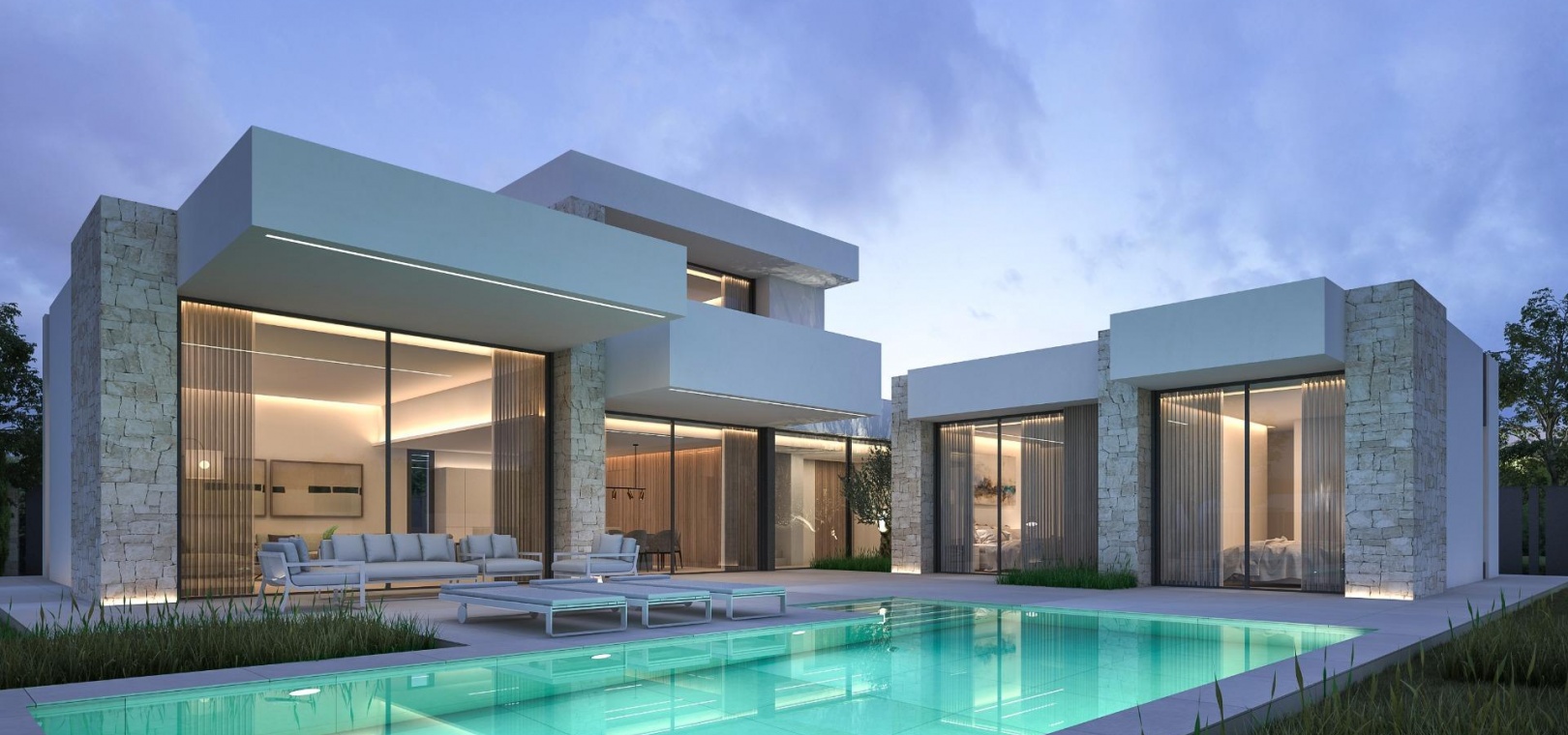 Découvrez ces villas modernes exclusives à Dénia, conçues pour offrir confort, style et fonctionnalité dans un emplacement privilégié. Avec une architecture contemporaine, des détails élégants en pierre naturelle et de grandes fenêtres, ces maisons sont baignées de lumière naturelle, créant des espaces lumineux et accueillants. Le jardin paysager privé et la piscine constituent le cadre idéal pour profiter du style de vie méditerranéen tout au long de l'année.