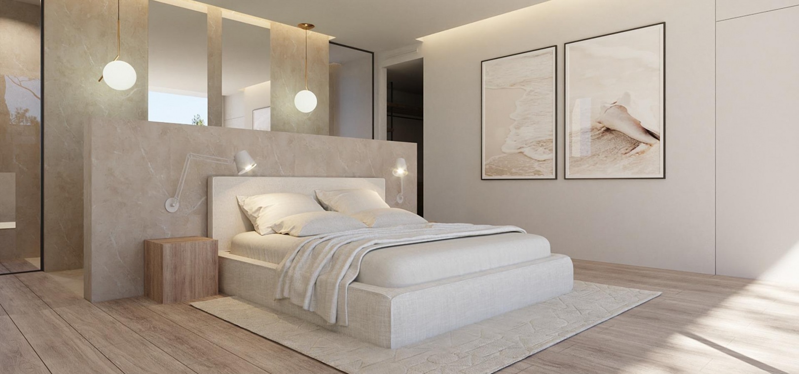 Premier étage : Une luxueuse chambre principale avec salle de bains attenante et terrasse privée, offrant des vues panoramiques.