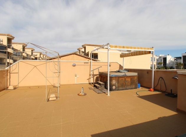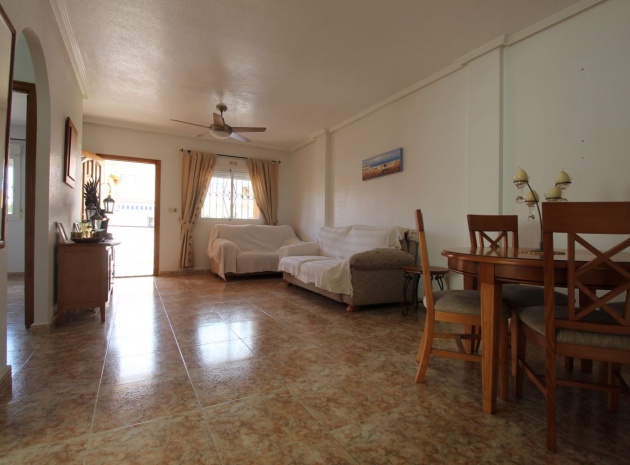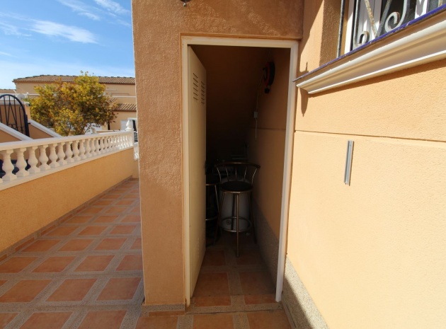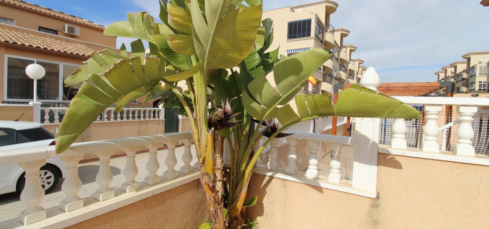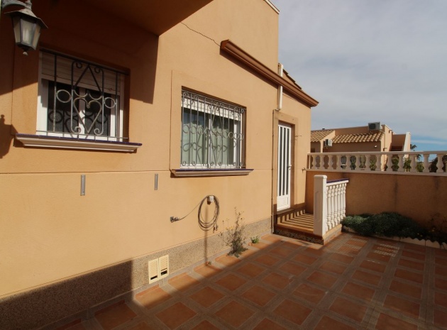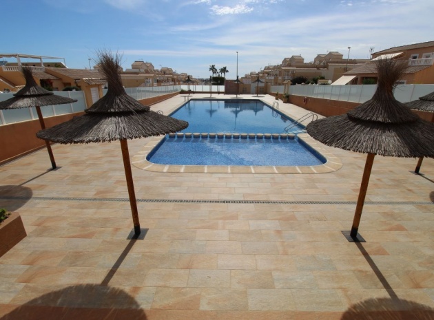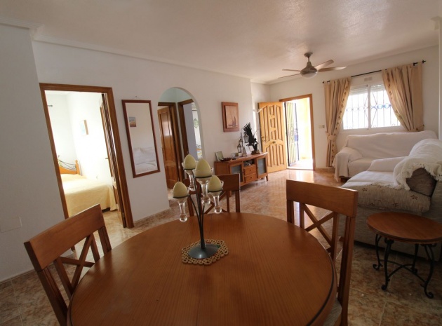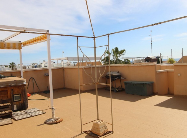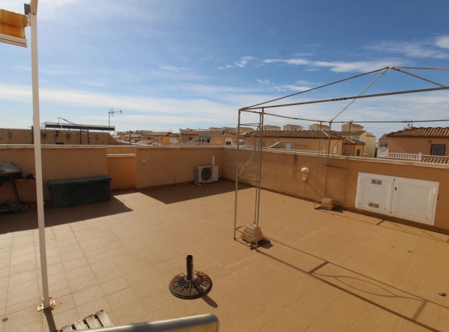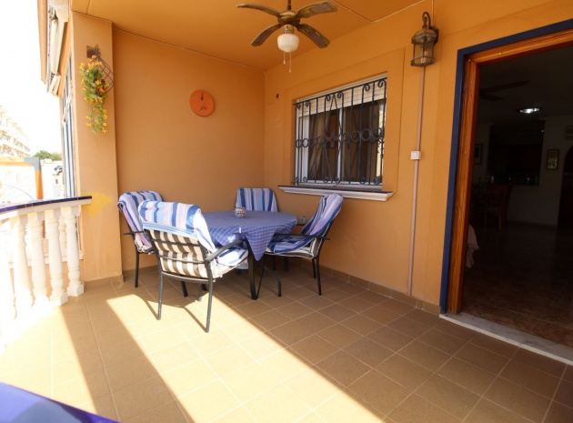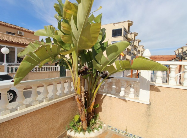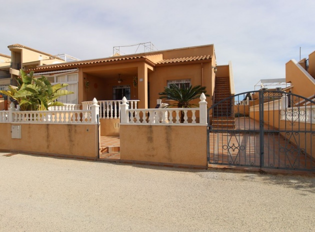 Un bungalow de 2 chambres et 1 salle de bain orienté sud avec un solarium privé sur le toit situé à La Cinuelica, Punta Prima, Costa Blanca Sud.