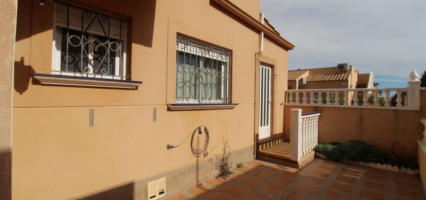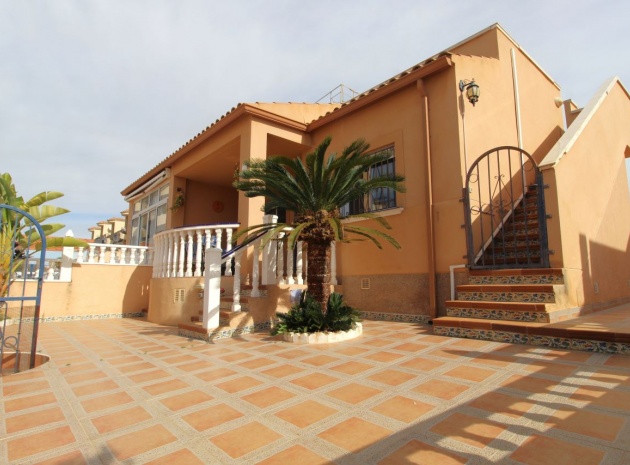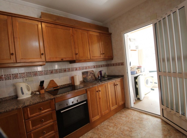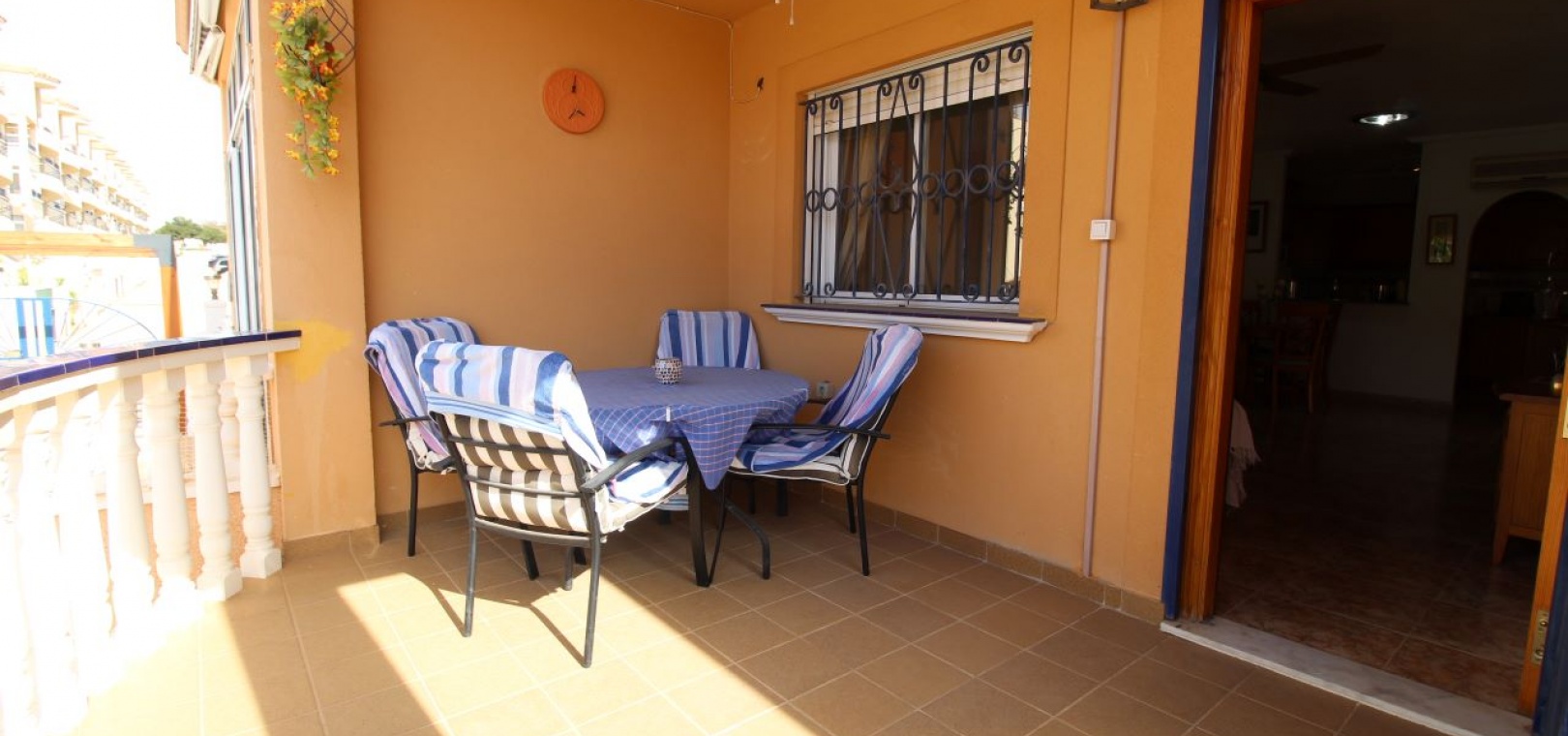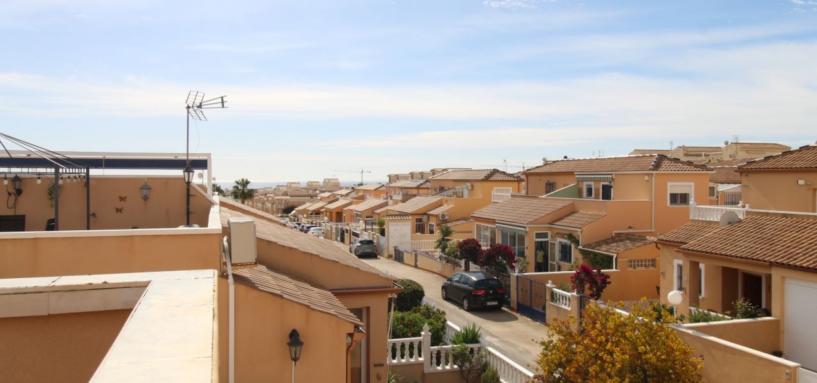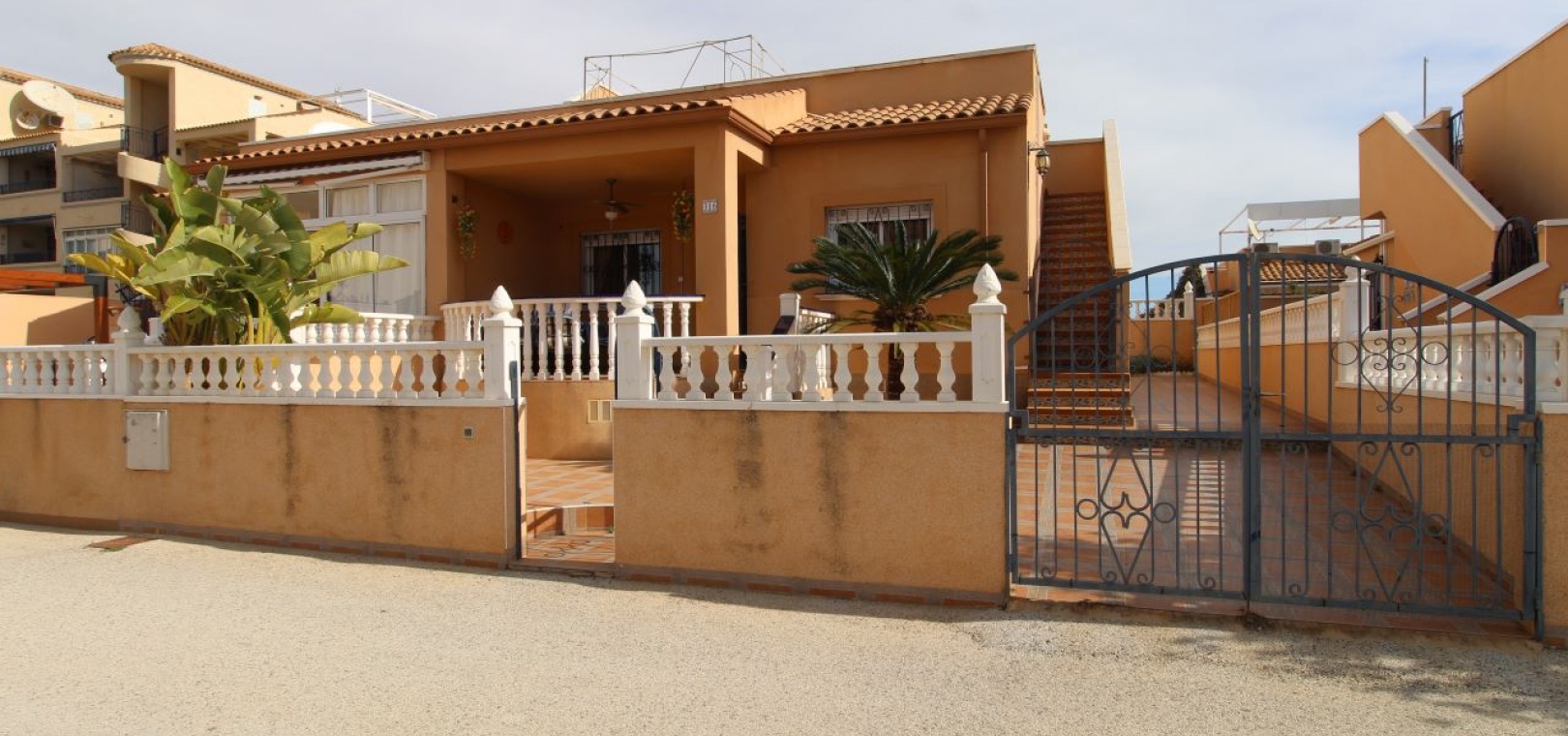 Un bungalow de 2 chambres et 1 salle de bain orienté sud avec un solarium privé sur le toit situé à La Cinuelica, Punta Prima, Costa Blanca Sud.
