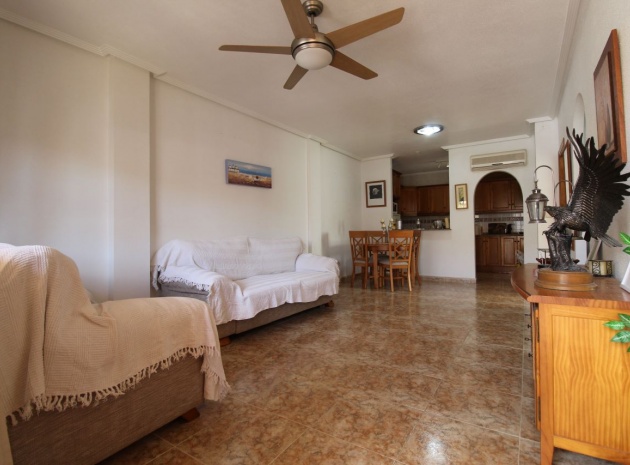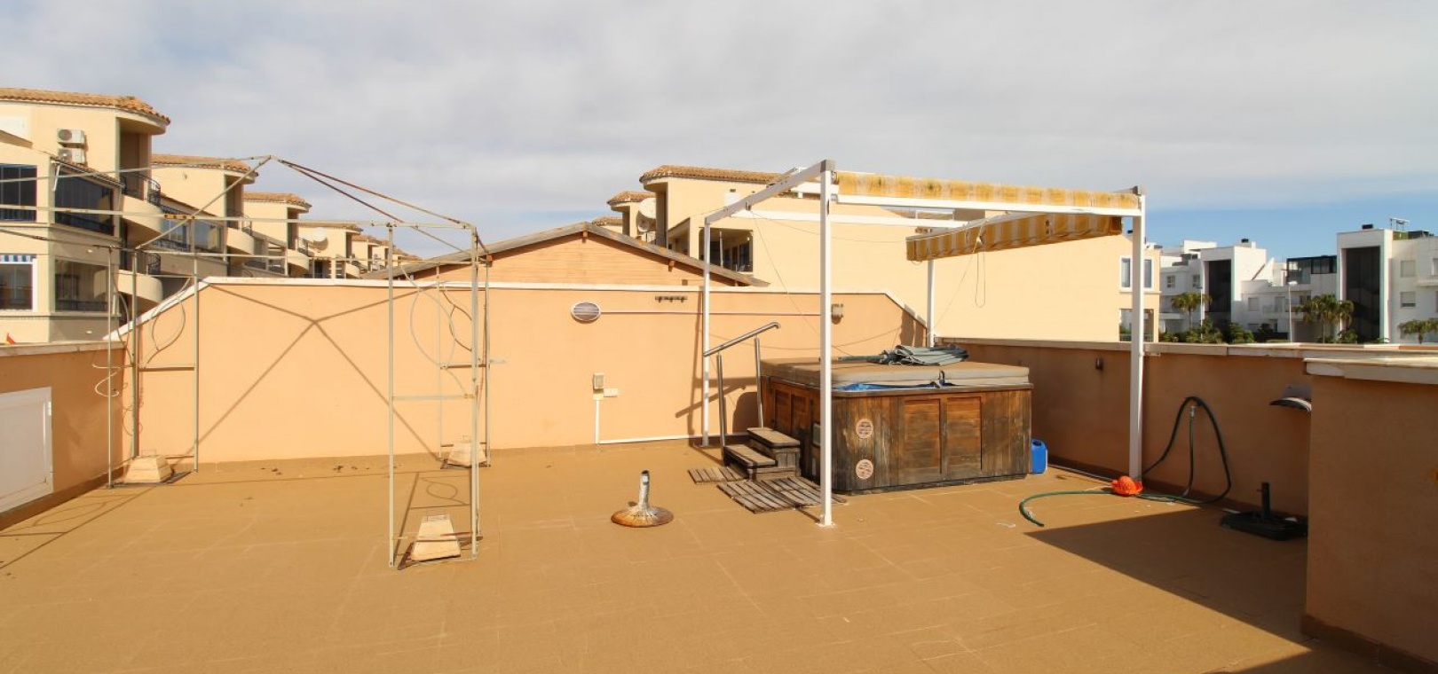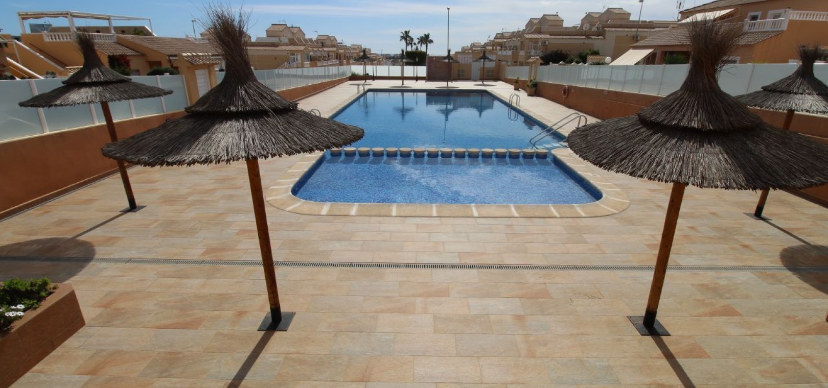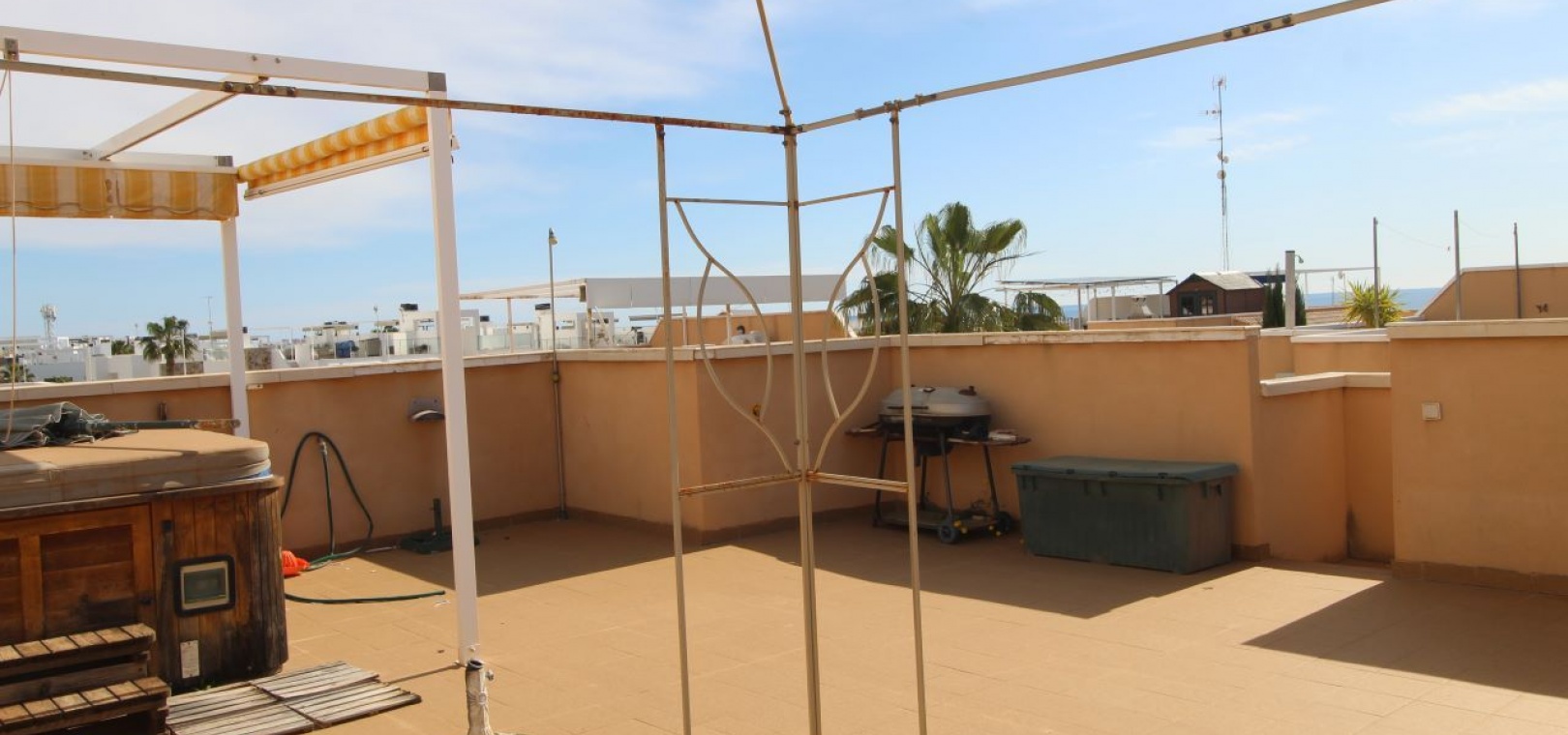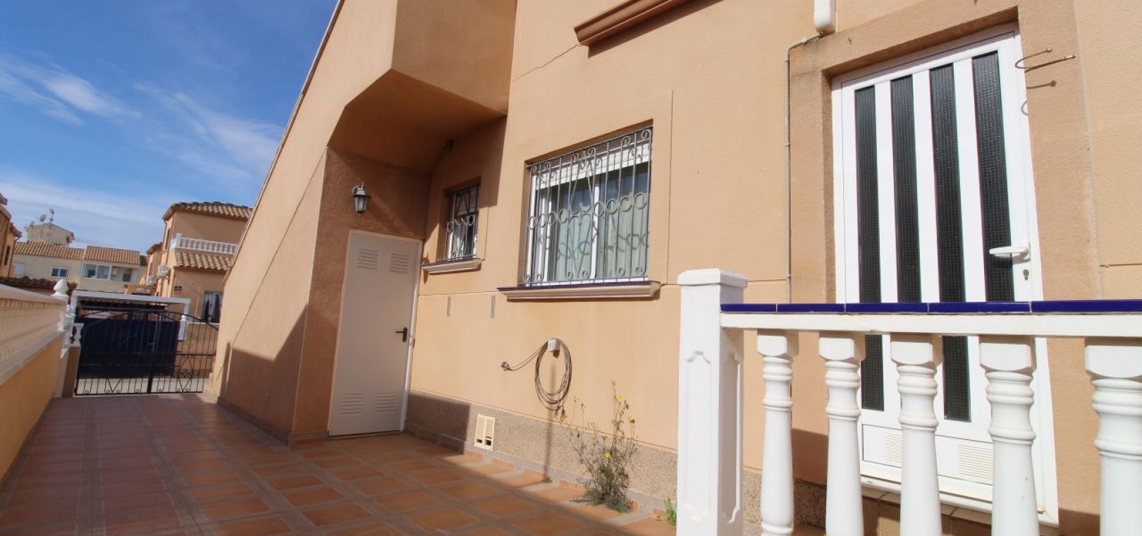 Un bungalow de 2 chambres et 1 salle de bain orienté sud avec un solarium privé sur le toit situé à La Cinuelica, Punta Prima, Costa Blanca Sud.
