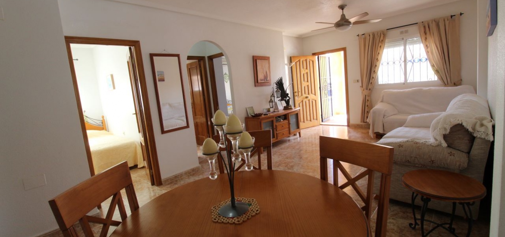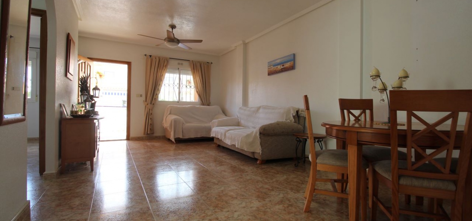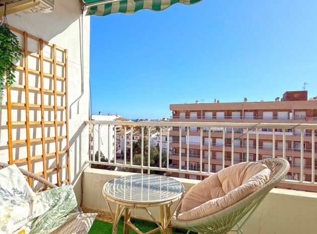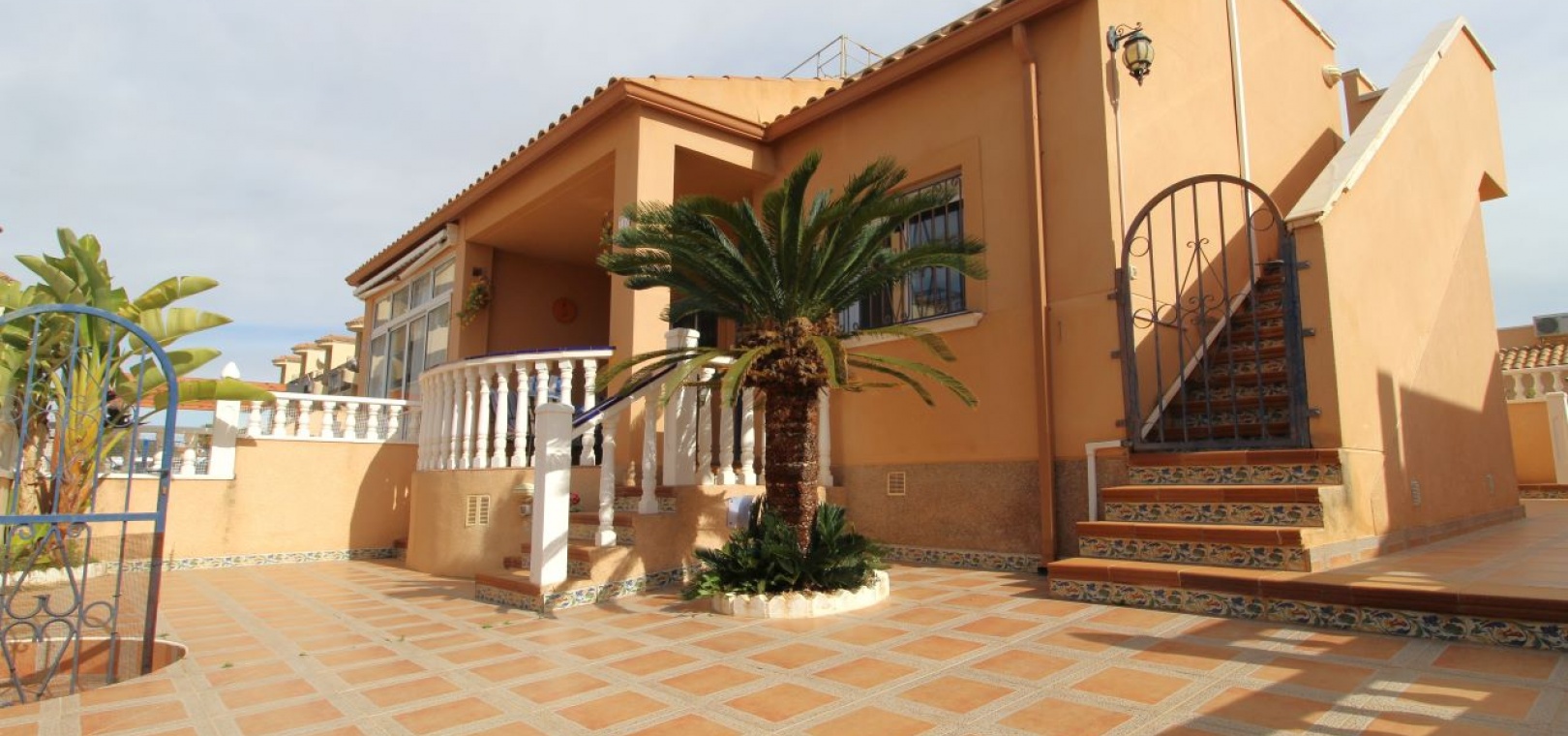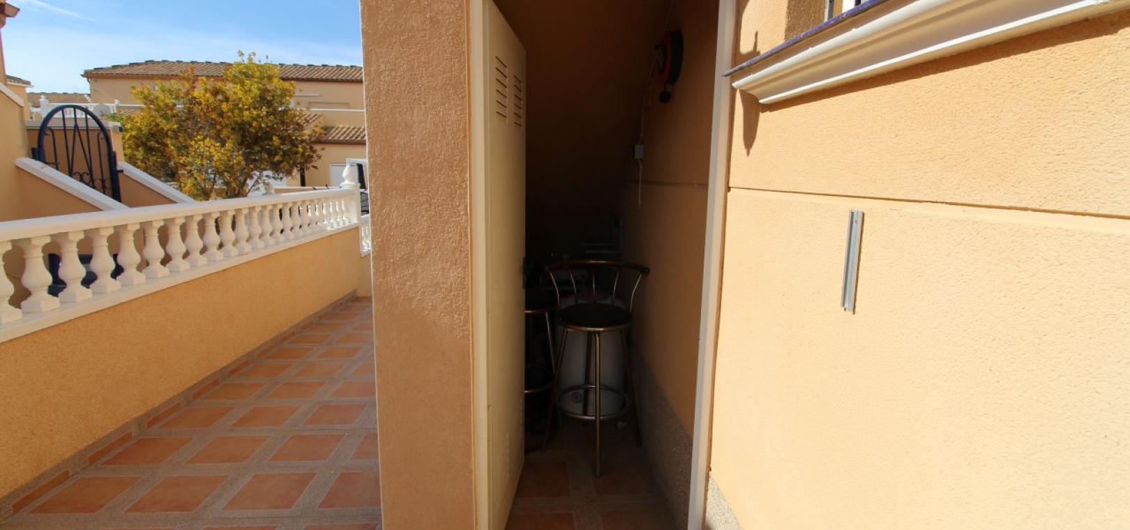 Un bungalow de 2 chambres et 1 salle de bain orienté sud avec un solarium privé sur le toit situé à La Cinuelica, Punta Prima, Costa Blanca Sud.