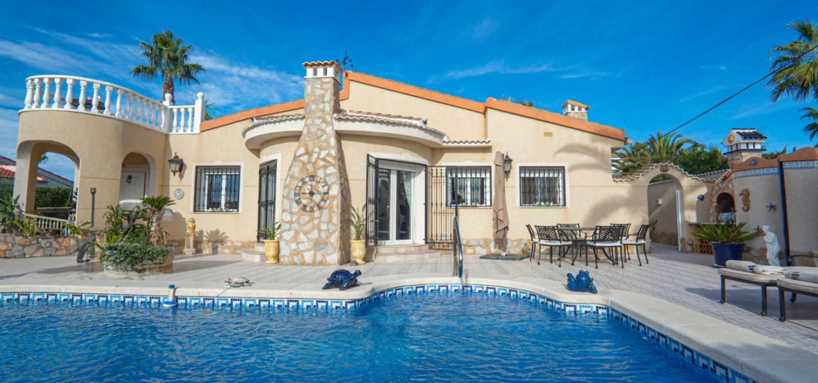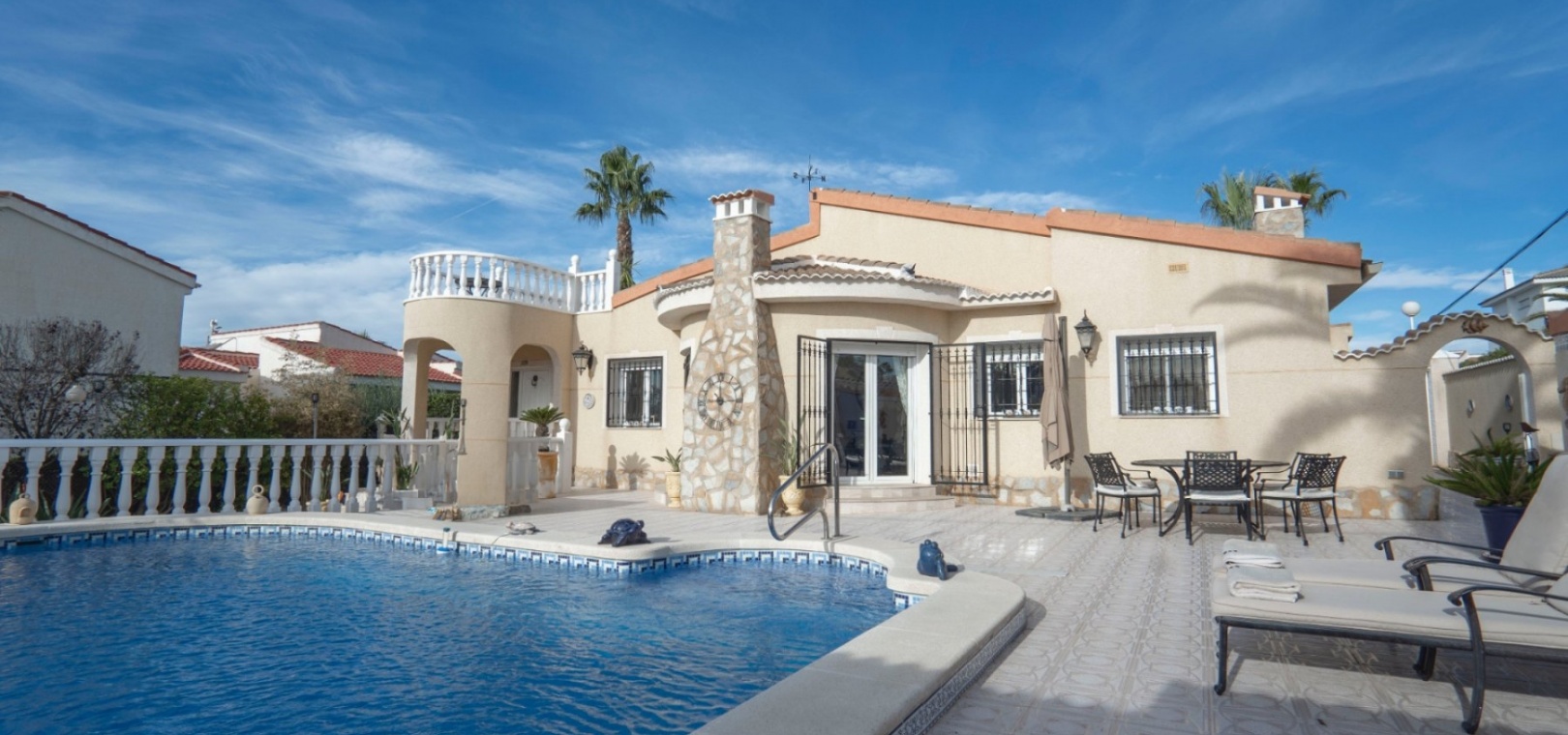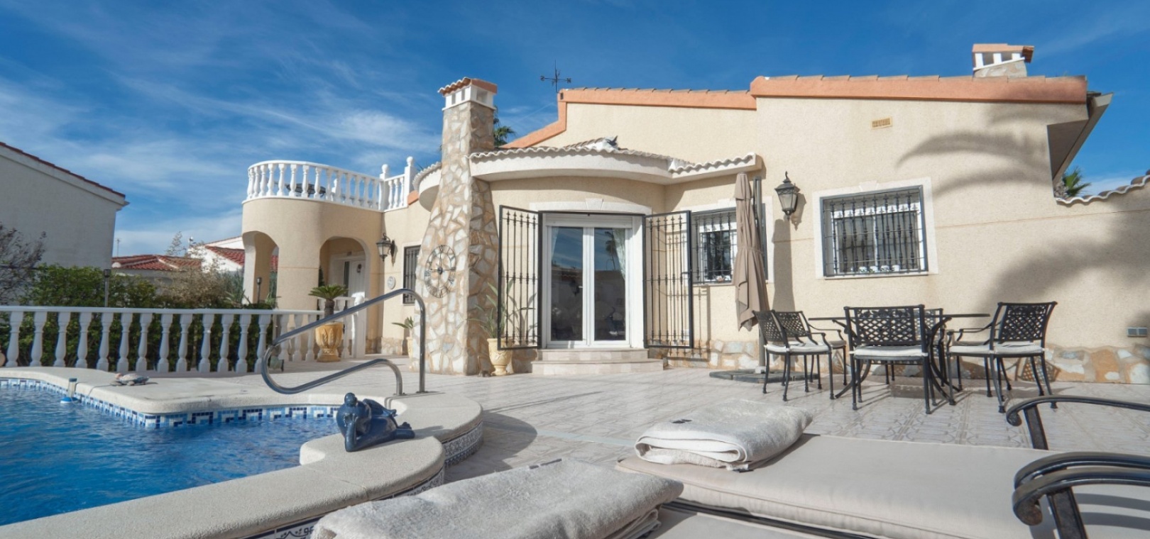 Cette villa se trouve à quelques minutes en voiture des bars, restaurants, boutiques, supermarchés, etc., à moins de 10 minutes du golf de La Marquesa et à 10 minutes des superbes plages de Guardamar. L'aéroport d'Alicante est à environ 35 minutes en voiture.