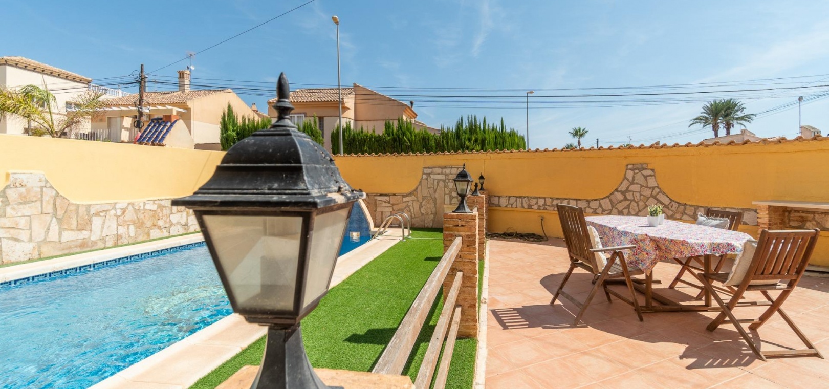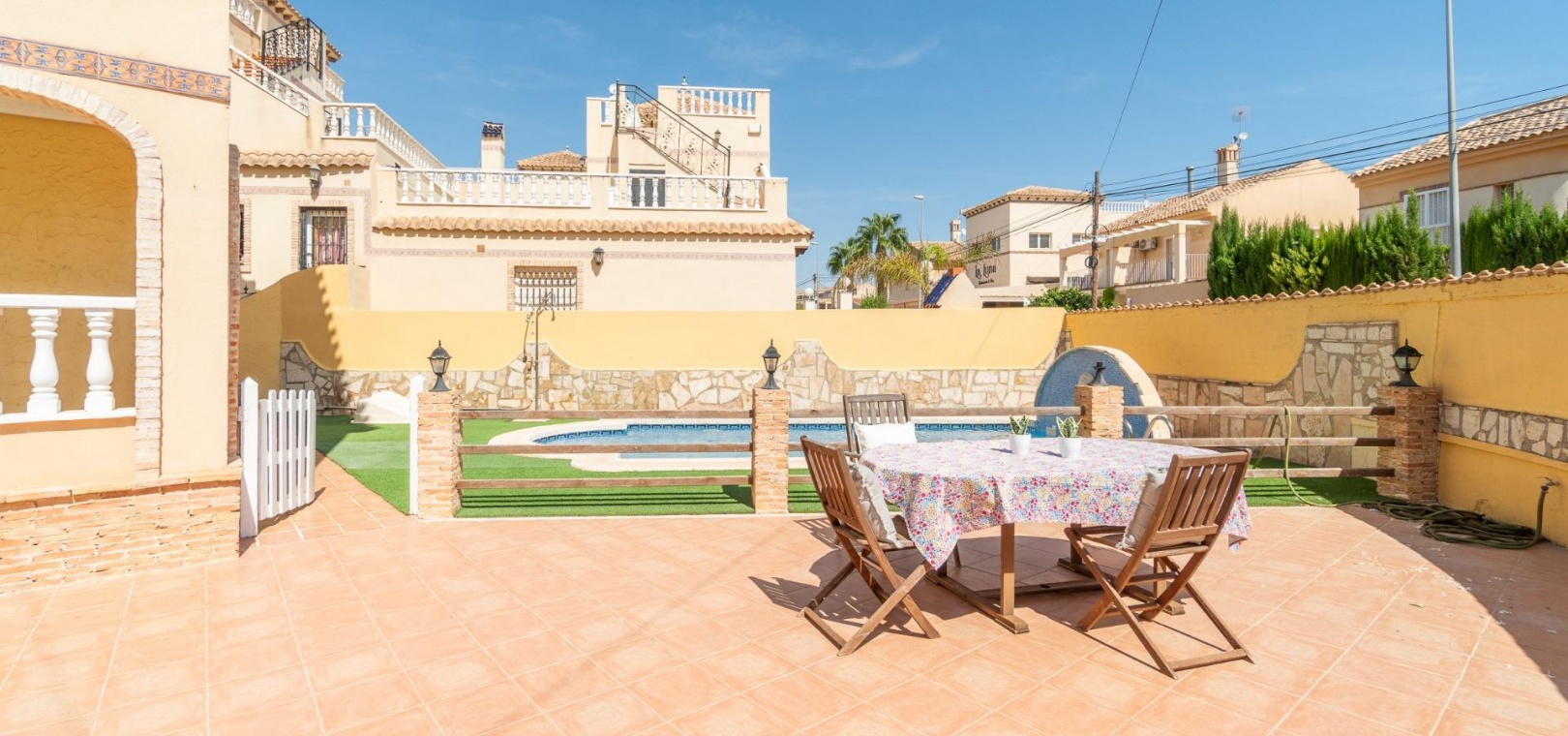 Bienvenue dans votre nouvelle maison à Orihuela Costa, dans le charmant quartier de Las Mimosas ! Cette maison spectaculaire vous offre l'opportunité de vivre la vie de vos rêves dans un environnement paradisiaque. Avec une superficie généreuse de 161 mètres carrés et un terrain de plus de 300 mètres carrés, cette maison est une oasis d'espace et d'intimité. De plus, son emplacement à seulement 3 000 mètres de la plage vous garantit le plaisir de la mer et du soleil à portée de main. Profitez de l'espace de cette maison de 5 chambres, avec l'avantage d'une pièce au rez-de-chaussée pour plus de confort. À cet étage se trouve également une salle de bains. Le premier étage offre 3 chambres et 2 salles de bains, dont une attenante. Au dernier étage se trouve la cinquième chambre très lumineuse. Cette propriété est prête à vous accueillir et vous vous sentirez comme chez vous dès le premier instant. La cuisine équipée vous permettra de laisser libre cours à votre créativité culinaire, et l'orientation sud-est vous offre une luminosité naturelle incomparable tout au long de la journée. Les équipements supplémentaires de cette maison sont innombrables. Profitez de l'eau courante, du confort de la climatisation et de la sécurité d'un système d'alarme. Des placards intégrés, un cellier et une buanderie facilitent l'organisation de votre quotidien. La maison est entièrement meublée, vous permettant d'emménager sans complications et de profiter pleinement de vos espaces dès le premier jour. Le jardin, arboré et doté d'un espace barbecue, est le cadre idéal pour vos réunions de famille et vos moments en plein air. Détendez-vous et plongez dans les eaux de votre piscine privée ou rejoignez la communauté. Le solarium vous offre un havre de paix pour vos moments de réflexion, tandis que la vue dégagée et la brise méditerranéenne vous caressent l'âme. L'emplacement de cette maison est tout simplement exceptionnel, à proximité de centres commerciaux, d'hôpitaux, de parcs, de supermarchés et d'aires de jeux pour enfants, ce qui rend le quotidien extrêmement confortable. Les charges de copropriété ne s'élèvent qu'à 402 euros par an, ce qui garantit un entretien impeccable des parties communes. En bref, cette maison à Orihuela Costa est bien plus qu'une simple propriété ; C'est un véritable style de vie. Une vie de confort, de beauté et de tranquillité vous attend ici. Ne manquez pas cette opportunité et contactez-nous dès aujourd'hui pour visiter votre nouvelle maison !