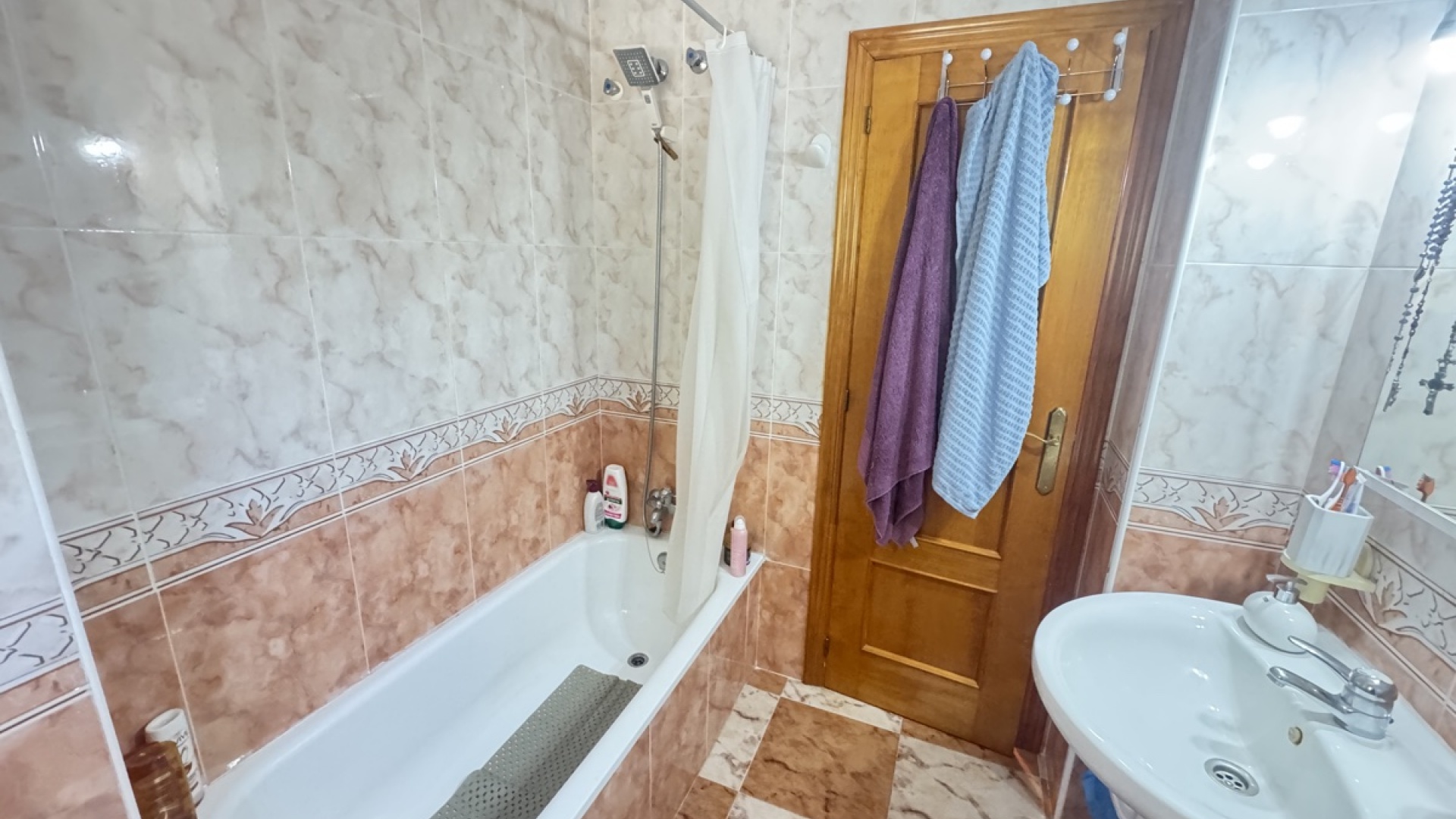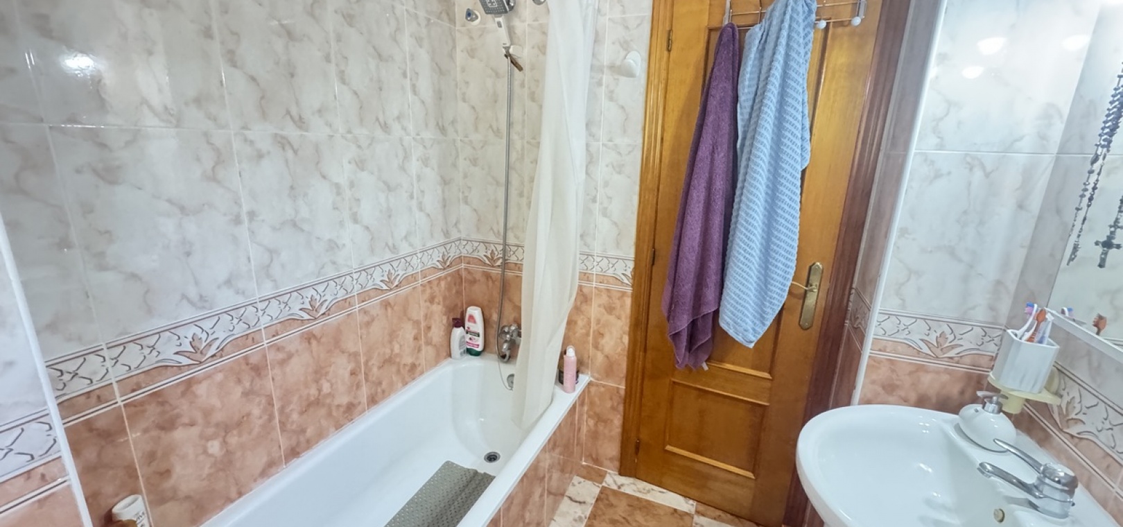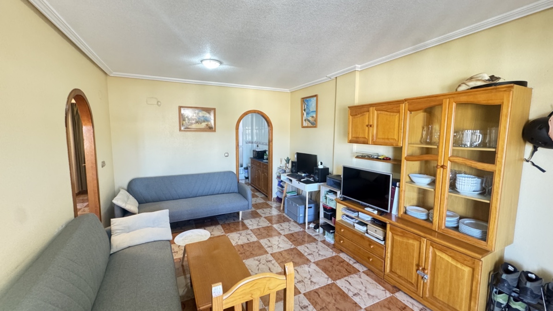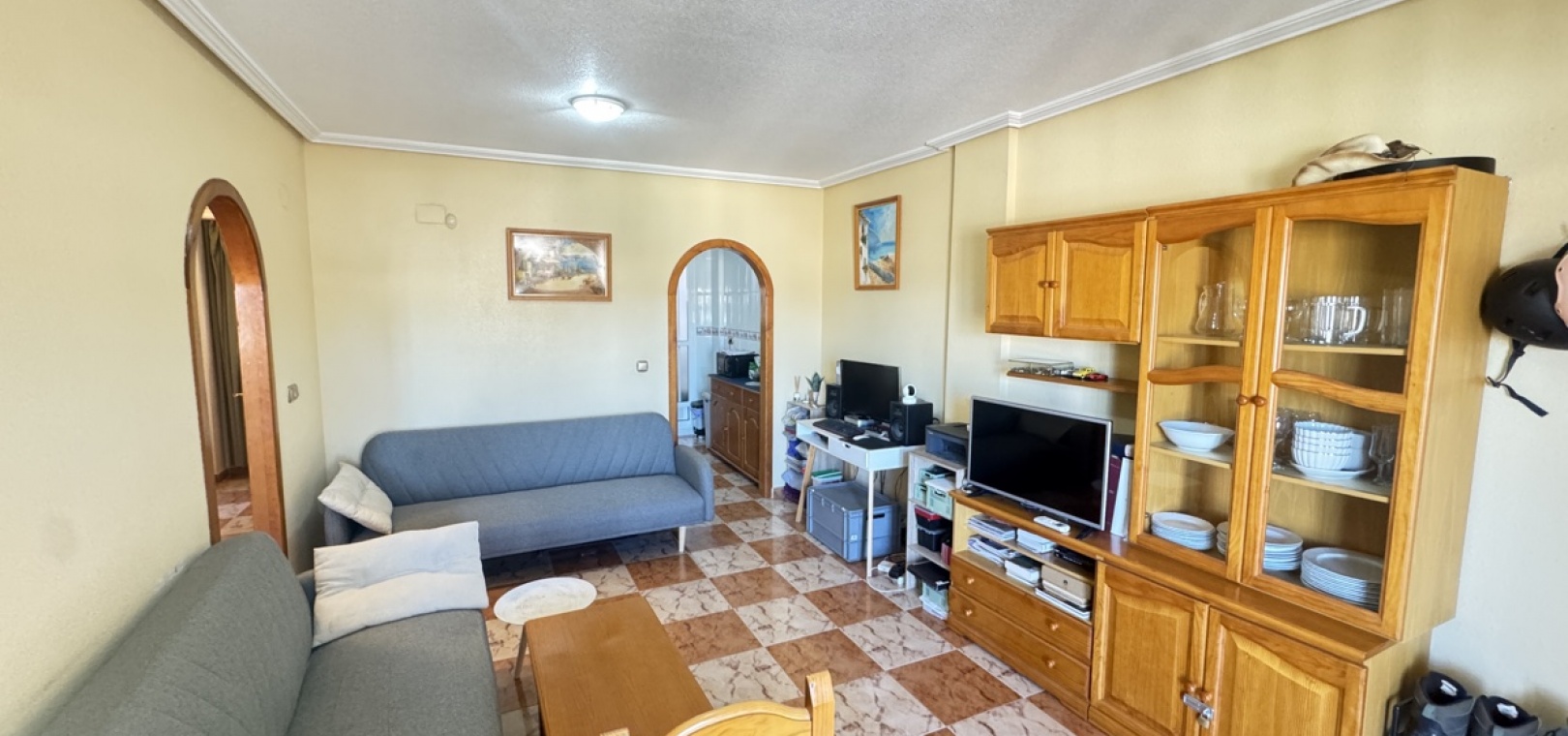 Salon/salle à manger avec climatisation chaude et froide, cuisine séparée entièrement équipée, buanderie vitrée, 2 chambres doubles, 1 salle de bain, balcon, solarium privé sur le toit, piscine commune et bien plus encore.