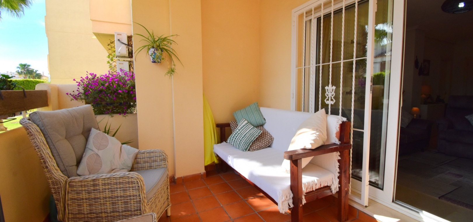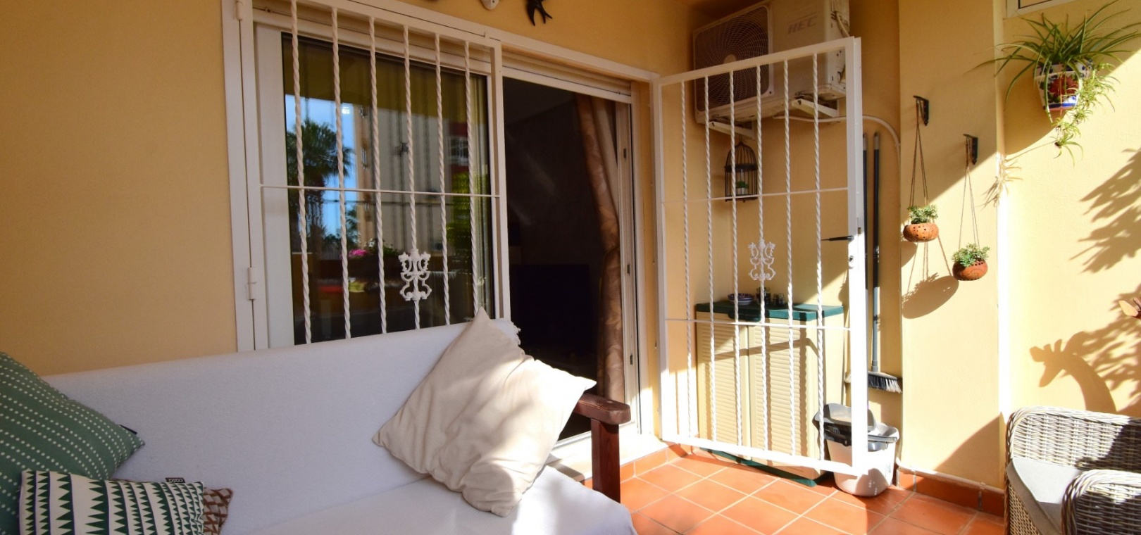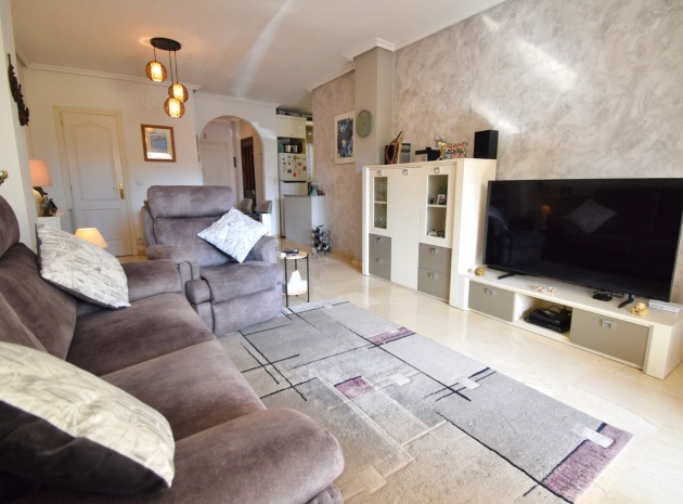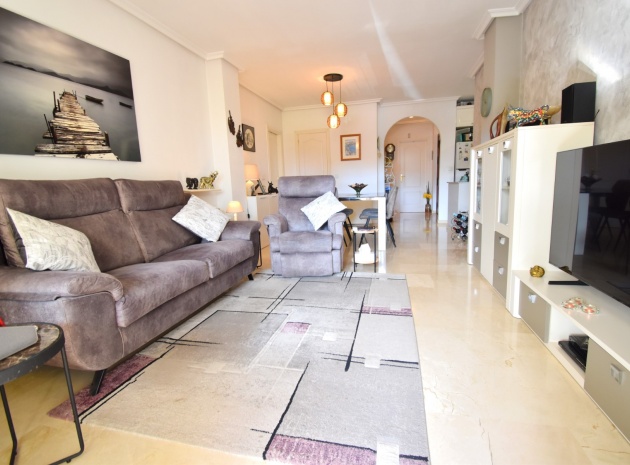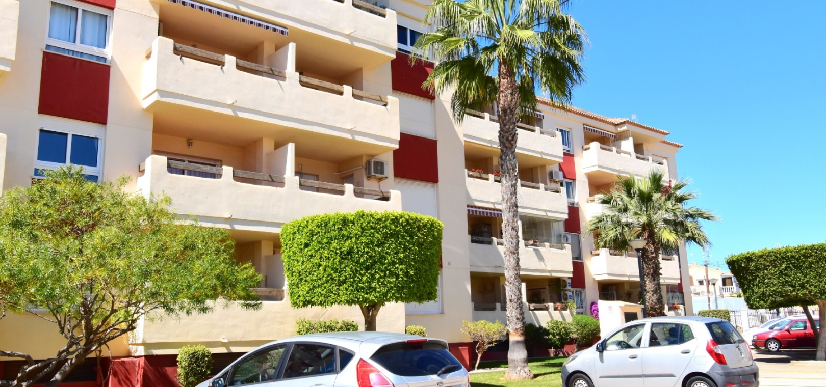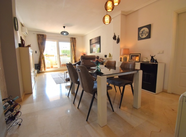 Cet appartement de deux chambres, orienté à l'ouest, au rez-de-chaussée à Playa Flamenca, est situé dans un quartier très prisé de la Costa Blanca Sud, à seulement 5 minutes à pied de nombreux bars et restaurants. Les superbes plages, le centre commercial La Zenia Boulevard et les principaux supermarchés sont tous accessibles en seulement 5 minutes en voiture, ce qui en fait un emplacement idéal pour les vacanciers comme pour les résidents permanents. Cet appartement lumineux et bien entretenu comprend une entrée donnant sur un spacieux salon/salle à manger, où des portes-fenêtres coulissantes à double vitrage s'ouvrent sur une charmante terrasse couverte, idéale pour se détendre en plein air. La cuisine séparée équipée offre de nombreux rangements et un espace de travail. Il comprend deux chambres doubles, toutes deux équipées de ventilateurs de plafond et de placards intégrés, tandis que la chambre principale bénéficie d'une salle de douche attenante. Une deuxième salle de douche moderne complète l'aménagement. Parmi les autres prestations, citons la climatisation, un ascenseur dans l'immeuble, un solarium commun, l'accès à des jardins communautaires bien entretenus, une piscine et un parking fermé. C'est une opportunité fantastique de devenir propriétaire d'un appartement confortable et idéalement situé au cœur de Playa Flamenca !