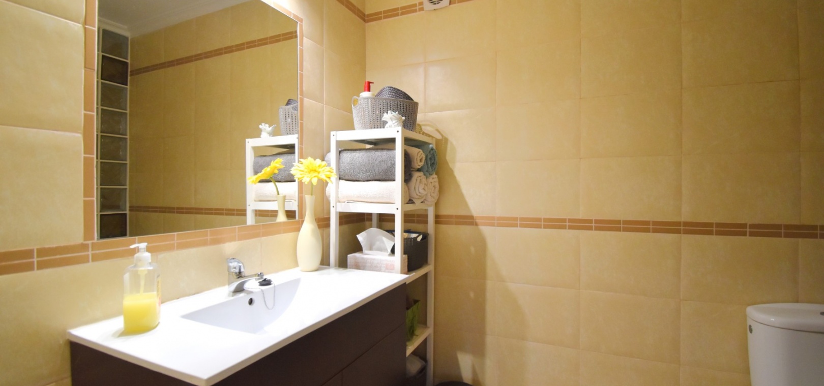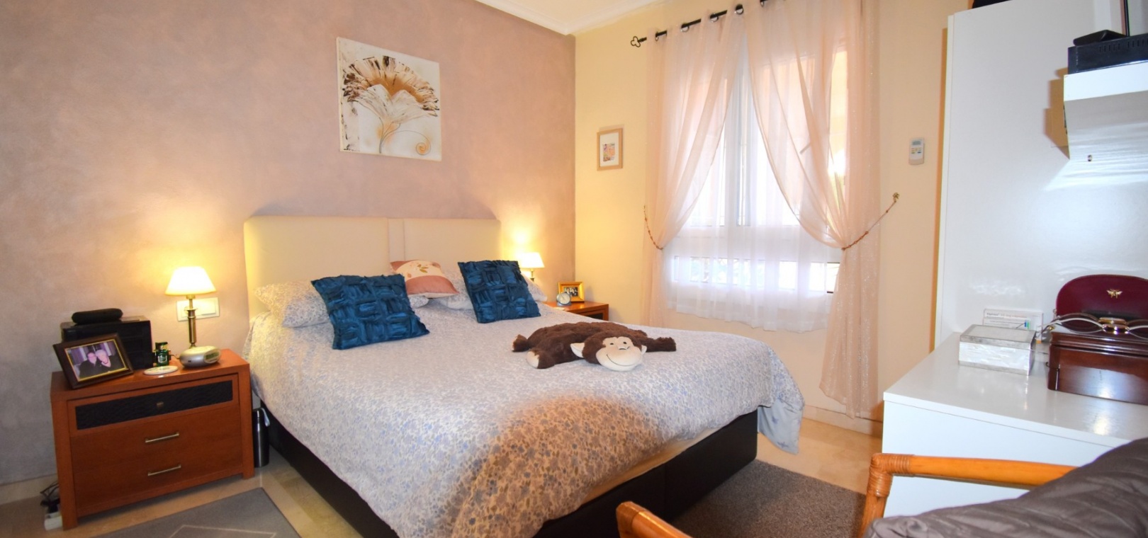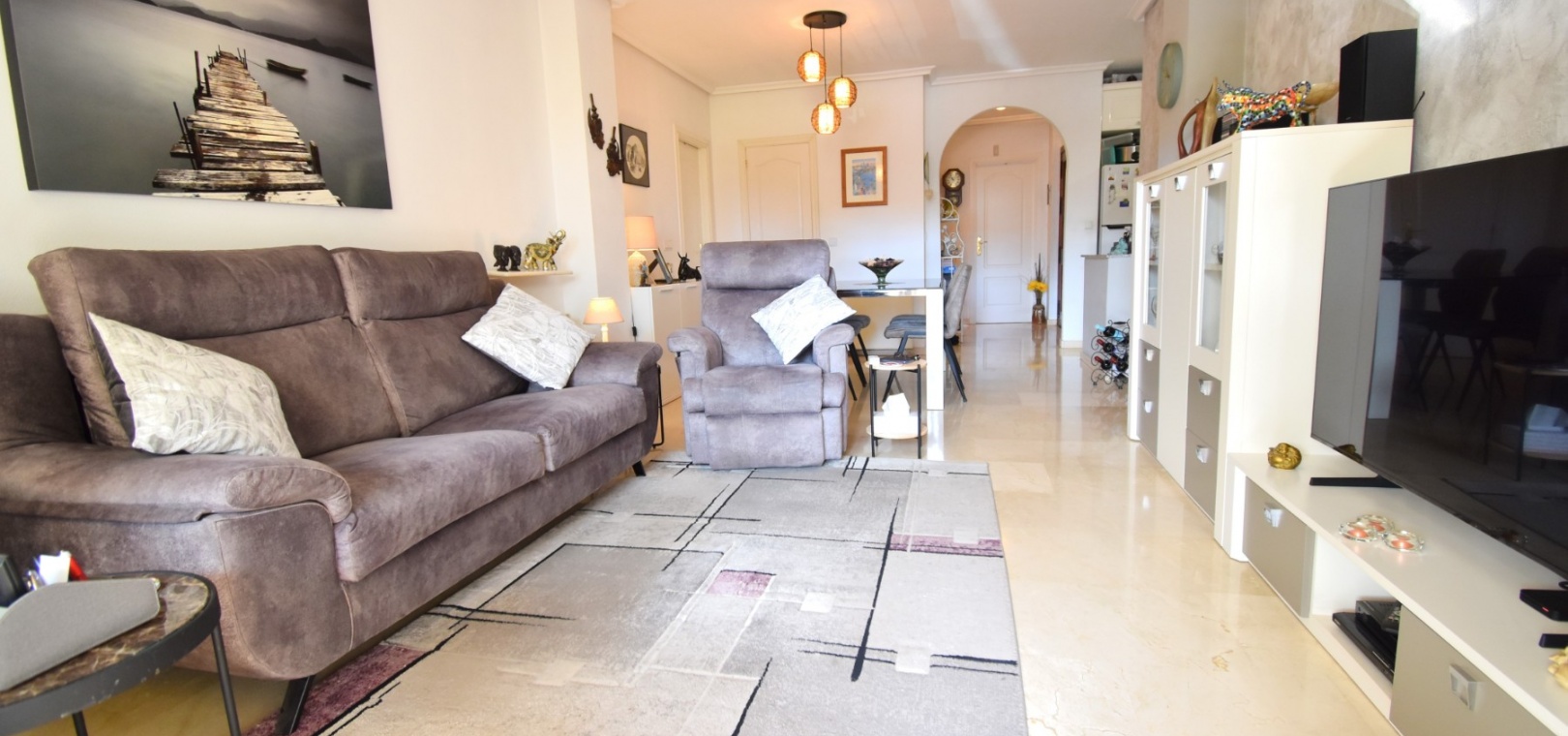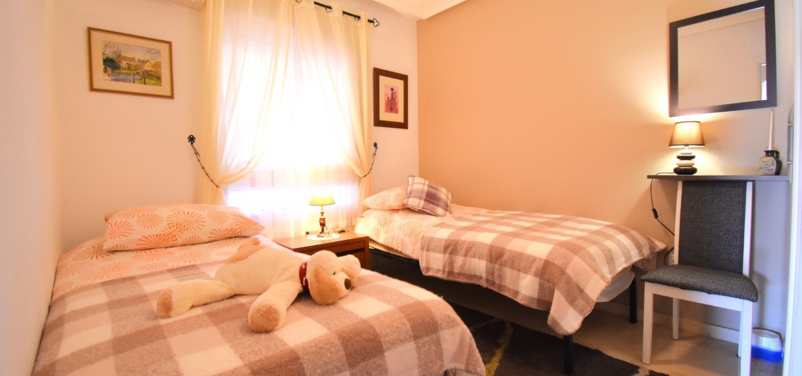 Cet appartement de deux chambres, orienté à l'ouest, au rez-de-chaussée à Playa Flamenca, est situé dans un quartier très prisé de la Costa Blanca Sud, à seulement 5 minutes à pied de nombreux bars et restaurants. Les superbes plages, le centre commercial La Zenia Boulevard et les principaux supermarchés sont tous accessibles en seulement 5 minutes en voiture, ce qui en fait un emplacement idéal pour les vacanciers comme pour les résidents permanents. Cet appartement lumineux et bien entretenu comprend une entrée donnant sur un spacieux salon/salle à manger, où des portes-fenêtres coulissantes à double vitrage s'ouvrent sur une charmante terrasse couverte, idéale pour se détendre en plein air. La cuisine séparée équipée offre de nombreux rangements et un espace de travail. Il comprend deux chambres doubles, toutes deux équipées de ventilateurs de plafond et de placards intégrés, tandis que la chambre principale bénéficie d'une salle de douche attenante. Une deuxième salle de douche moderne complète l'aménagement. Parmi les autres prestations, citons la climatisation, un ascenseur dans l'immeuble, un solarium commun, l'accès à des jardins communautaires bien entretenus, une piscine et un parking fermé. C'est une opportunité fantastique de devenir propriétaire d'un appartement confortable et idéalement situé au cœur de Playa Flamenca !