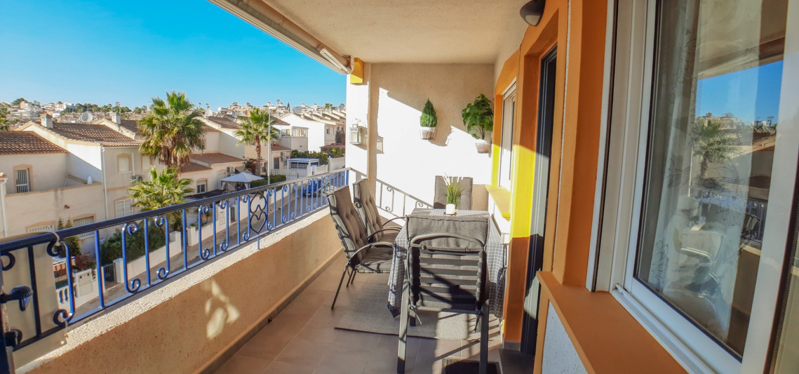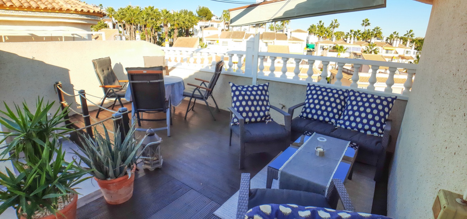Cette propriété est située à quelques pas des bars, boutiques et restaurants locaux. Les plages dorées d'Orihuela Costa sont à moins de 10 minutes en voiture ou vous pouvez utiliser le service de bus local. Quatre parcours de golf sont à moins de 5 minutes en voiture. L'aéroport de Murcie-Corvera est à 35 minutes et celui d'Alicante à 40 minutes.
