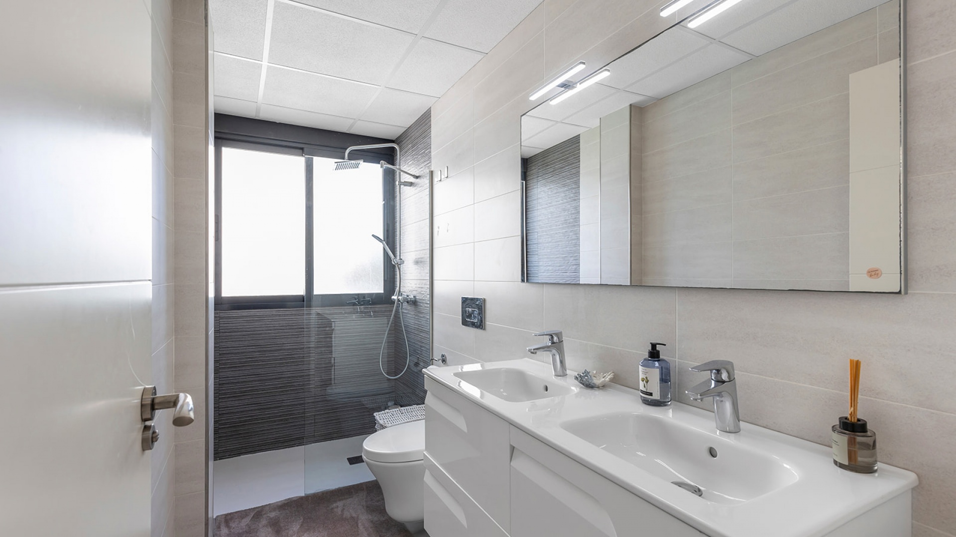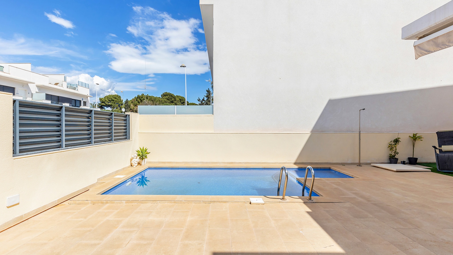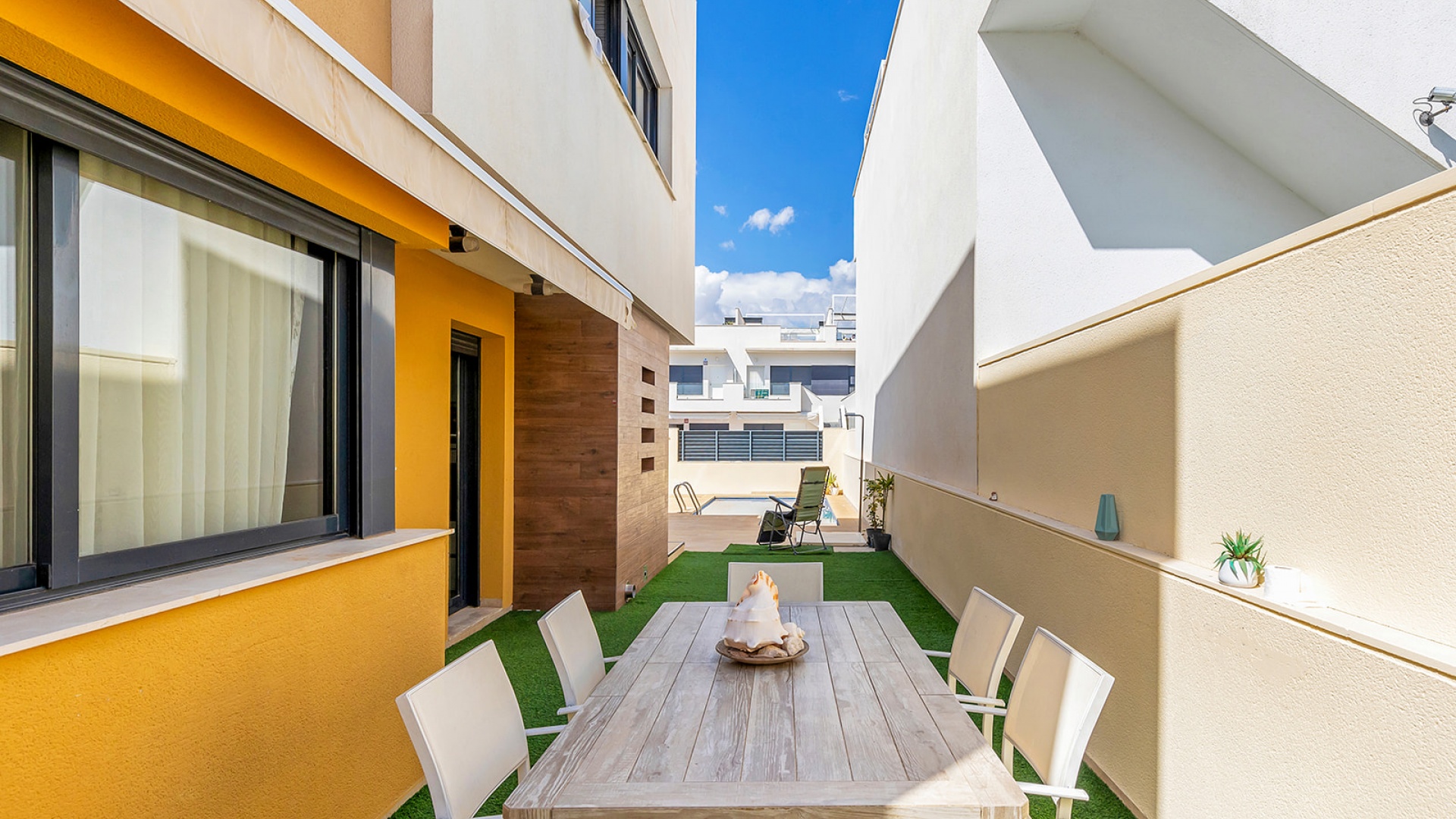 Cette spacieuse villa jumelée de 3 chambres et 3 salles de bains bénéficie d'un emplacement idéal, à seulement 5-10 minutes à pied des plages de Lo Pagan. Vous y trouverez toutes les commodités du quartier : boutiques, restaurants et la prestigieuse école internationale Castelar College, accessibles à pied.