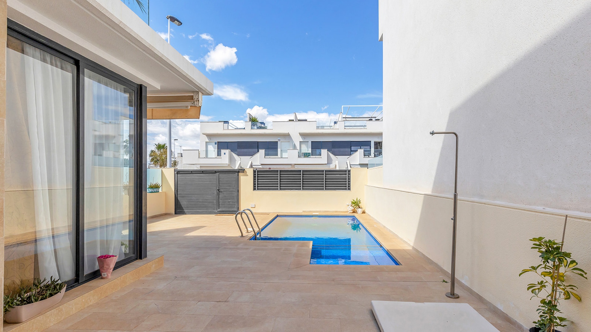 Année de construction : 2018 3 chambres 3 salles de bain Surface construite : 127 m2 Piscine privée : 13 m2 Terrain: 155 m2 Place de parking Orientation solaire : Ouest